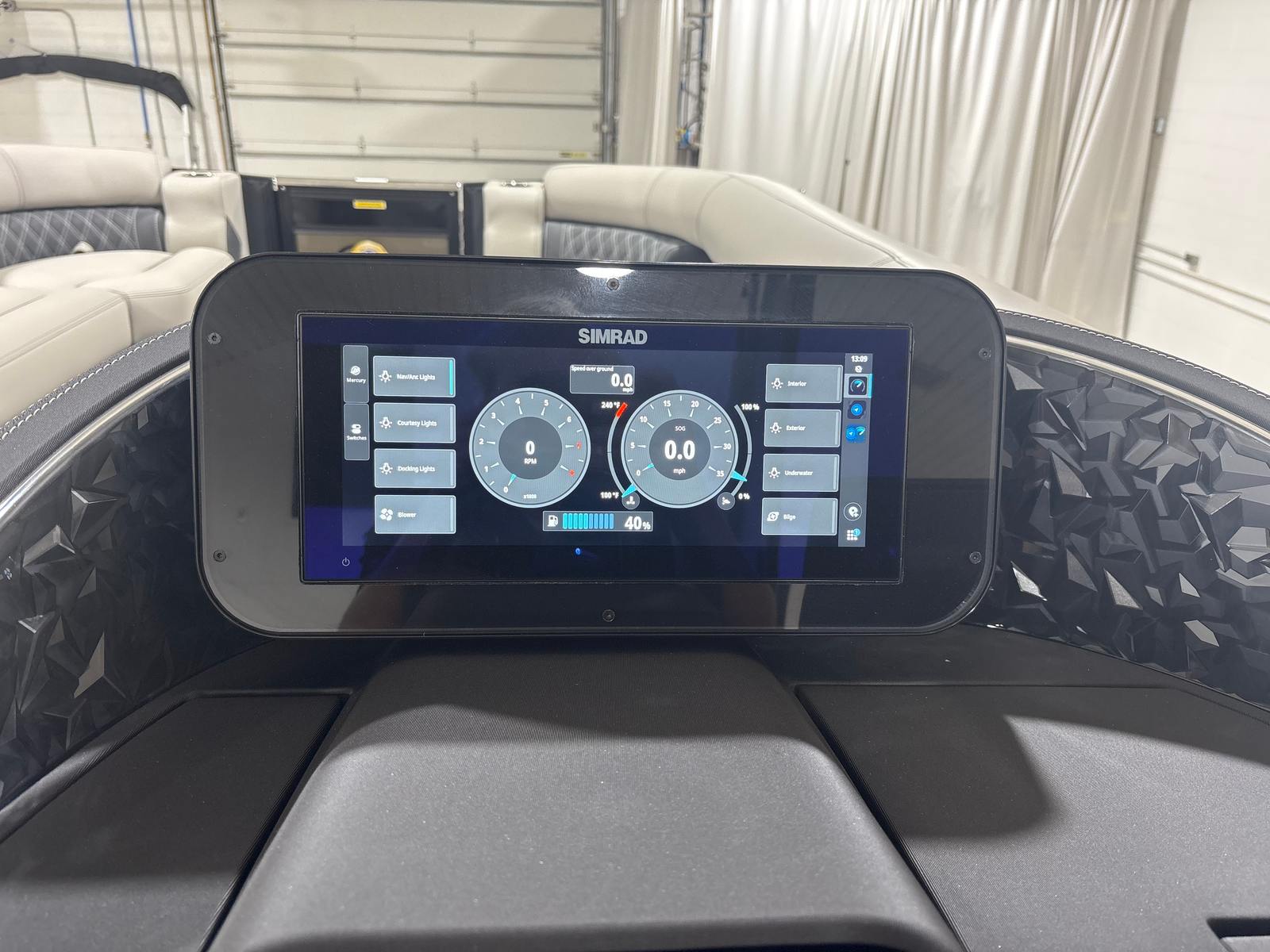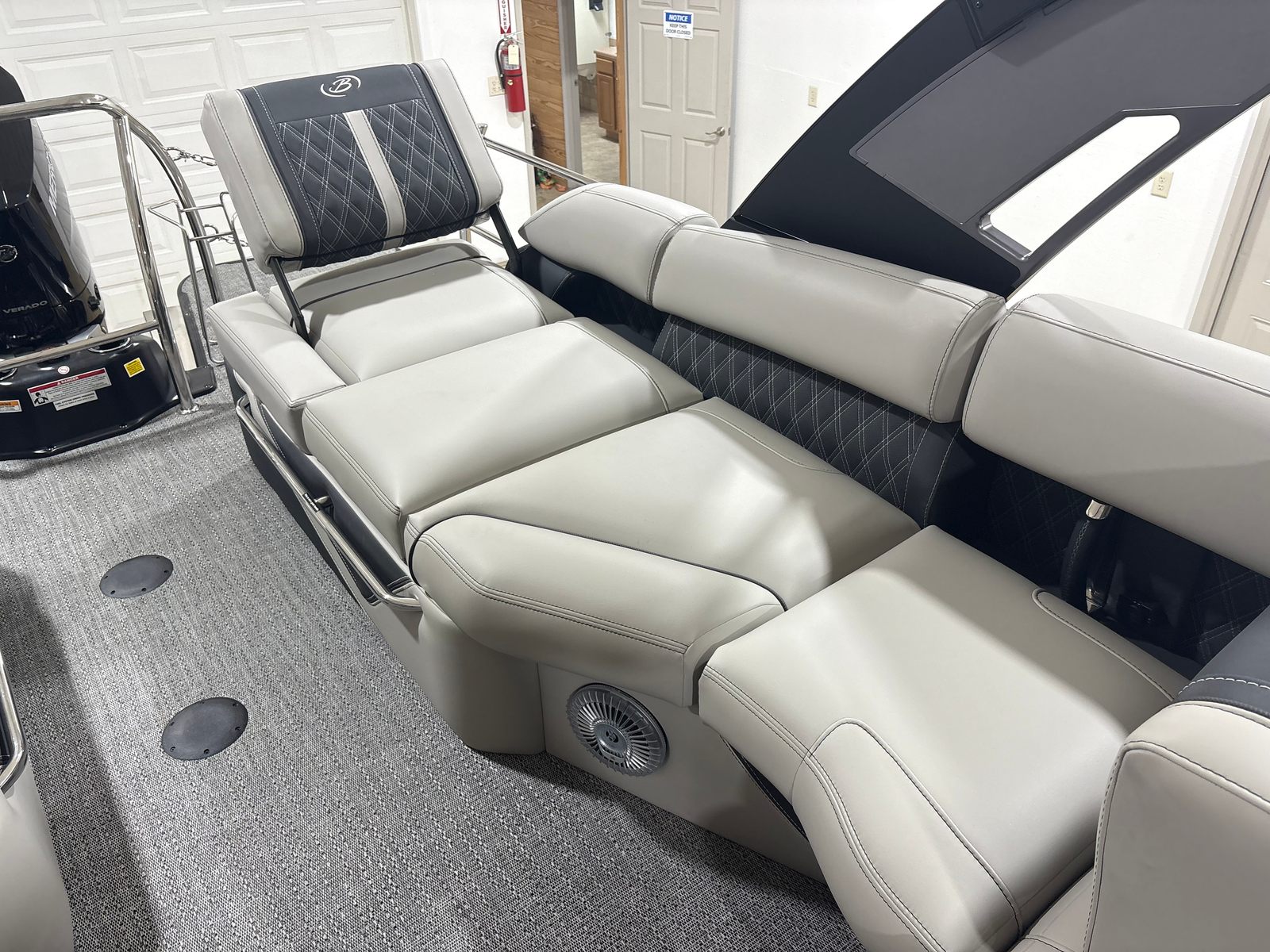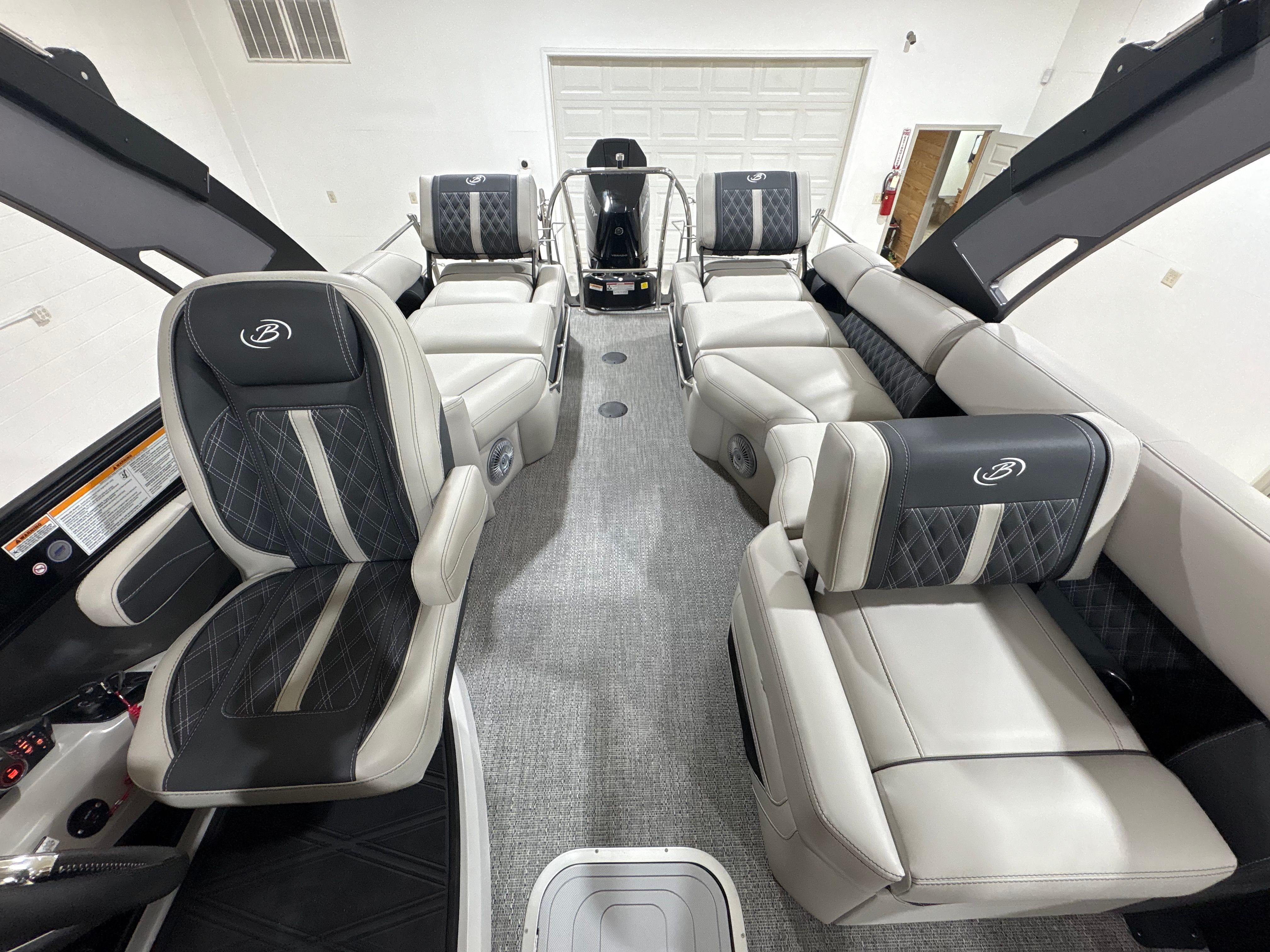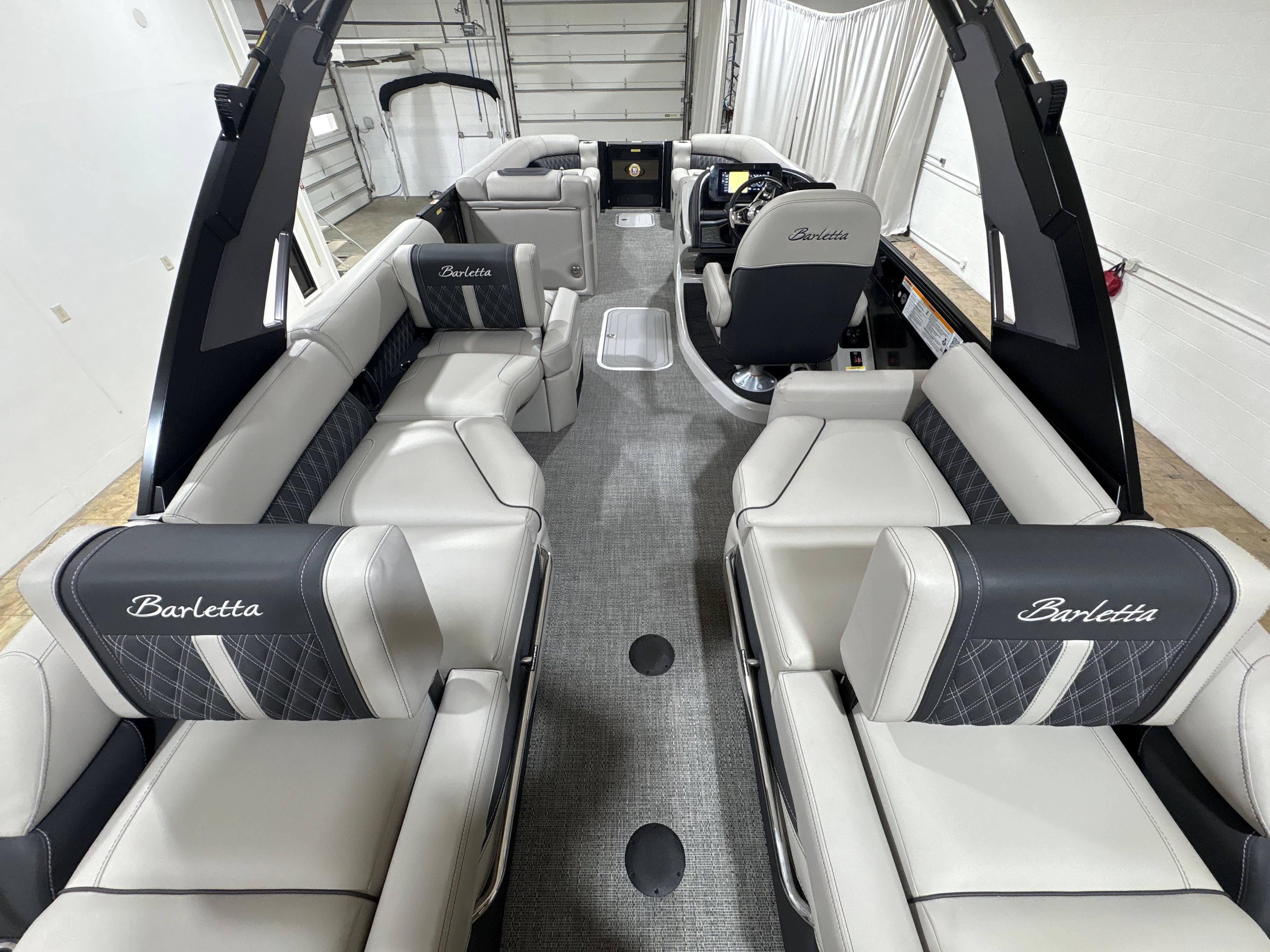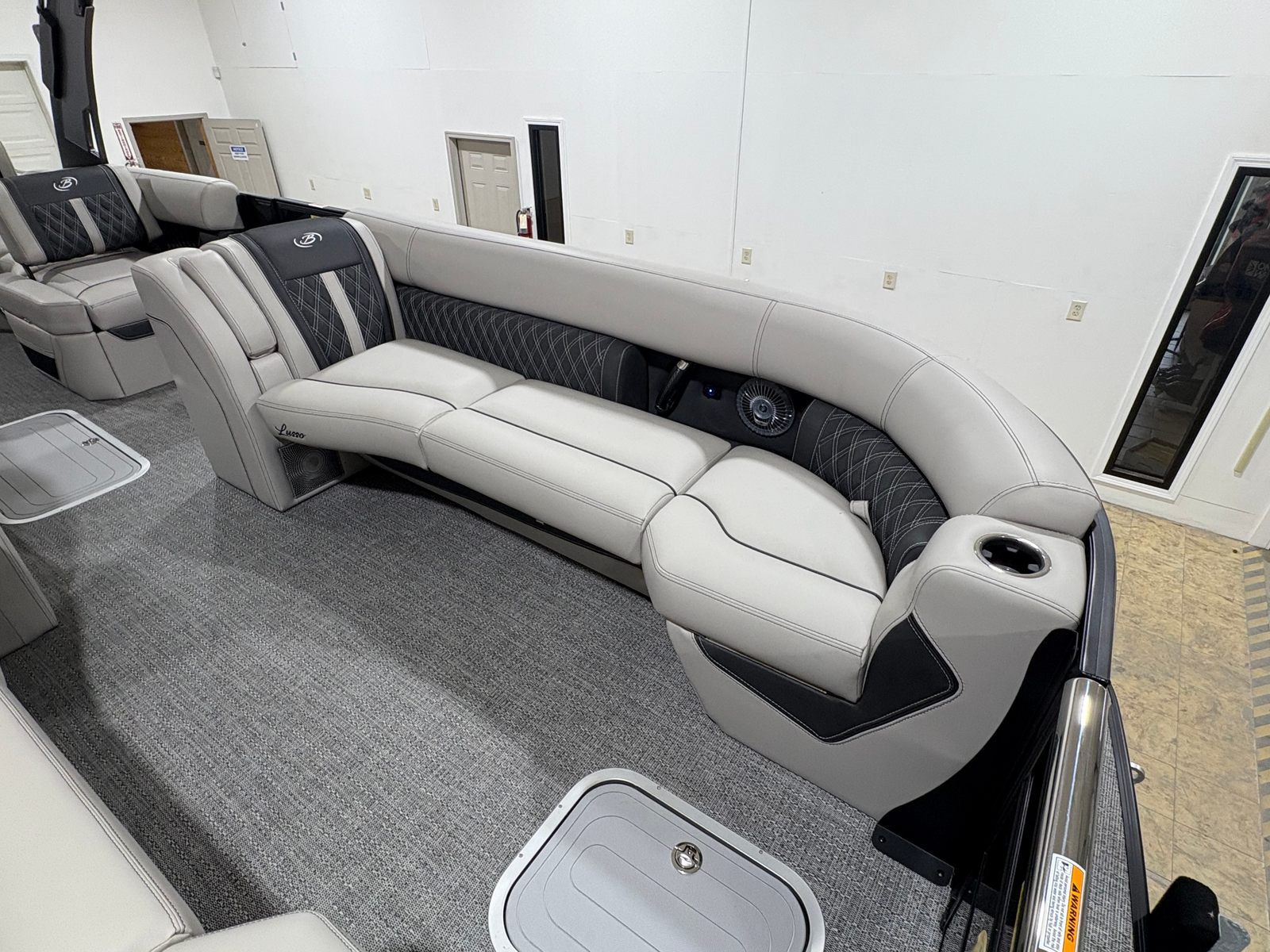 At the heart of the Barletta Lusso L25MA is the powerful Mercury 350L V10 Verado engine, delivering an impressive 350 horsepower. This state-of-the-art engine is expertly paired with Mercury Digital Pre-Rig for V10 and a V10 prop, ensuring seamless integration and optimal performance. Whether you are cruising across the lake or accelerating for watersports, the Lusso L25MA provides exhilarating speed, smooth handling, and reliable power. The advanced rigging and digital controls offer precise maneuverability, making every journey effortless and enjoyable.