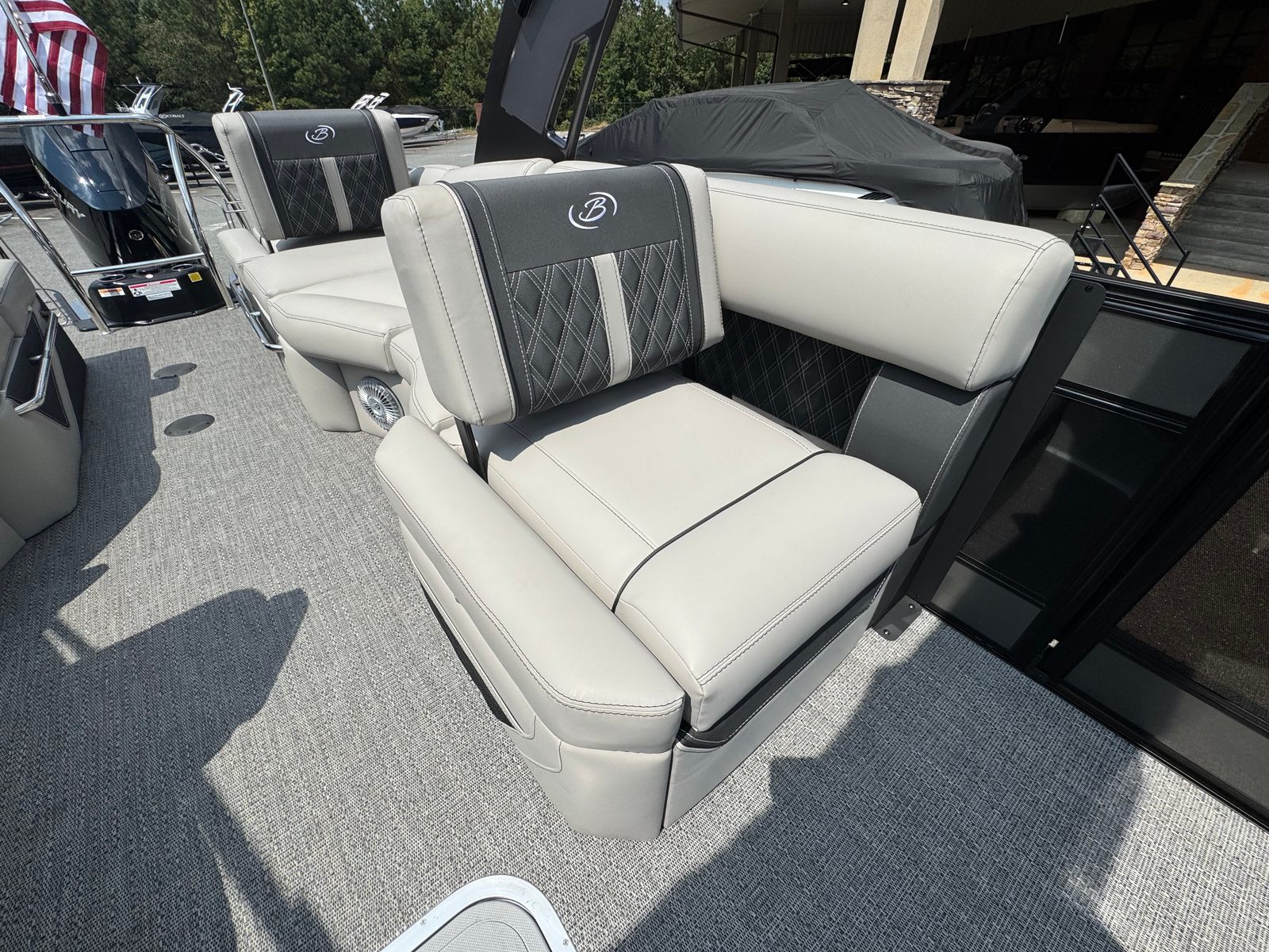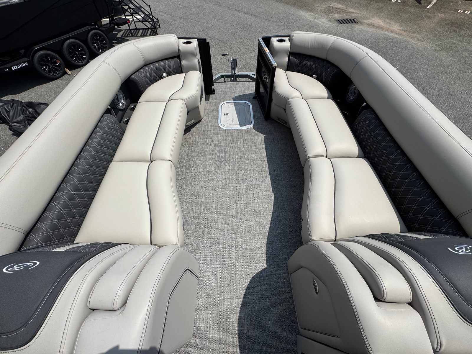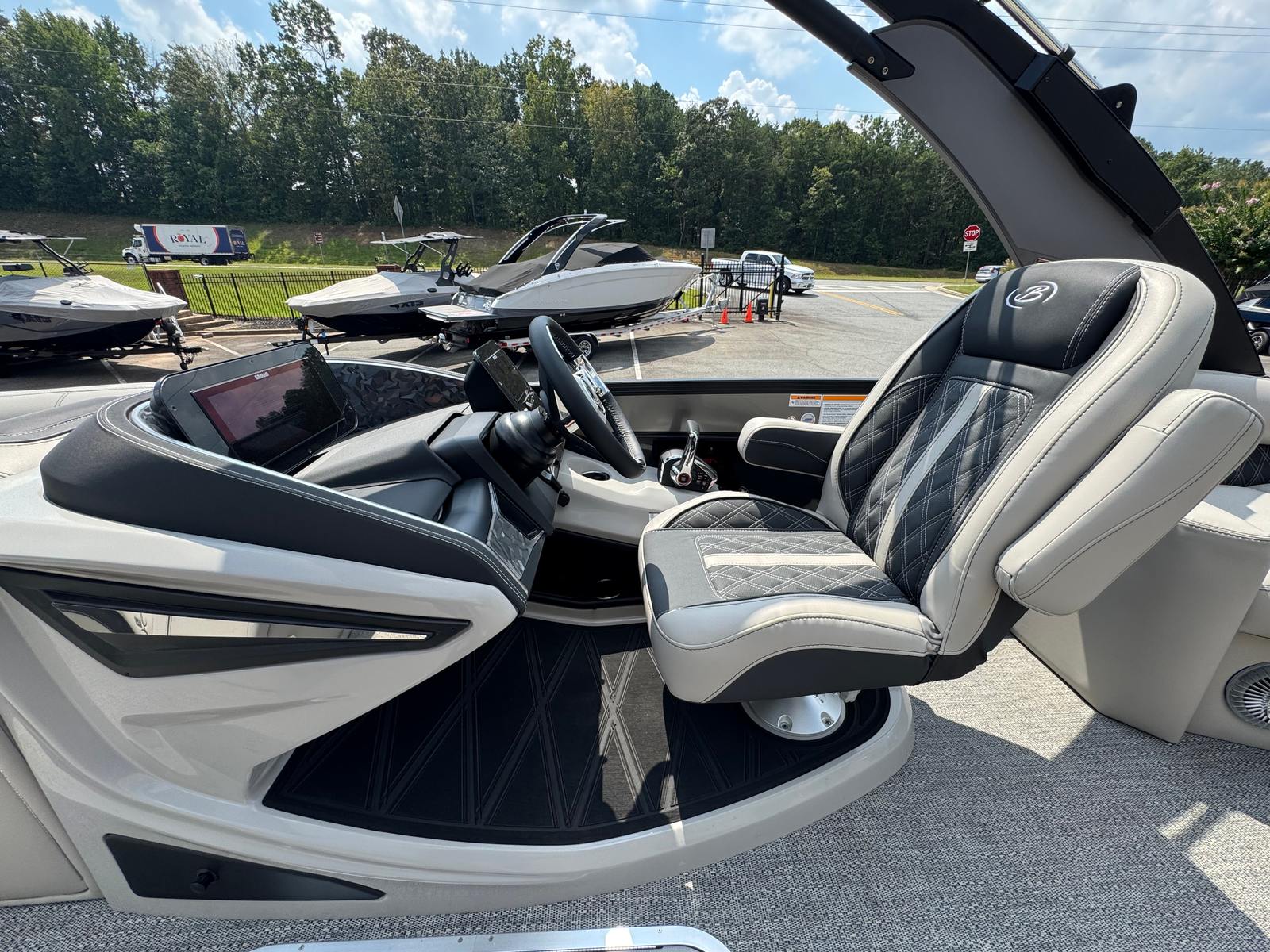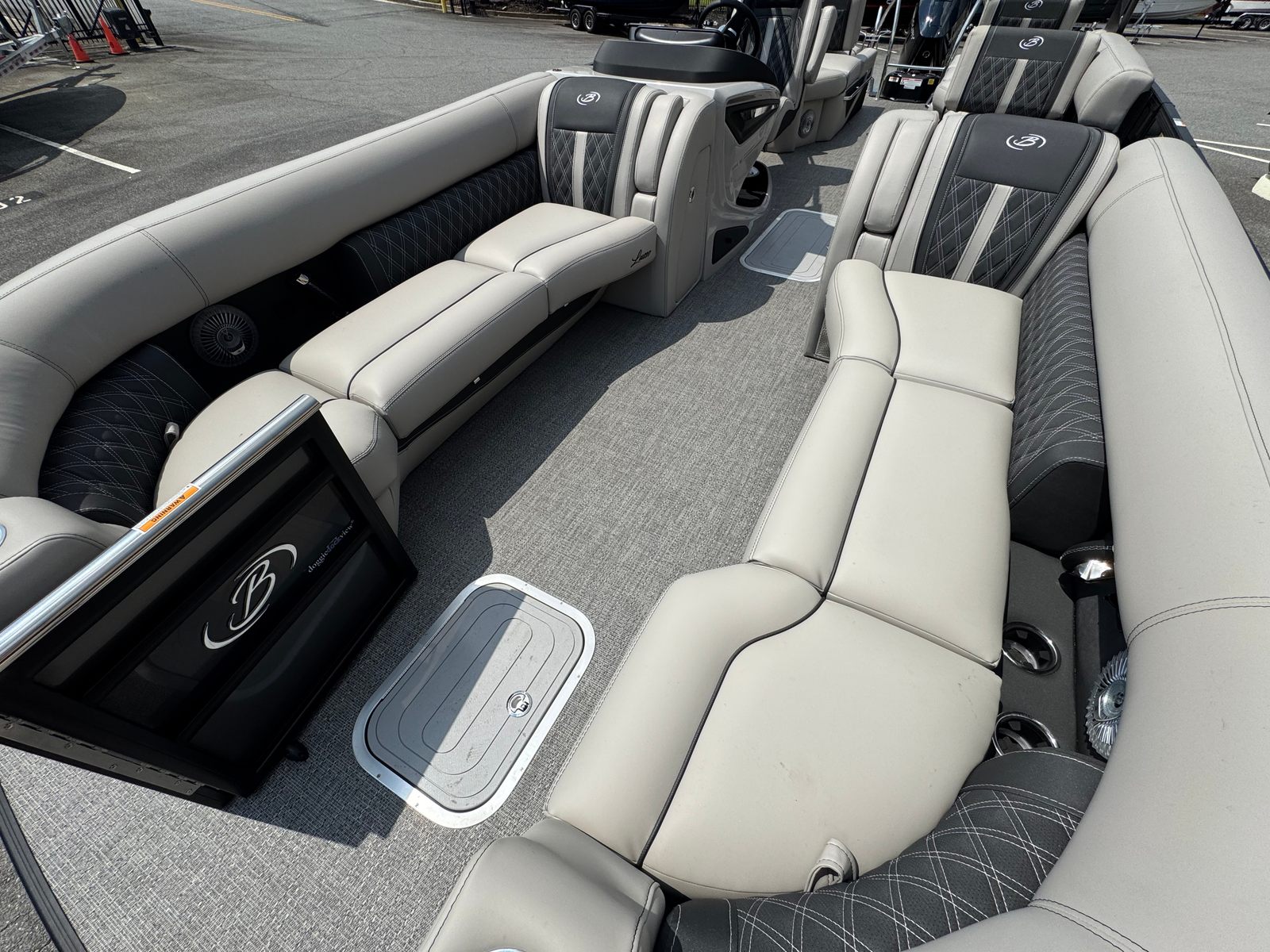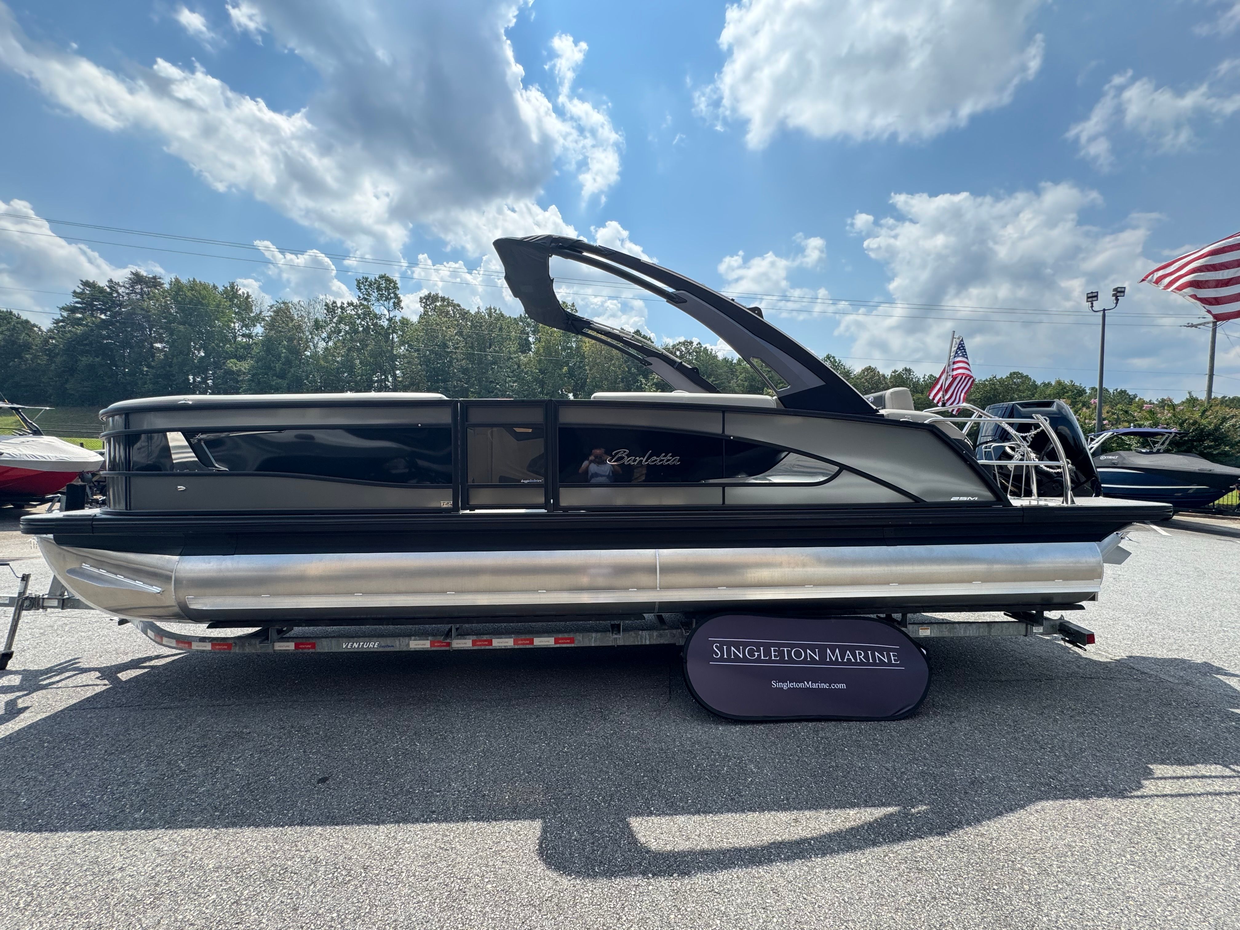 The 2026 Barletta Lusso L25MA is loaded with premium features designed to enhance your boating experience. The Marquesan Gray furniture with Onyx accents provides a luxurious and comfortable seating arrangement, perfect for relaxing or socializing with friends and family. The Amore Gray flooring adds a touch of sophistication while offering durability and easy maintenance. The Blackout Package Lusso railskin and Black Diamond accent color create a bold and modern aesthetic, ensuring your pontoon stands out wherever you go.For those who appreciate ambiance, the Lusso L25MA is equipped with white underdeck and underwater exterior lighting, creating a captivating atmosphere during evening cruises or dockside gatherings. The onboard battery charger with two batteries ensures you have reliable power for all your onboard systems, while the Mercury Digital Pre-Rig for V10 provides advanced control and monitoring of your engine’s performance. Every detail of this Barletta boat for sale is thoughtfully designed to deliver comfort, convenience, and style.