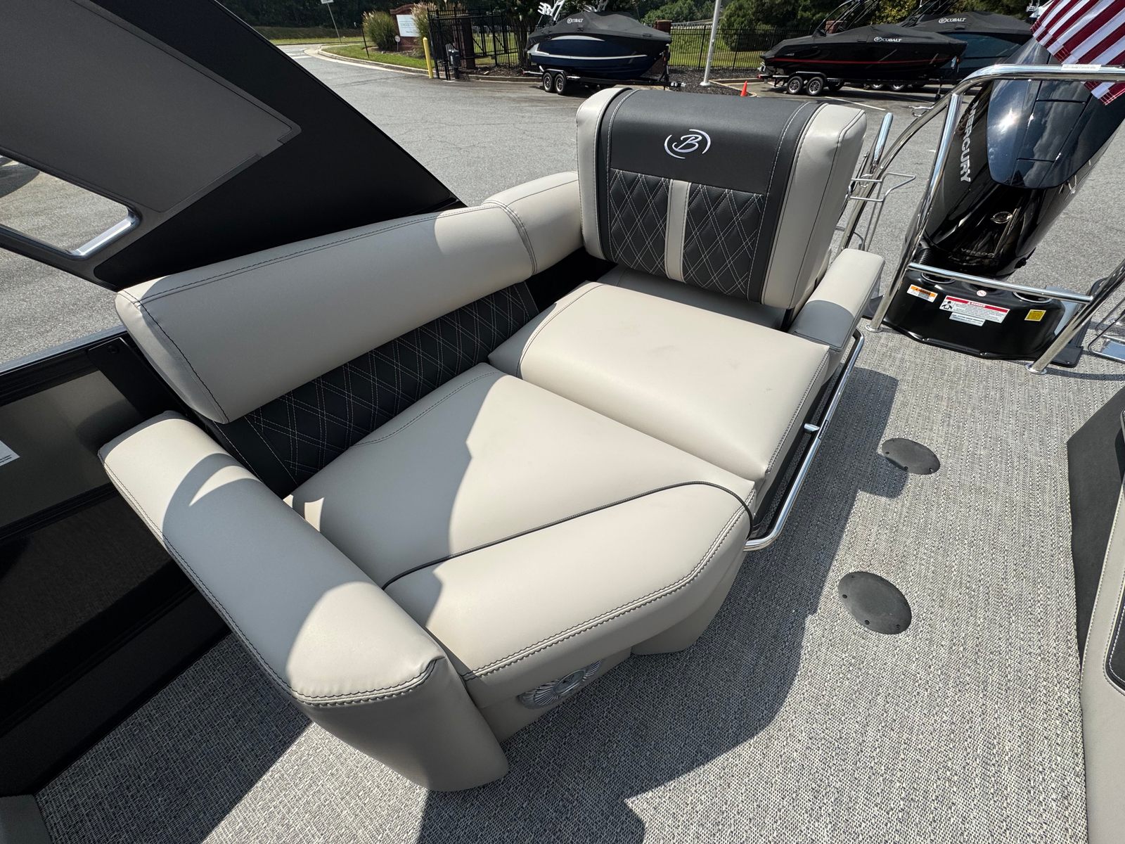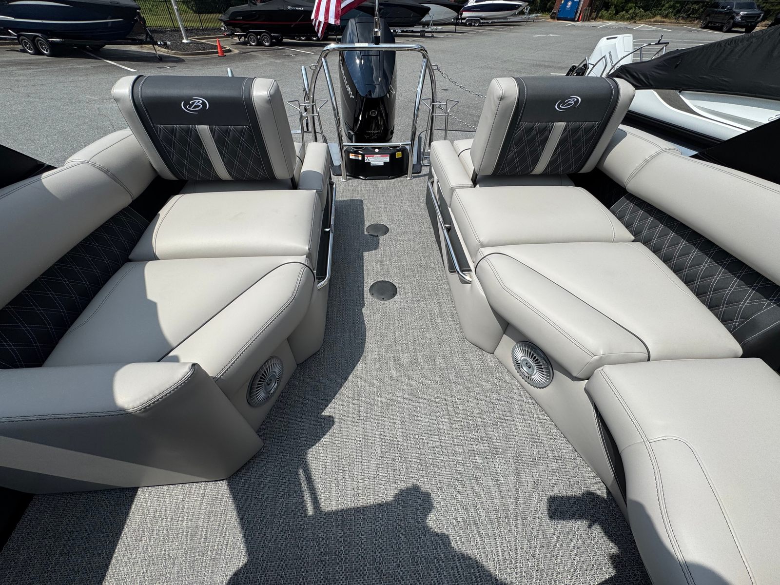 At the heart of the Barletta Lusso L25MA is a powerful Mercury 400L V10 Verado engine, delivering an impressive 400 horsepower. This single-engine setup is expertly rigged with a V10 prop, ensuring smooth acceleration, responsive handling, and exhilarating top speeds. The Mercury Digital Pre-Rig for V10 guarantees seamless integration and optimal performance, allowing you to enjoy every moment on the water with confidence. Whether you are cruising at a leisurely pace or powering across open water, the Lusso L25MA offers a thrilling and reliable ride that sets it apart from other pontoon boats for sale.