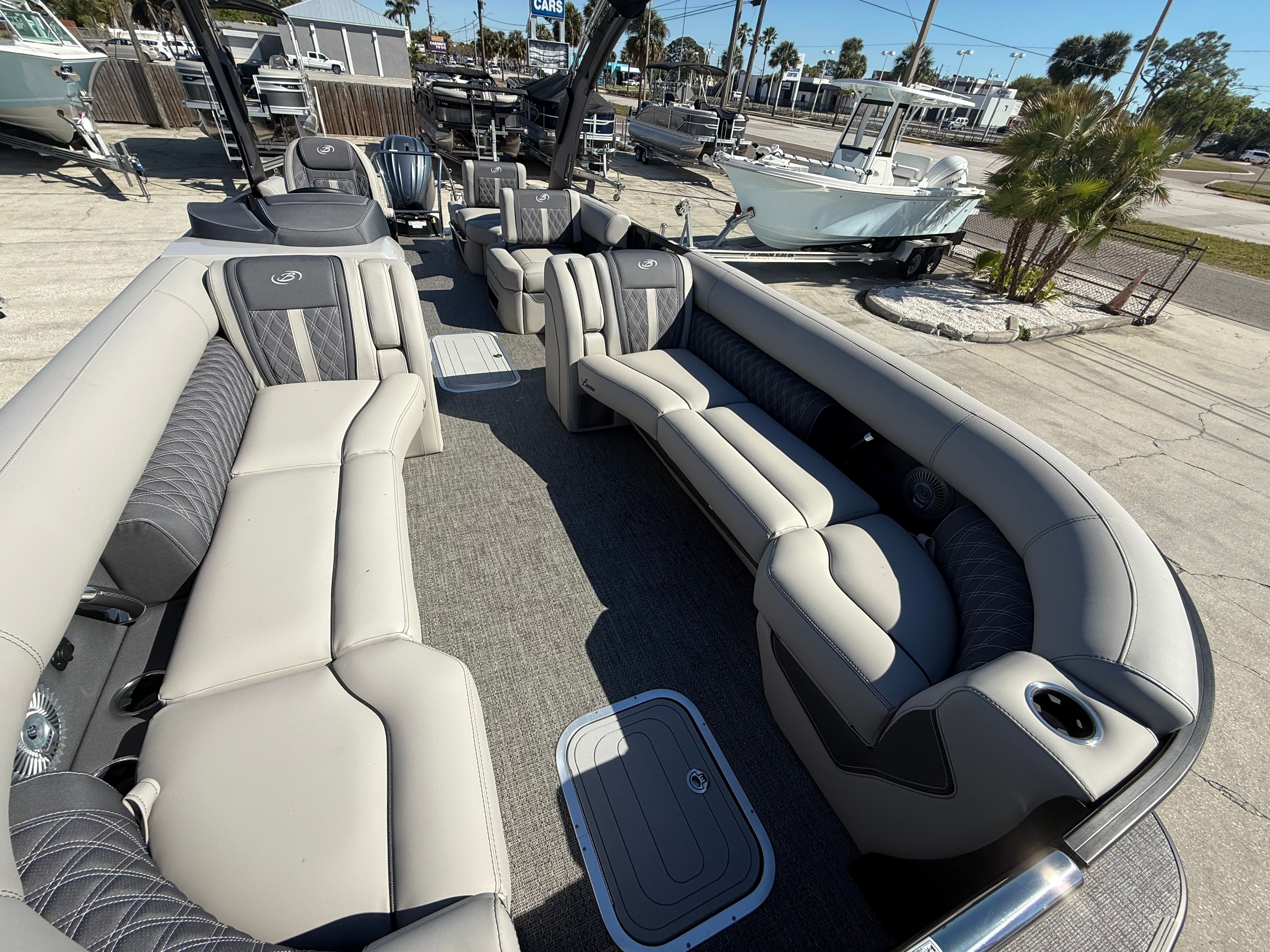 The 2025 Barletta Lusso L25MA is a top-tier pontoon boat for sale that combines luxury, performance, and practicality in one stunning package. With its powerful Yamaha F300XSB engine, integrated electric steering, digital gauges, and a host of premium features—including the Black Diamond and Gray Moonstone color scheme, Blackout Package Lusso, Marquesan Gray furniture, Amore Gray flooring, and Coastal Edition Lusso—this Barletta boat for sale is designed to deliver unforgettable experiences on the water.Whether you are seeking a family-friendly pontoon, a stylish entertainer, or a reliable performer for coastal adventures, the Lusso L25MA is ready to exceed your expectations. Don’t miss the opportunity to own this exceptional pontoon boat—contact your local dealer today to learn more and schedule a viewing. Your next adventure awaits with the Barletta Lusso L25MA!