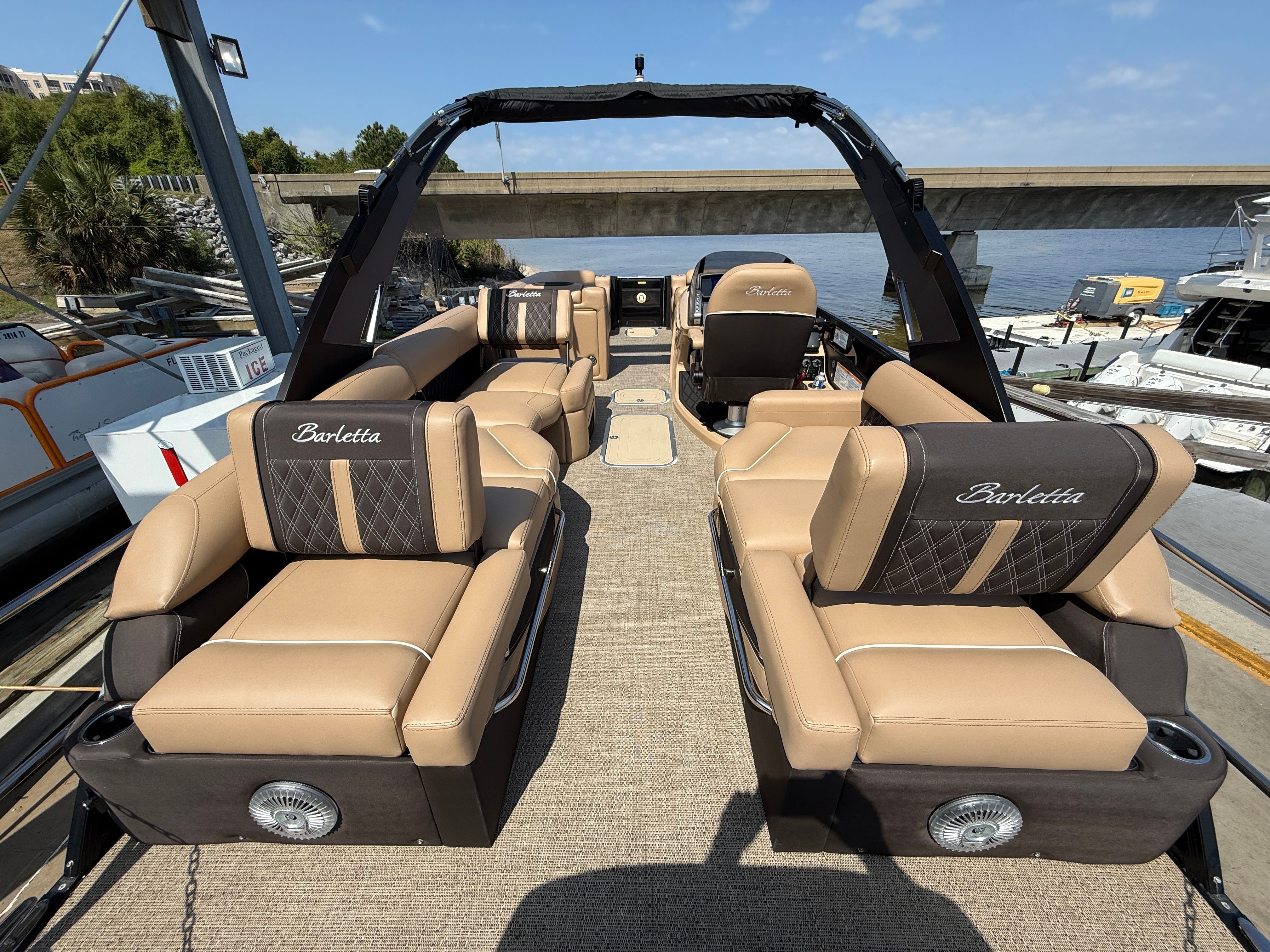 Owning the Barletta Lusso L25MAT means embracing a lifestyle of fun, relaxation, and adventure. The spacious deck is perfect for hosting parties, enjoying meals, or simply lounging in the sun. The powerful engines allow for a variety of water activities, from tubing and wakeboarding to leisurely cruises. The Lusso L25MAT’s comfortable seating and open layout create a welcoming atmosphere for socializing, making every trip on the water a memorable occasion. With its impressive performance and luxurious amenities, this Barletta boat for sale is designed to maximize enjoyment for all on board.