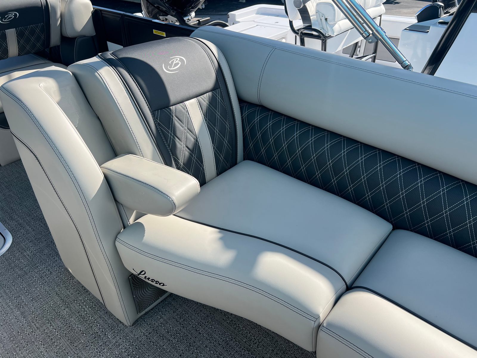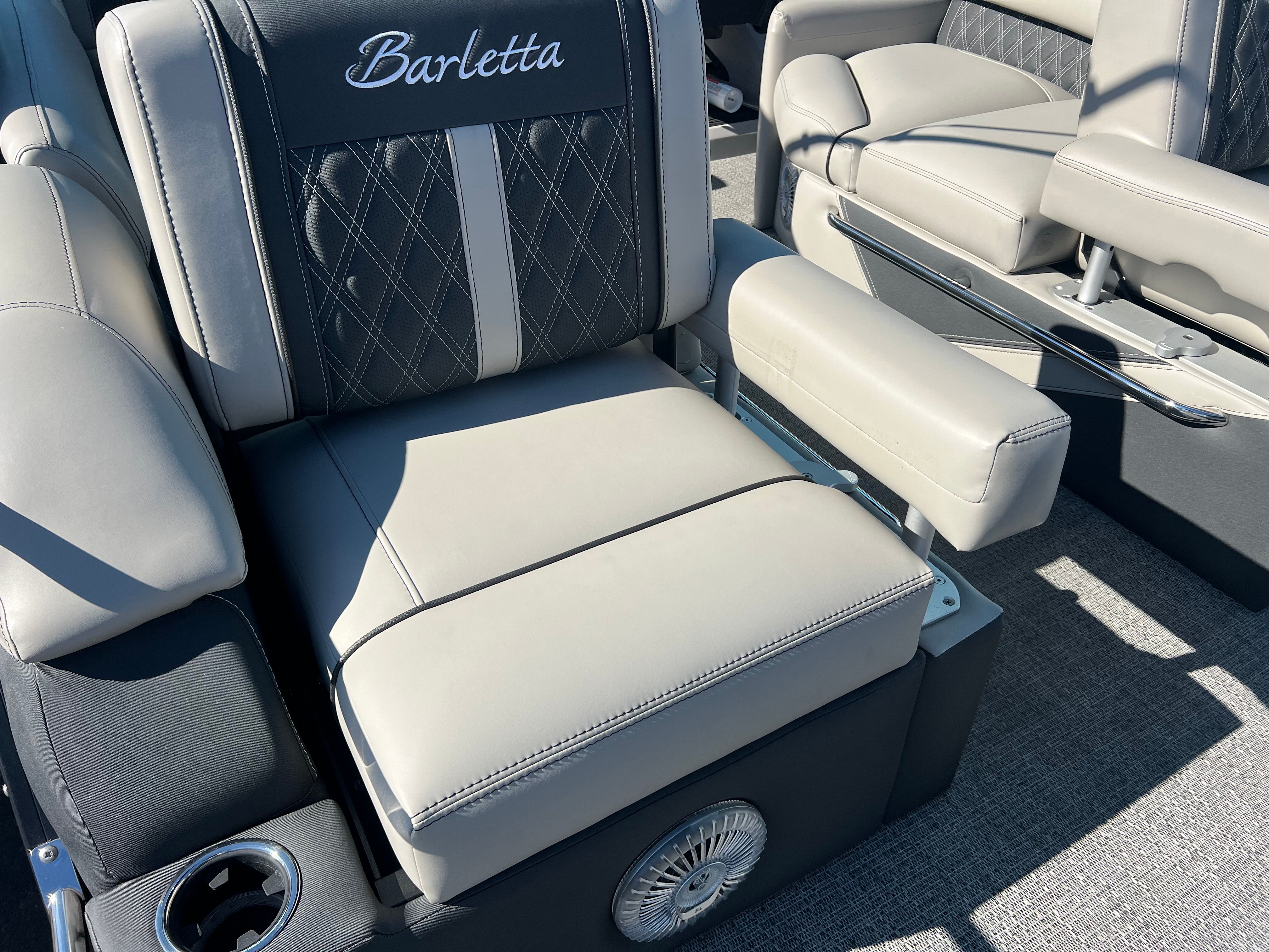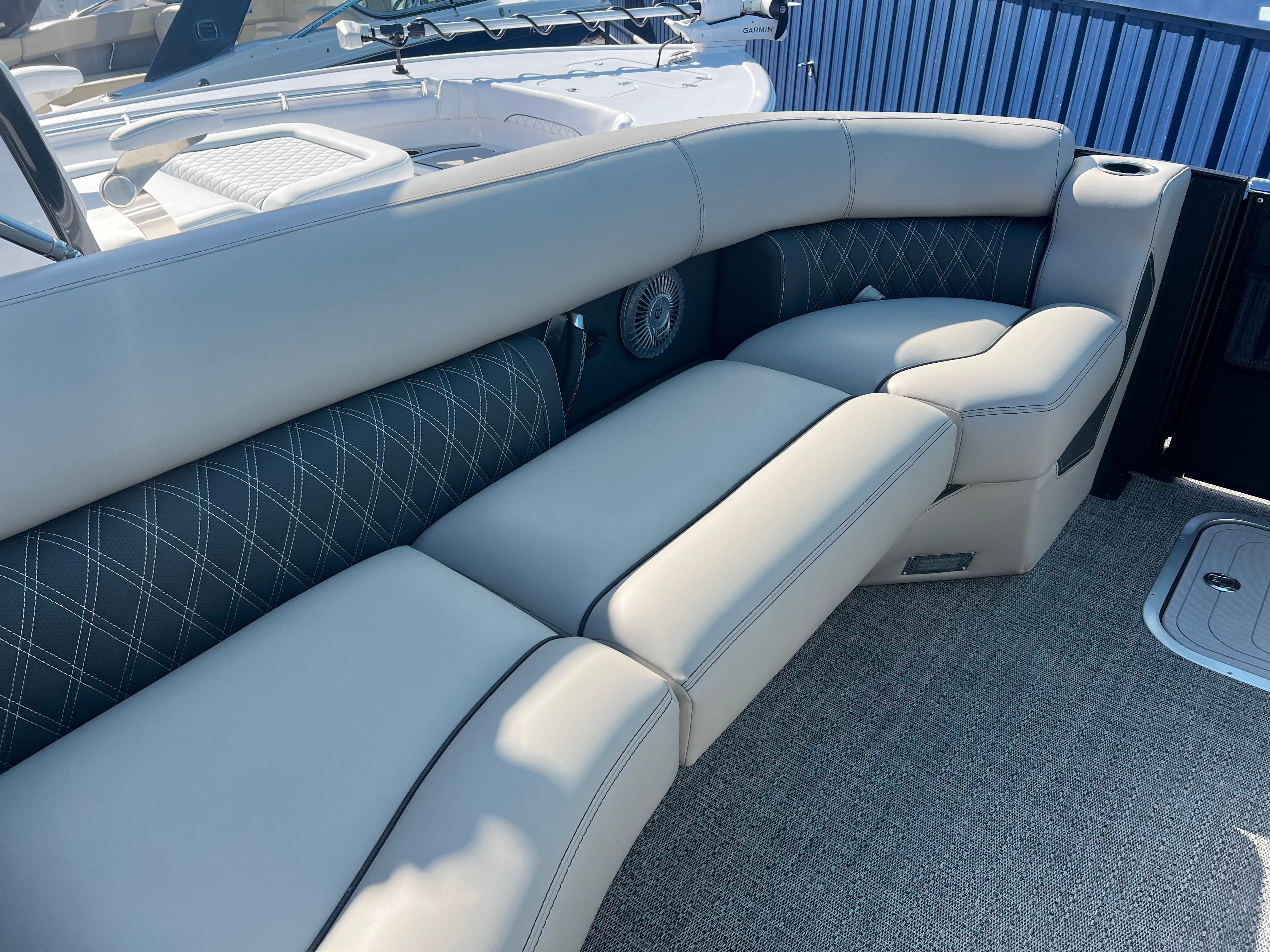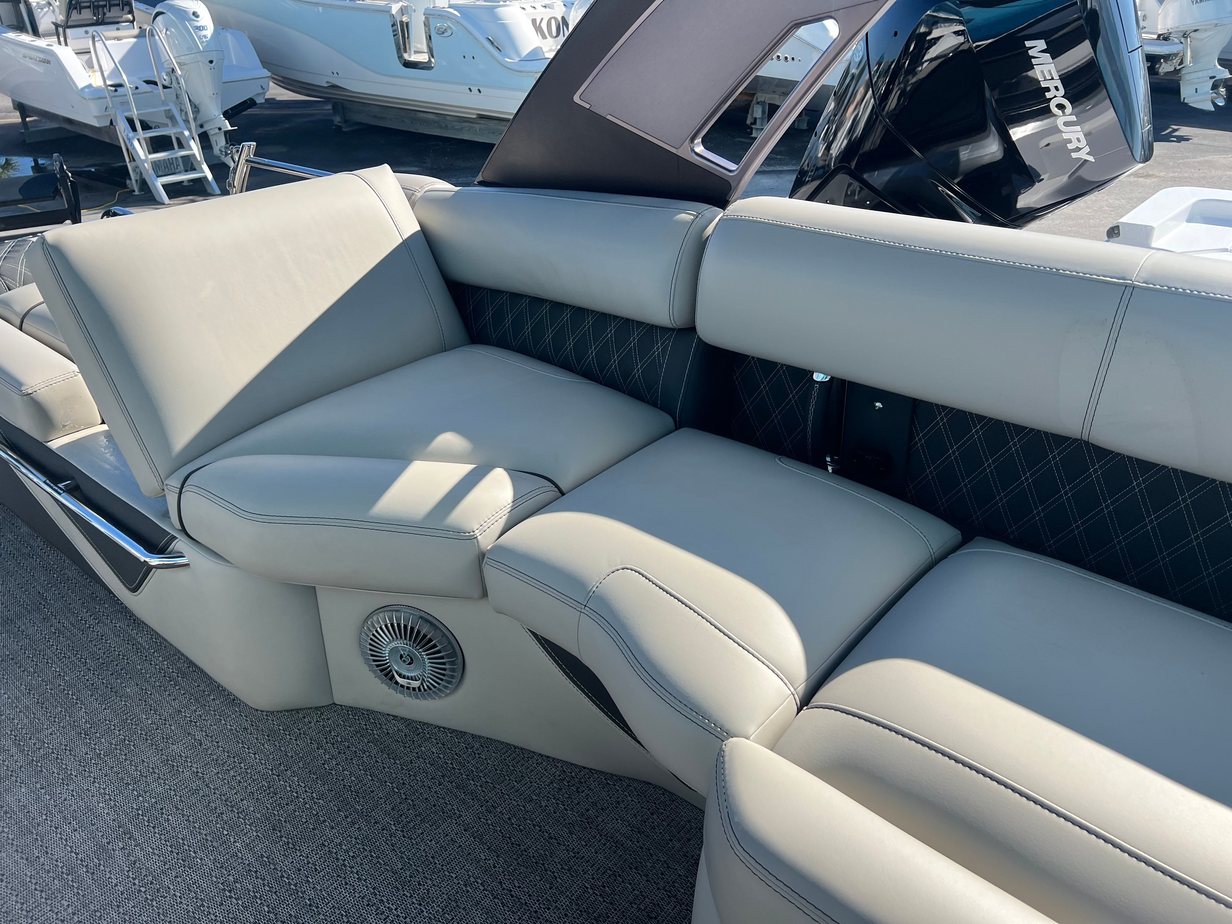 Practicality meets luxury in the Barletta Lusso L25MAT. The spacious layout allows for easy movement and plenty of storage for gear, snacks, and water toys, making it perfect for extended outings. The twin-engine setup not only boosts performance but also simplifies docking and maneuvering, giving you greater control in tight spaces. Fuel efficiency is enhanced by the advanced Mercury Verado engines, allowing you to spend more time on the water and less time refueling. The durable flooring and furniture are designed to withstand the elements, ensuring your investment remains in top condition for years to come. Exterior lighting adds safety and style, illuminating your path during nighttime adventures and creating a welcoming atmosphere for evening gatherings.
