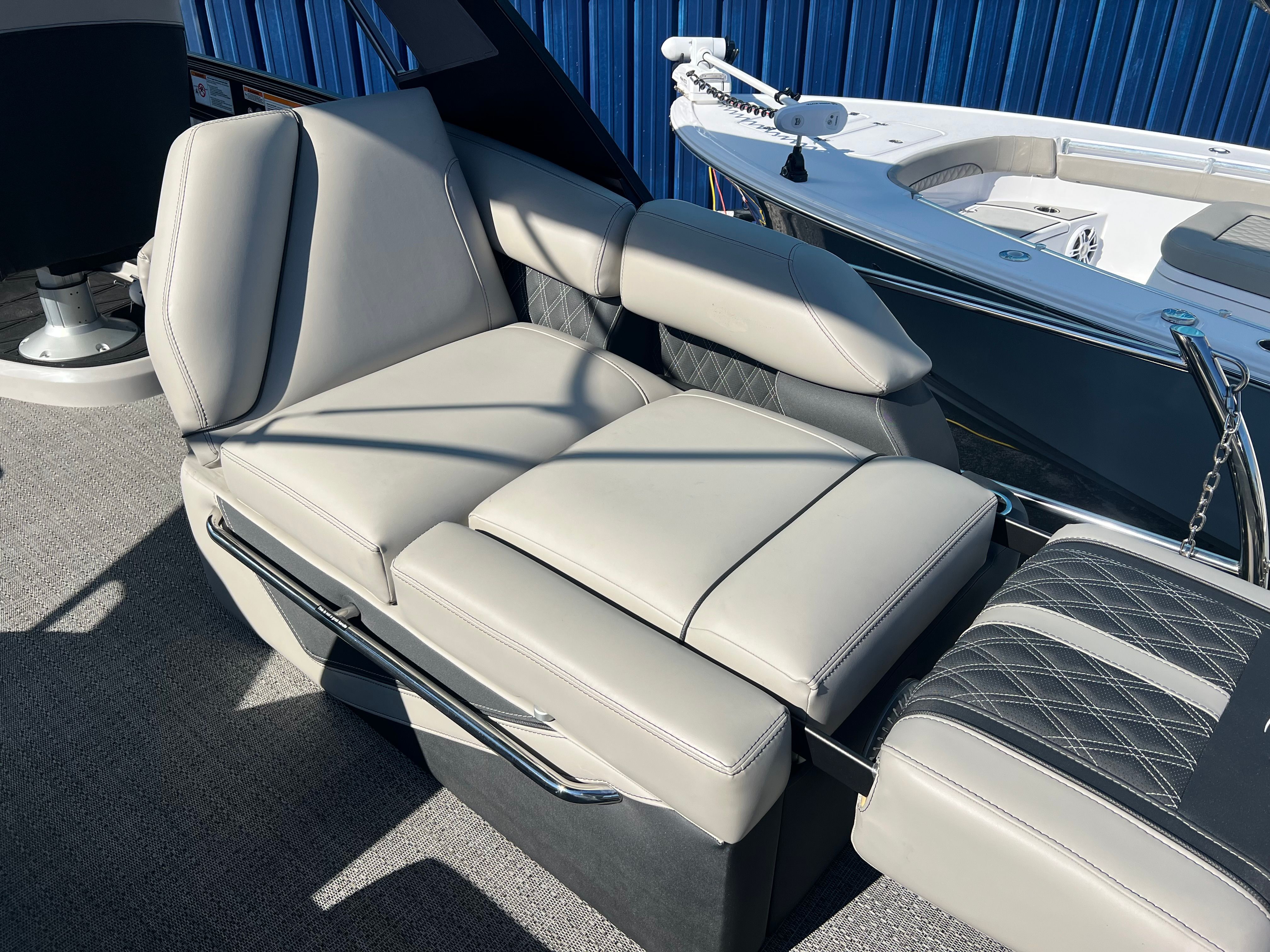 Owning the Barletta Lusso L25MAT means embracing a lifestyle of fun, relaxation, and social connection. This pontoon boat for sale is designed with comfort and enjoyment in mind, offering spacious seating areas perfect for lounging, entertaining, or soaking up the sun. The high-performance twin Mercury engines provide the thrill of speed and the confidence of reliable power, while the advanced rigging and pre-rig systems ensure hassle-free operation. The double bimini arches offer flexible shade, making it easy to adapt to changing weather and keep everyone comfortable. With its striking color scheme and premium materials, the Lusso L25MAT is sure to turn heads and impress guests every time you set sail.