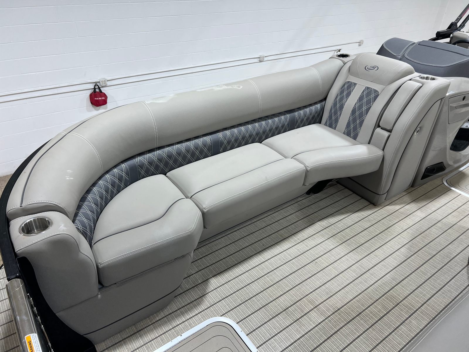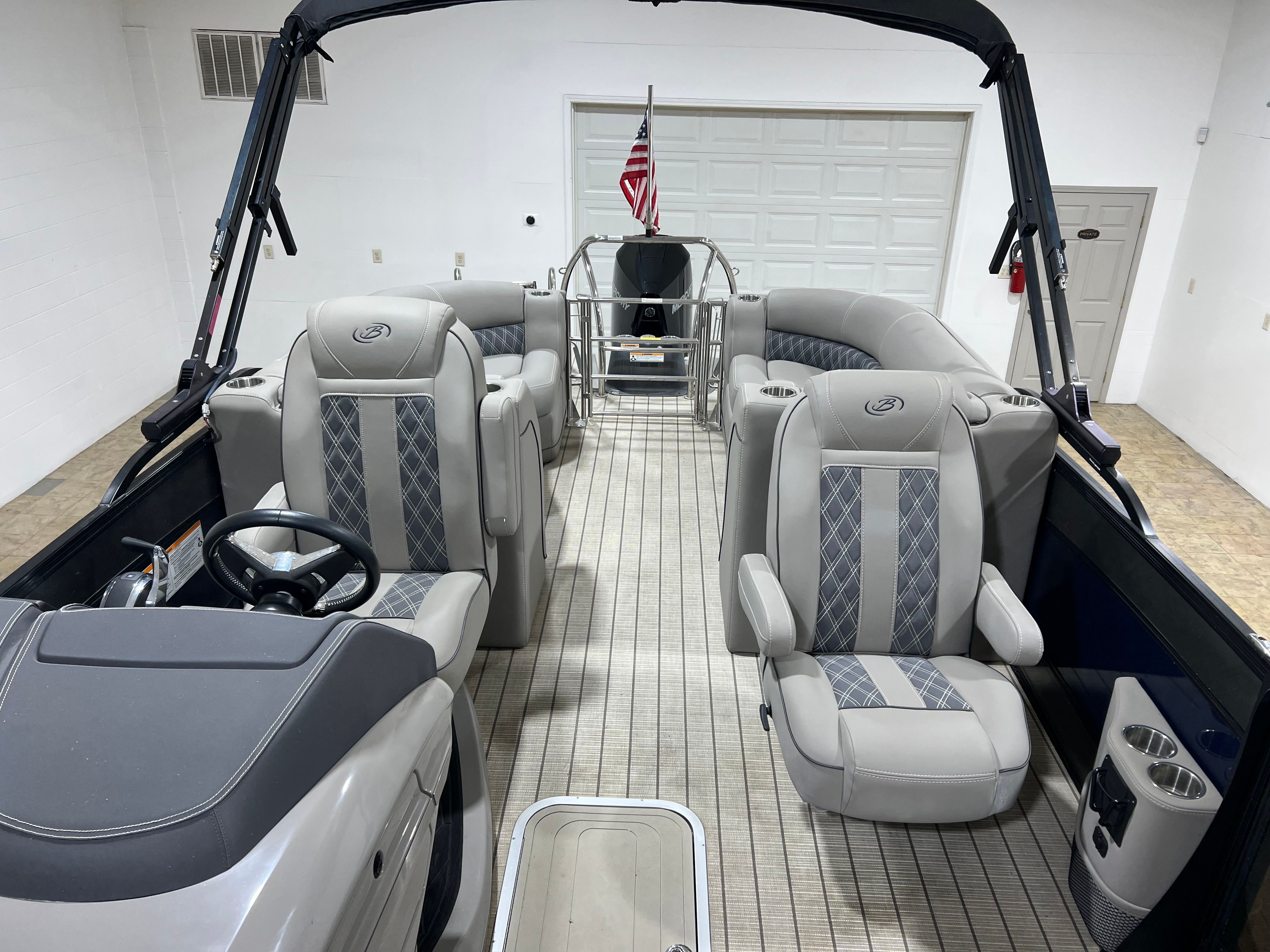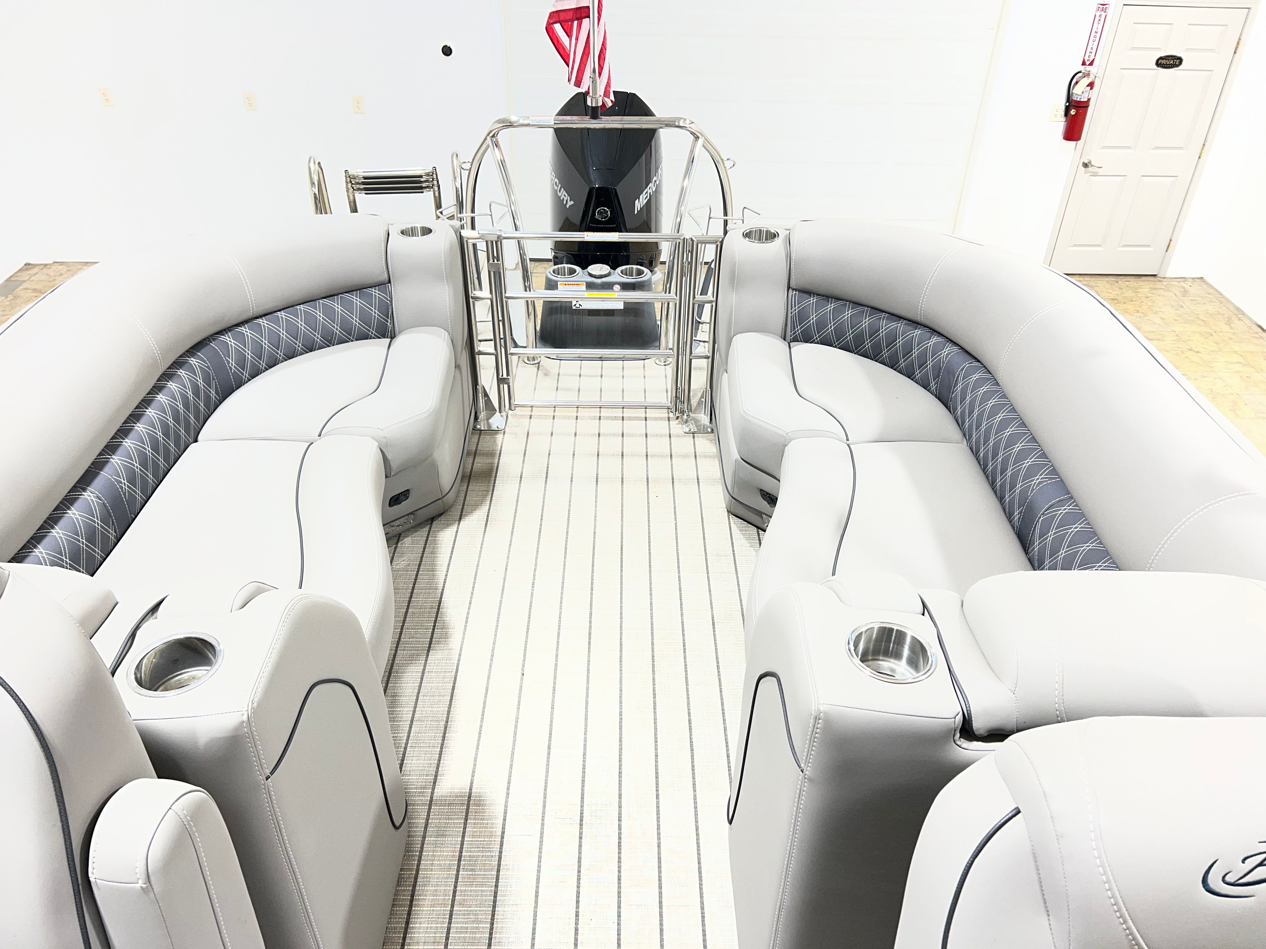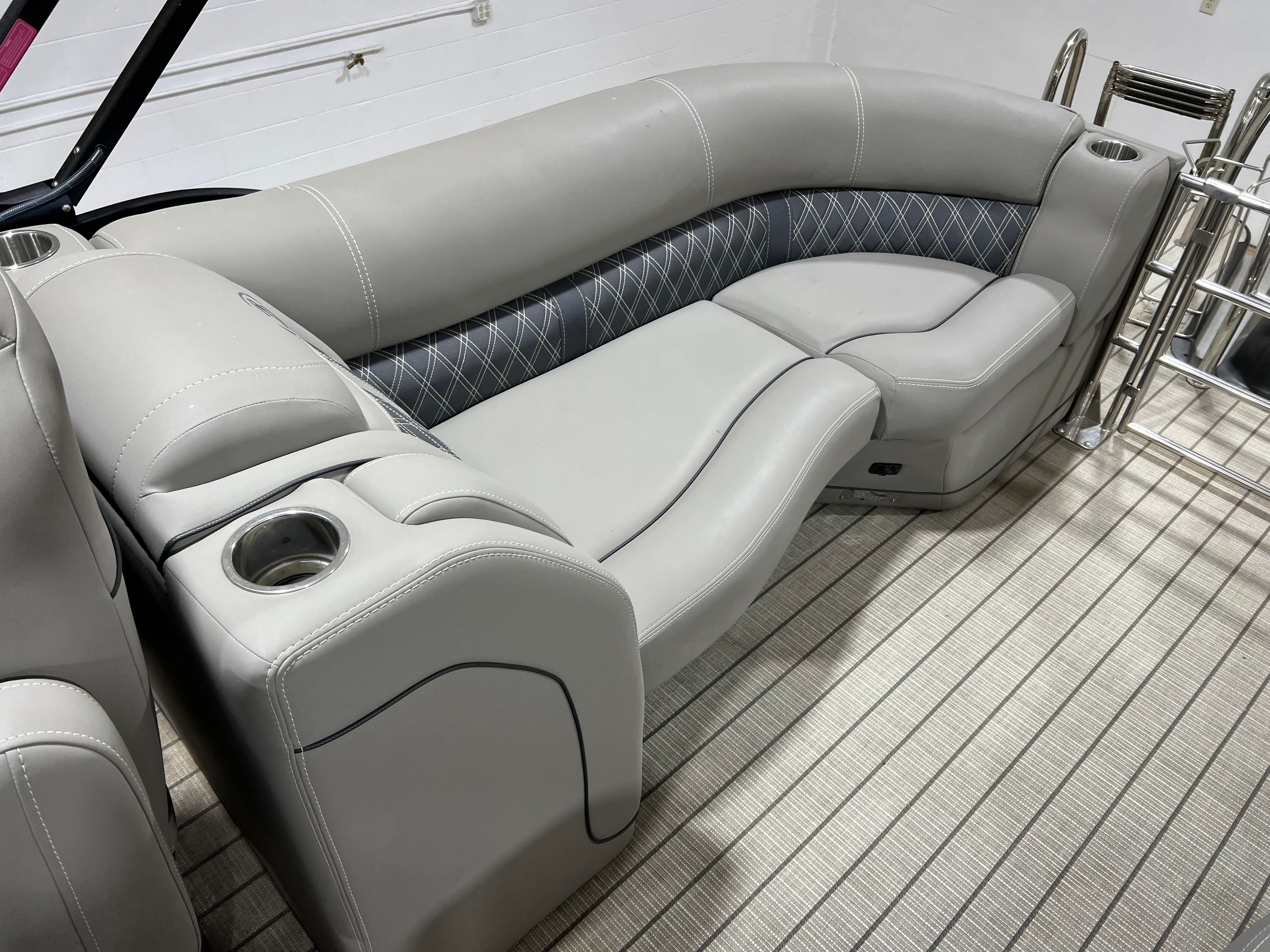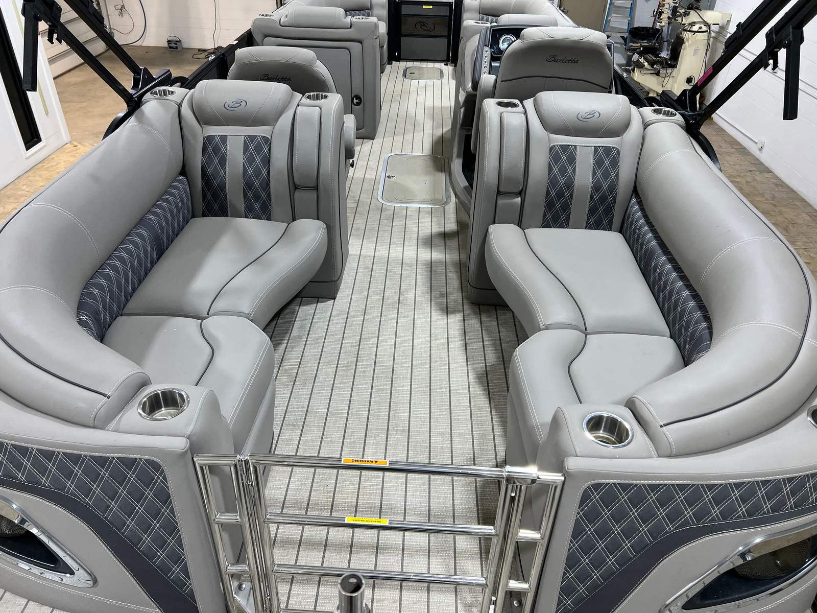 The 2022 Barletta L25QCSS is packed with features designed to enhance your time on the water. Its spacious deck layout provides plenty of room for guests to spread out and enjoy the ride, while the high-quality construction ensures durability and longevity. The pontoon’s sleek design is complemented by premium materials and attention to detail, creating an inviting atmosphere for relaxation and socializing. Whether you’re hosting a sunset cruise or a lively gathering, this Barletta boat for sale offers the perfect setting for making memories.