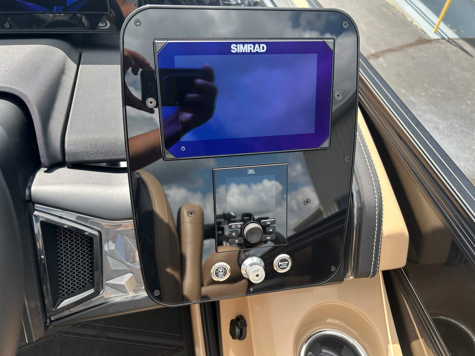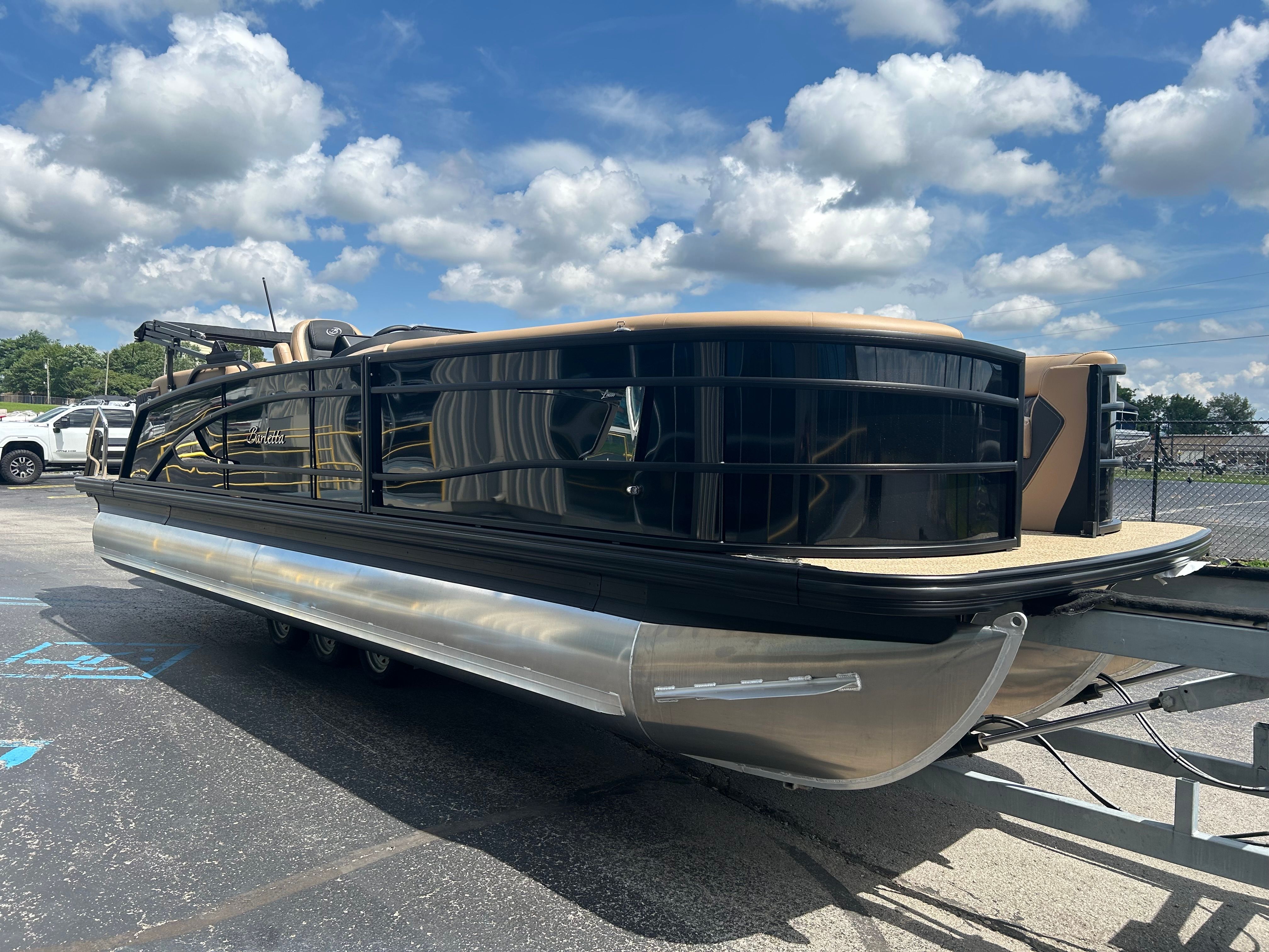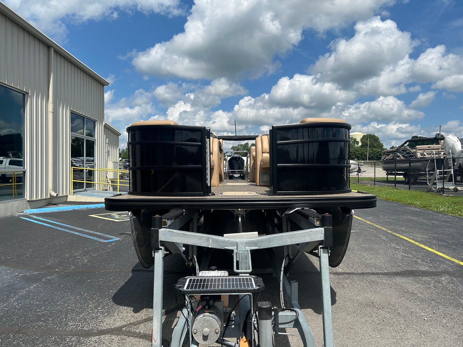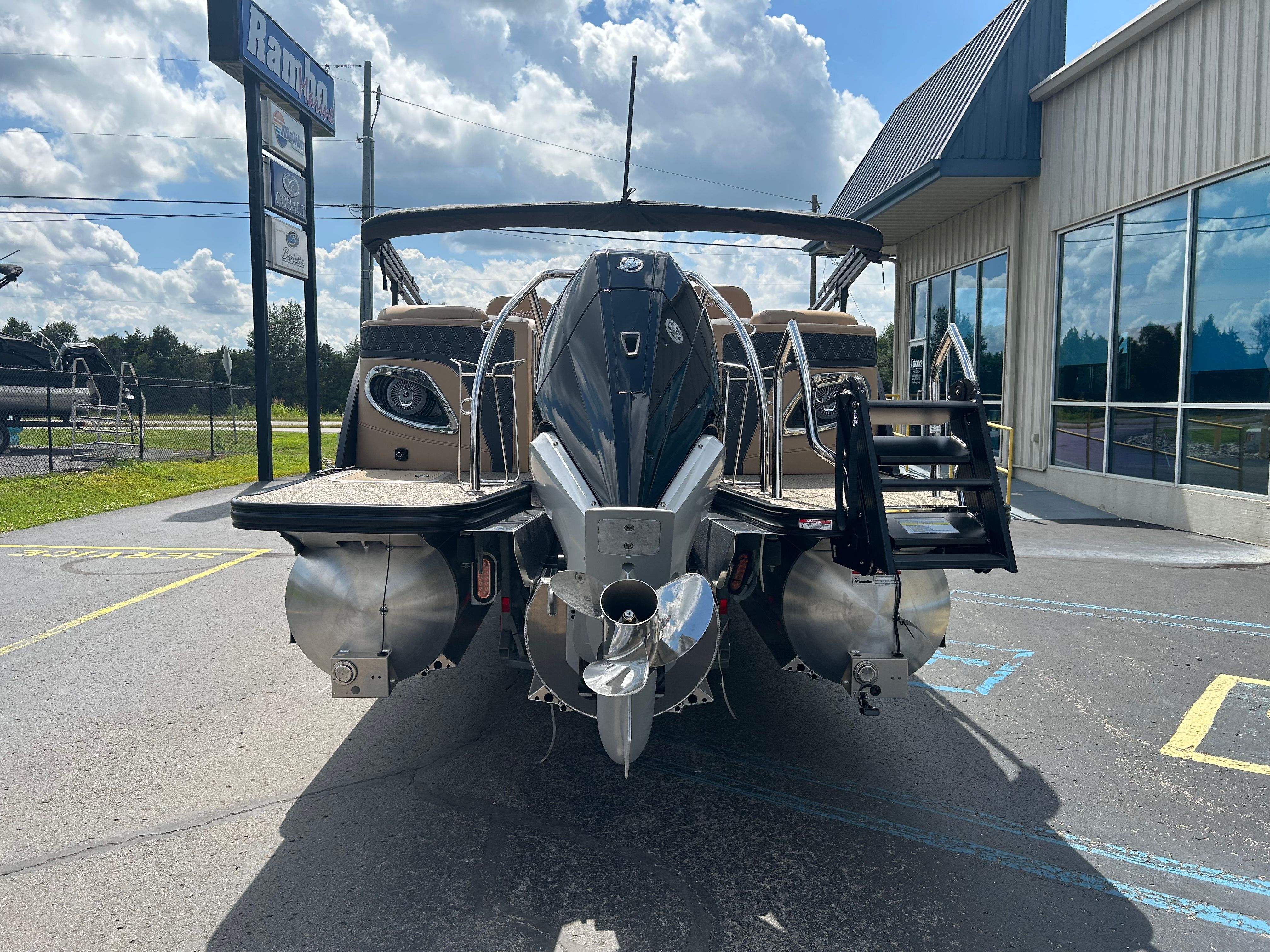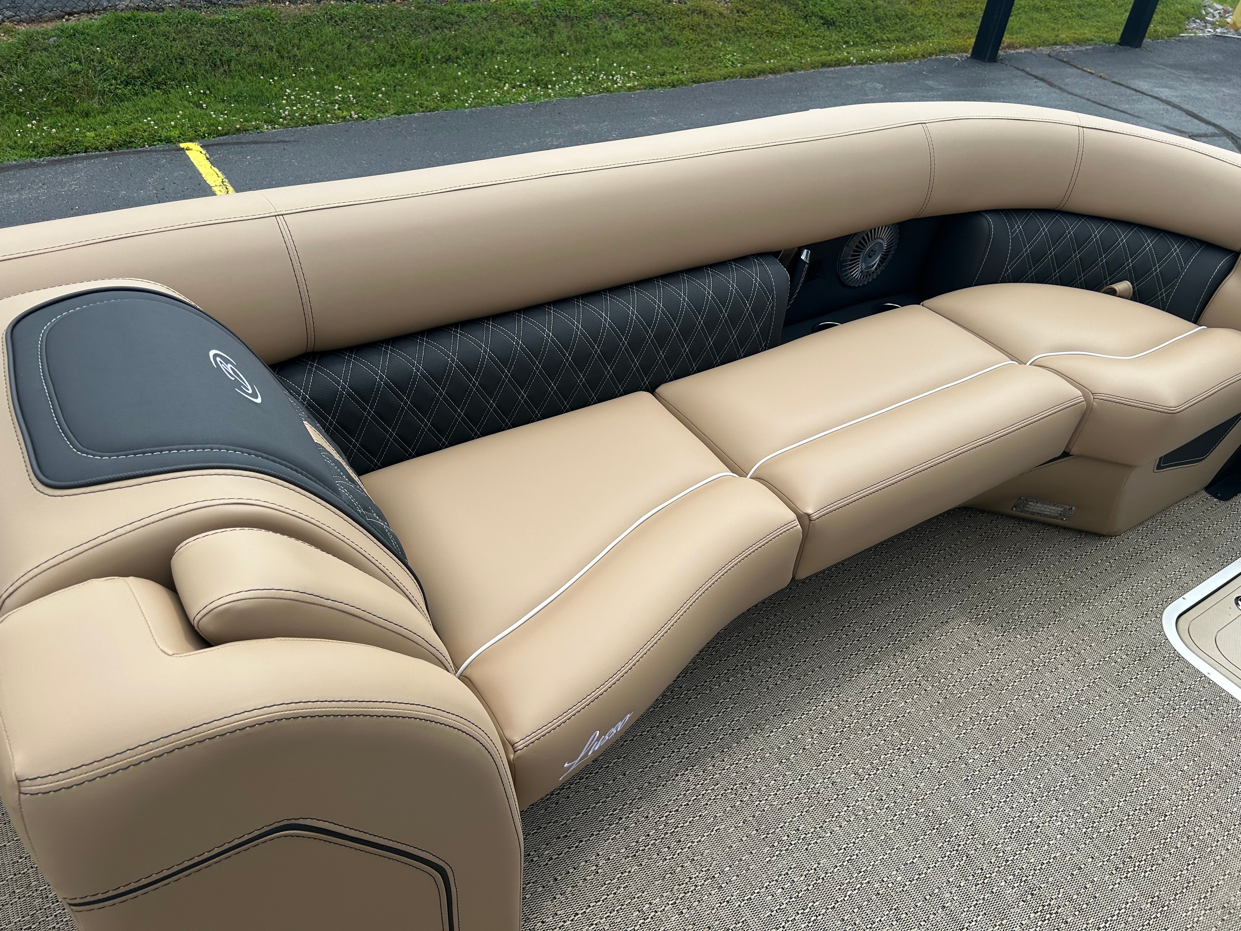 Step aboard the Barletta Lusso L25QCSS and discover a world of premium features designed to elevate your time on the water. The rig engine is equipped with a stainless steel prop, ensuring durability and optimal performance. Exterior lighting, including white underdeck and underwater illumination, creates a captivating ambiance for evening outings and enhances visibility for added safety. The flooring features Amore Tan, providing a comfortable and stylish foundation that complements the boat’s overall aesthetic.The railskin packages include the Blackout Package Lusso, adding a touch of sophistication and modern flair. The furniture is upholstered in Carmella Tan with Onyx accents, offering plush seating and a luxurious feel throughout the deck. Digital gauges provide clear, easy-to-read information at a glance, while the accent color in Black Diamond ties together the boat’s contemporary look. Every detail of the Lusso L25QCSS has been thoughtfully designed to deliver an exceptional boating experience.