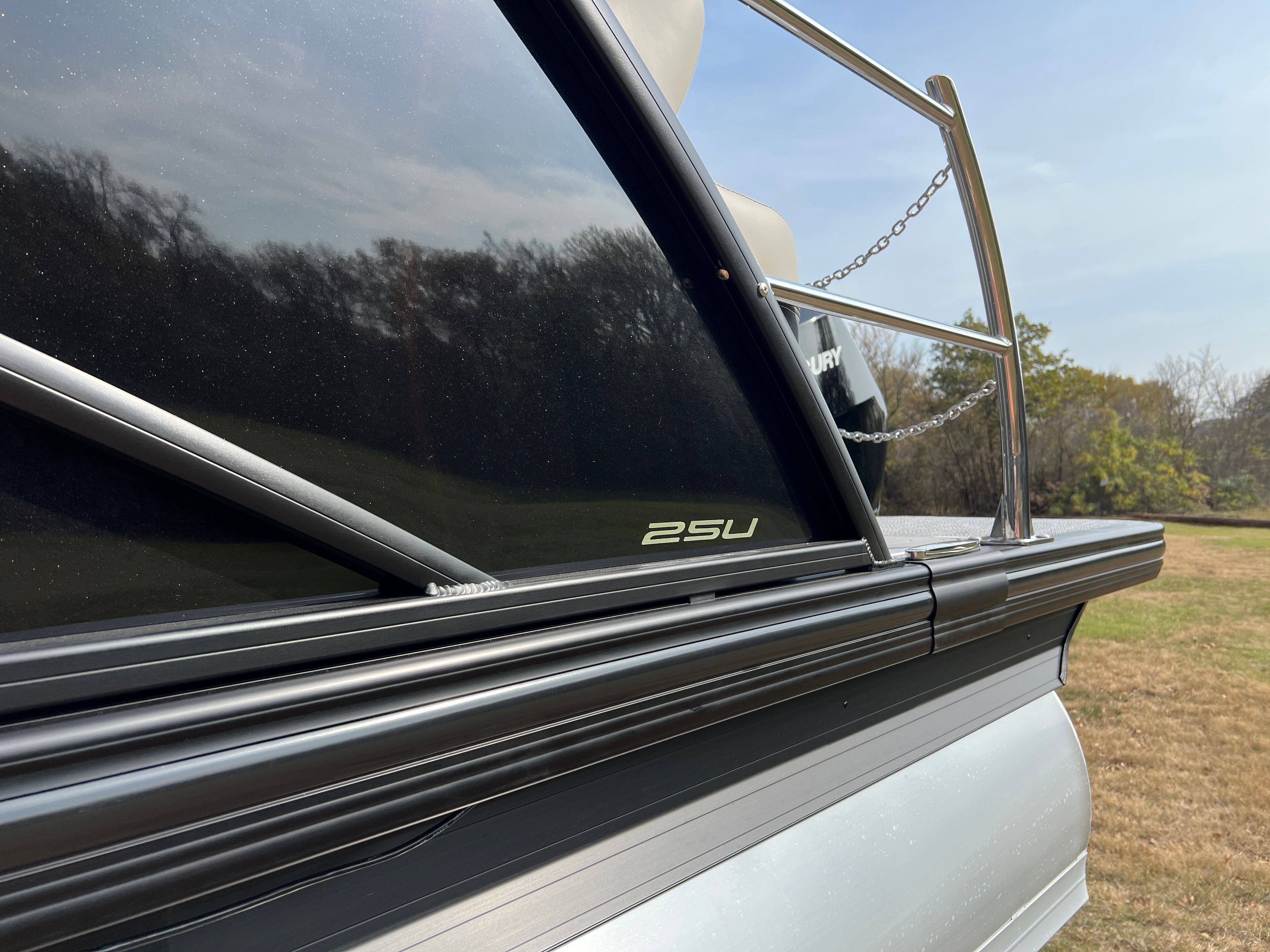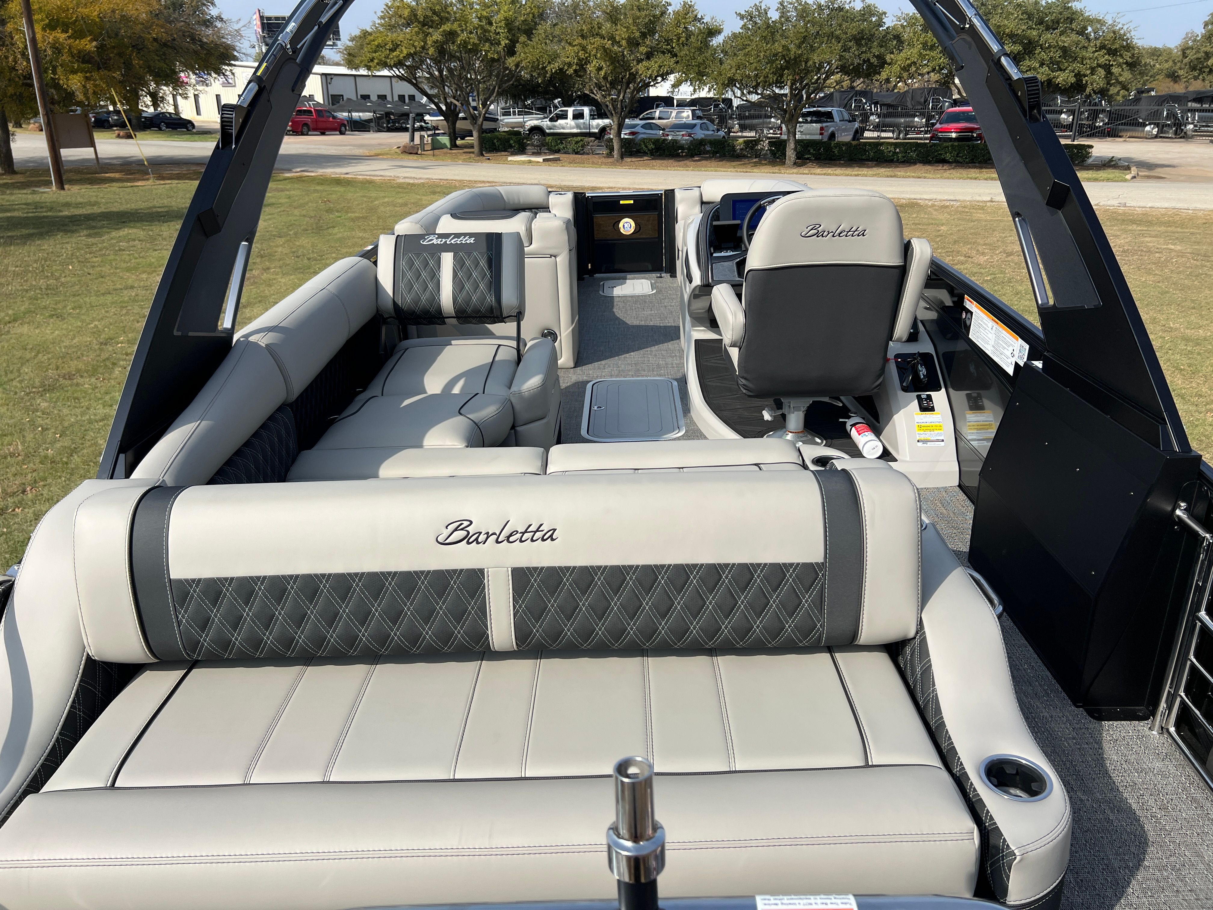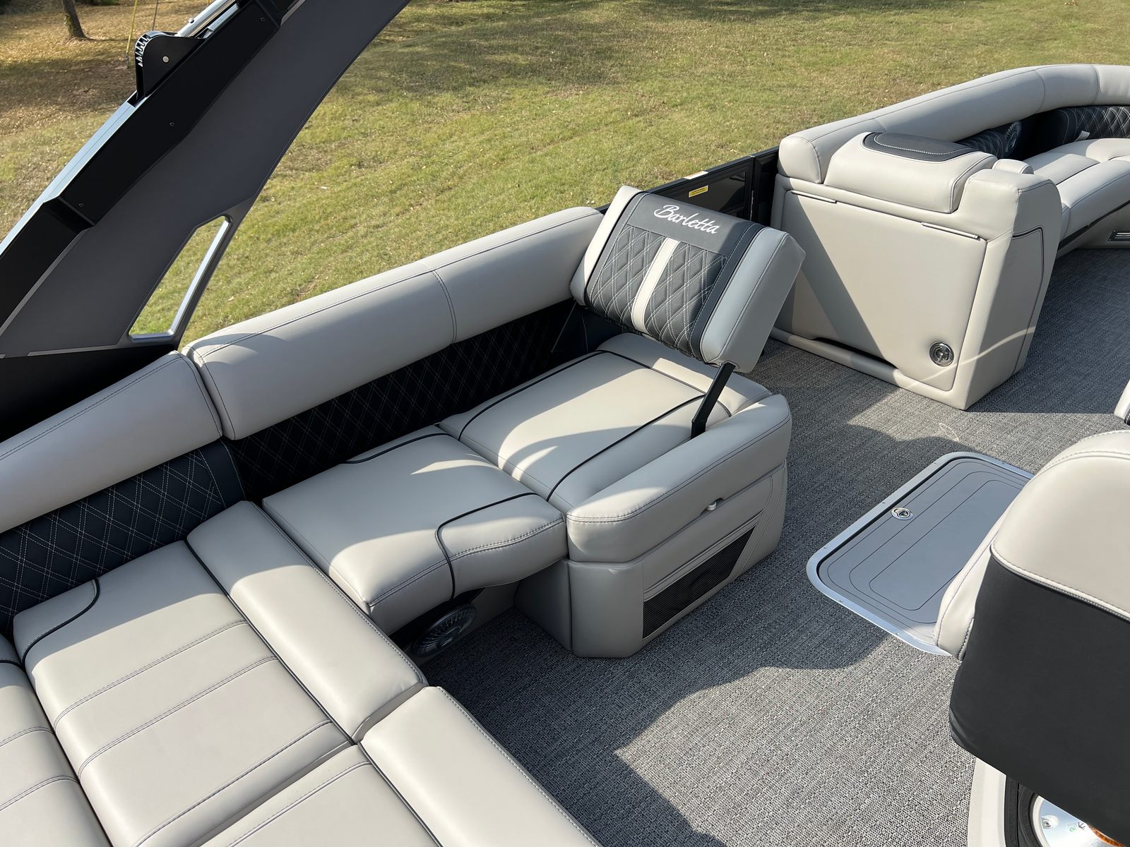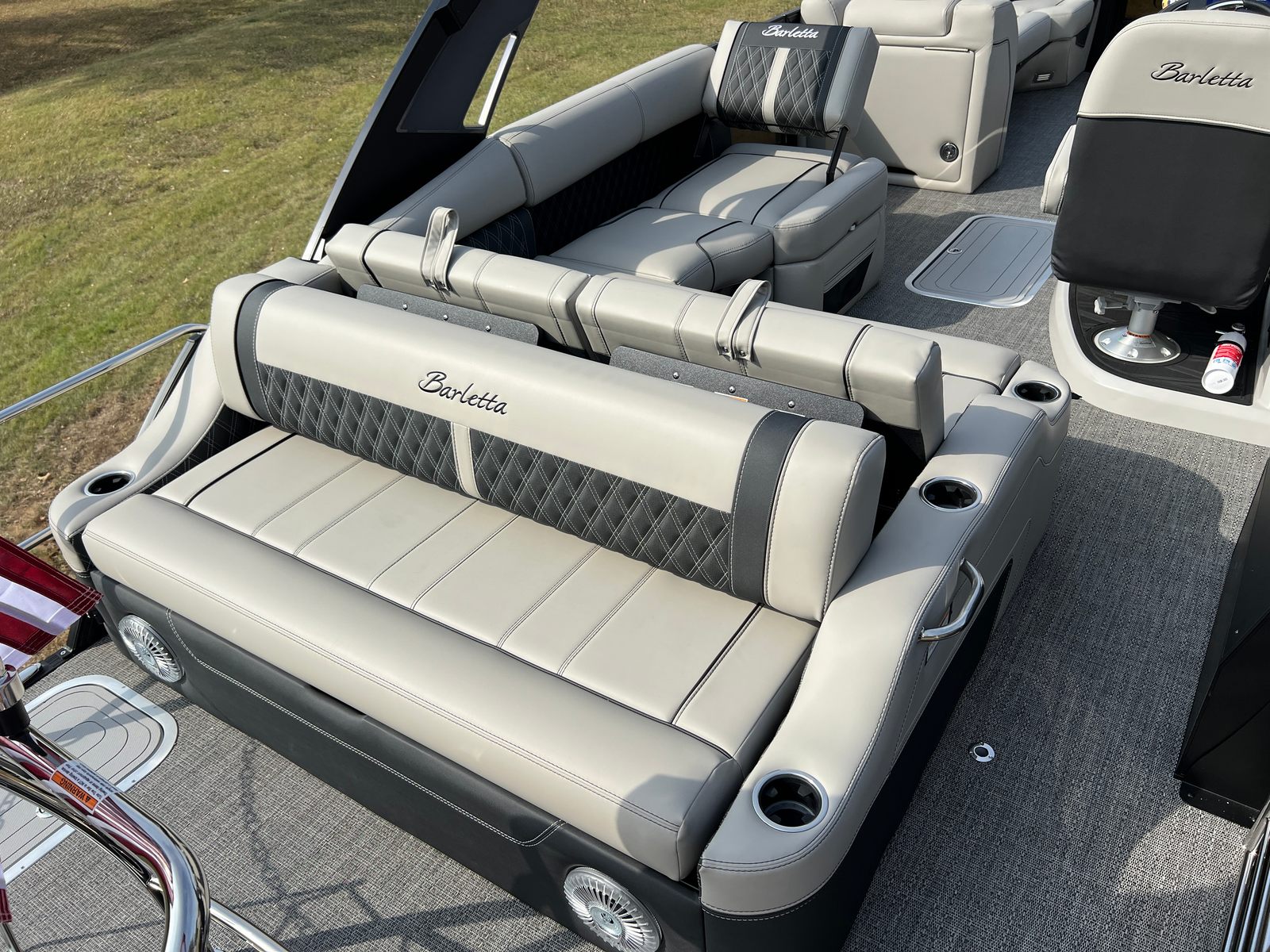 In summary, the 2026 Barletta Lusso L25UA is a standout pontoon boat for sale that offers a rare combination of luxury, performance, and versatility. With its striking Gray Moonstone and Black Diamond color scheme, Blackout Package Lusso, plush Marquesan Gray with Onyx furniture, Amore Gray flooring, and advanced Mercury 400L V10 Verado engine, this boat is designed to impress at every turn. Stainless steel safety stanchions with chains and Metal Jacket Protectant add to its appeal, ensuring both safety and longevity. If you are ready to elevate your boating experience and create lasting memories on the water, the Barletta Lusso L25UA is the perfect vessel to make your dreams a reality. Contact your local dealer today to learn more about this exceptional Barletta boat for sale and take the first step toward unforgettable adventures.