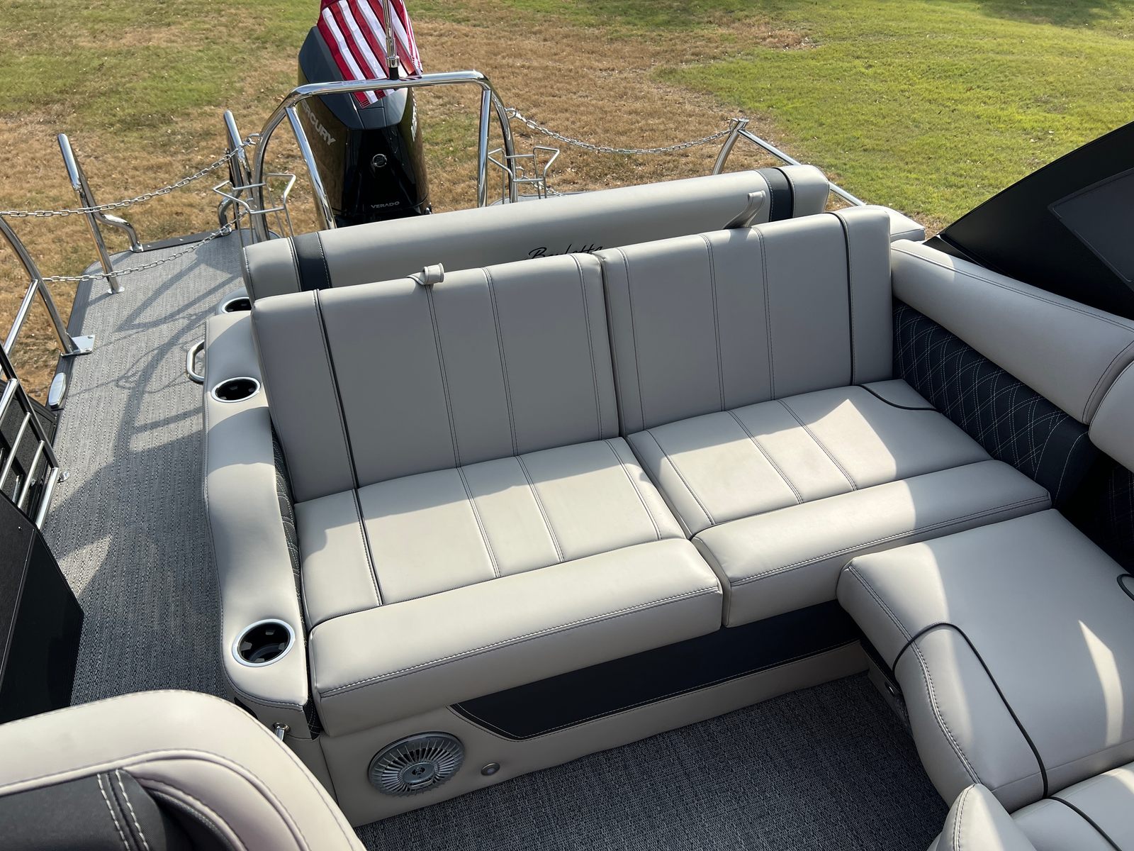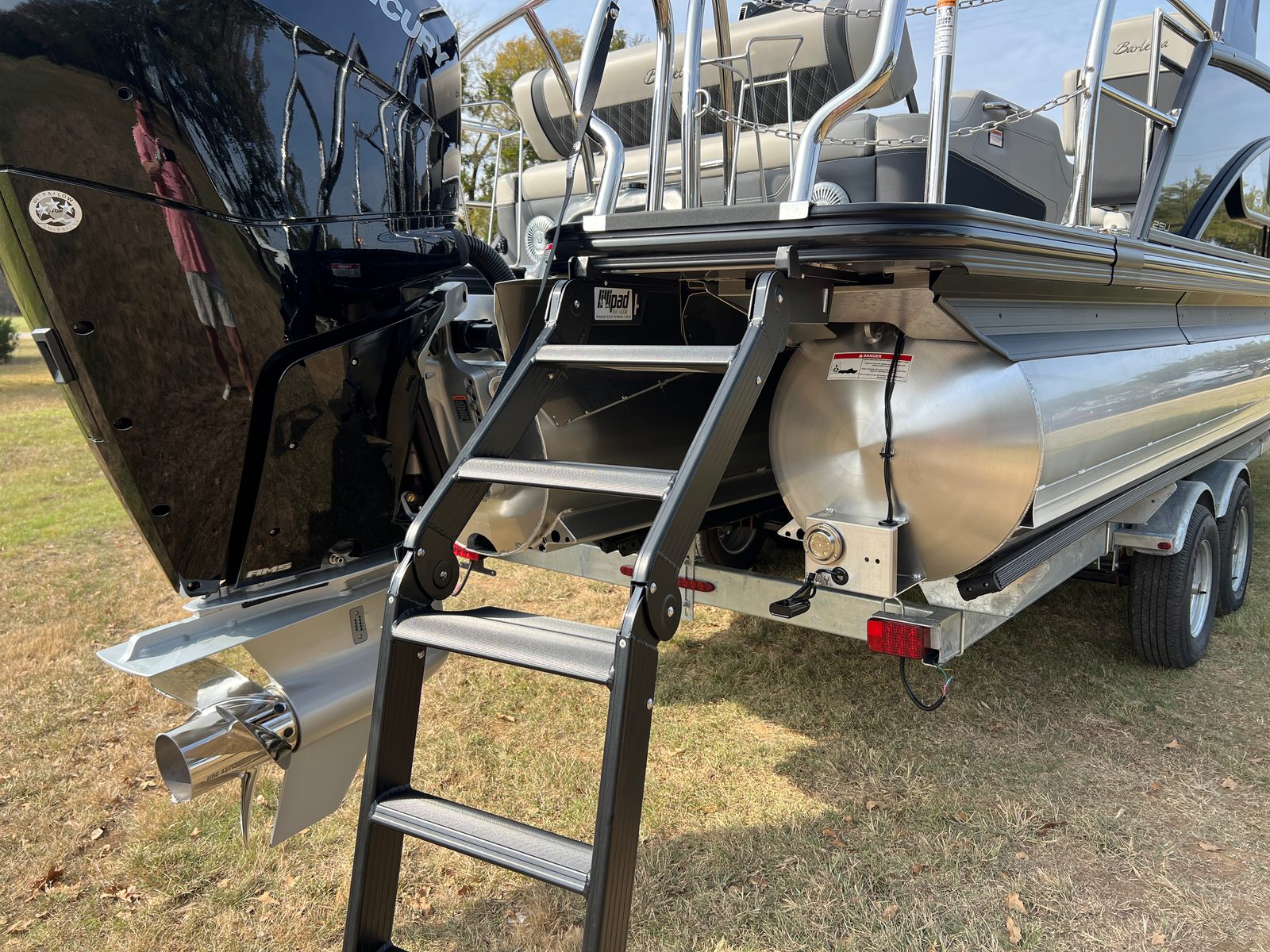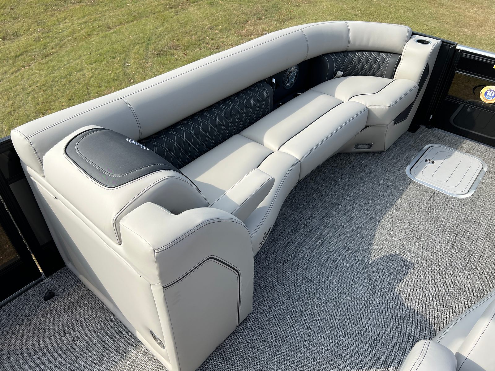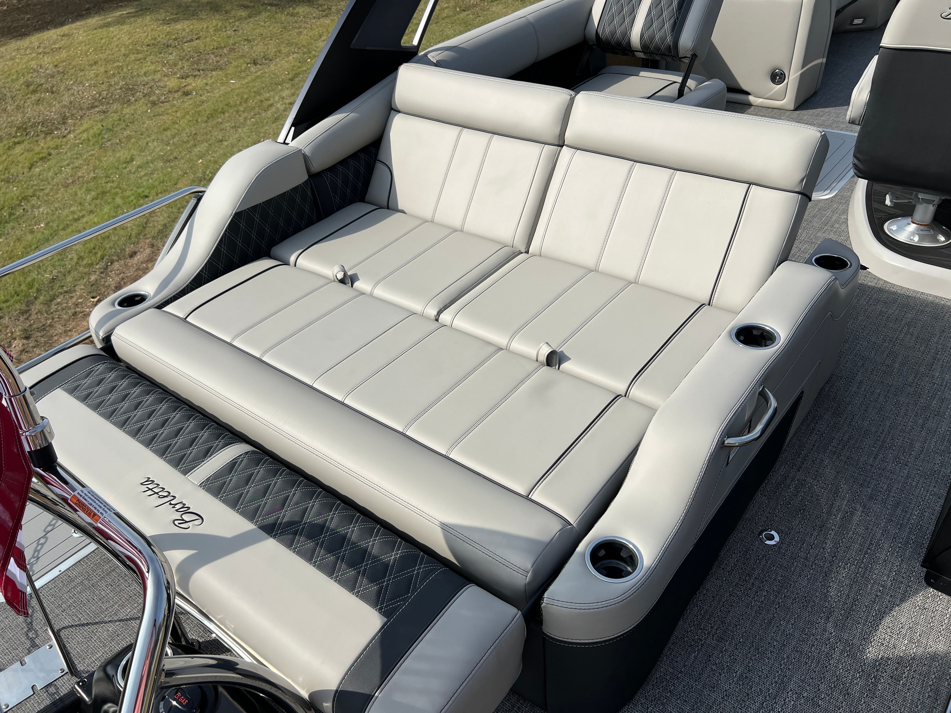 At the heart of the Barletta Lusso L25UA is the powerful Mercury (D) 400L V10 Verado engine, delivering an exhilarating 400 horsepower. This state-of-the-art engine is paired with Mercury Digital Pre-Rig for V10 and expertly rigged with a V10 prop, ensuring smooth, responsive handling and impressive acceleration. Whether you are cruising at a leisurely pace or powering across open water, the Lusso L25UA offers a dynamic and thrilling ride. The advanced engineering behind this pontoon boat guarantees both efficiency and reliability, making every outing a pleasure.