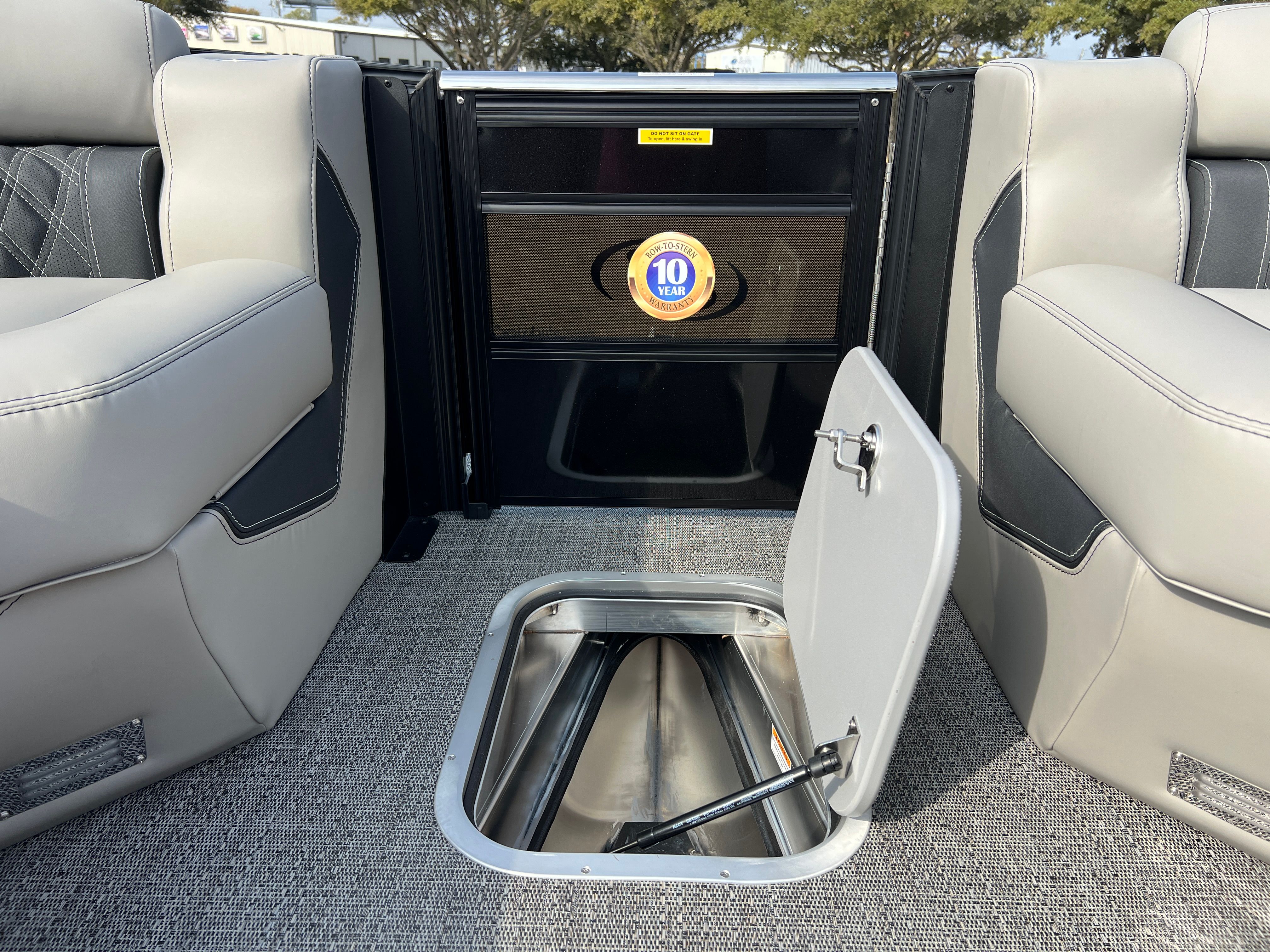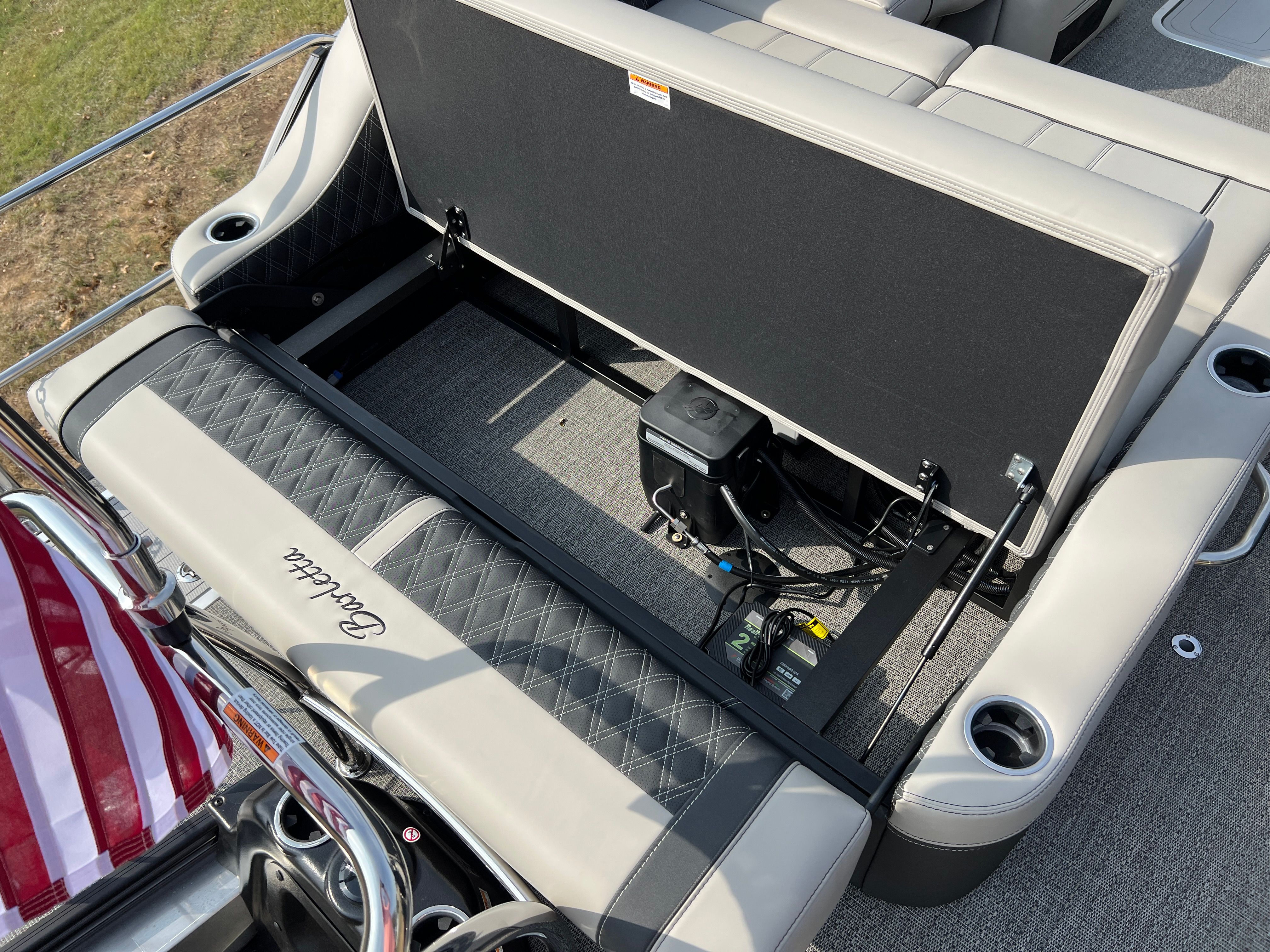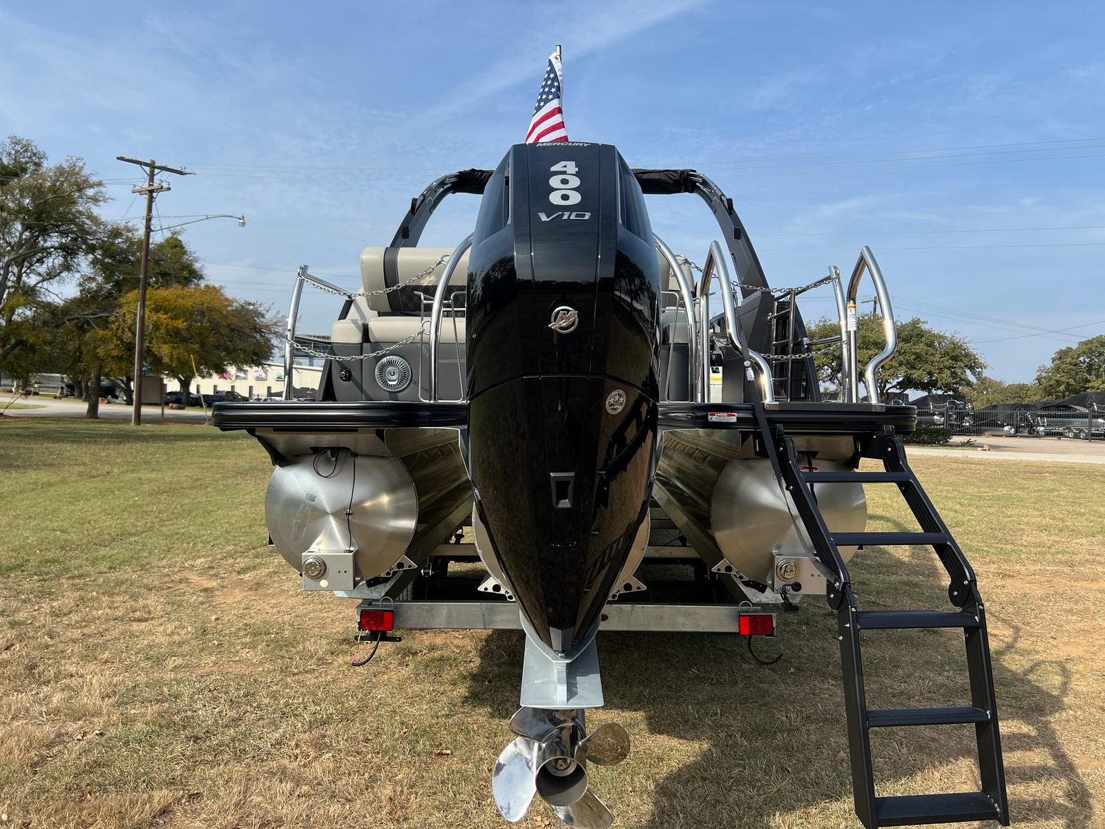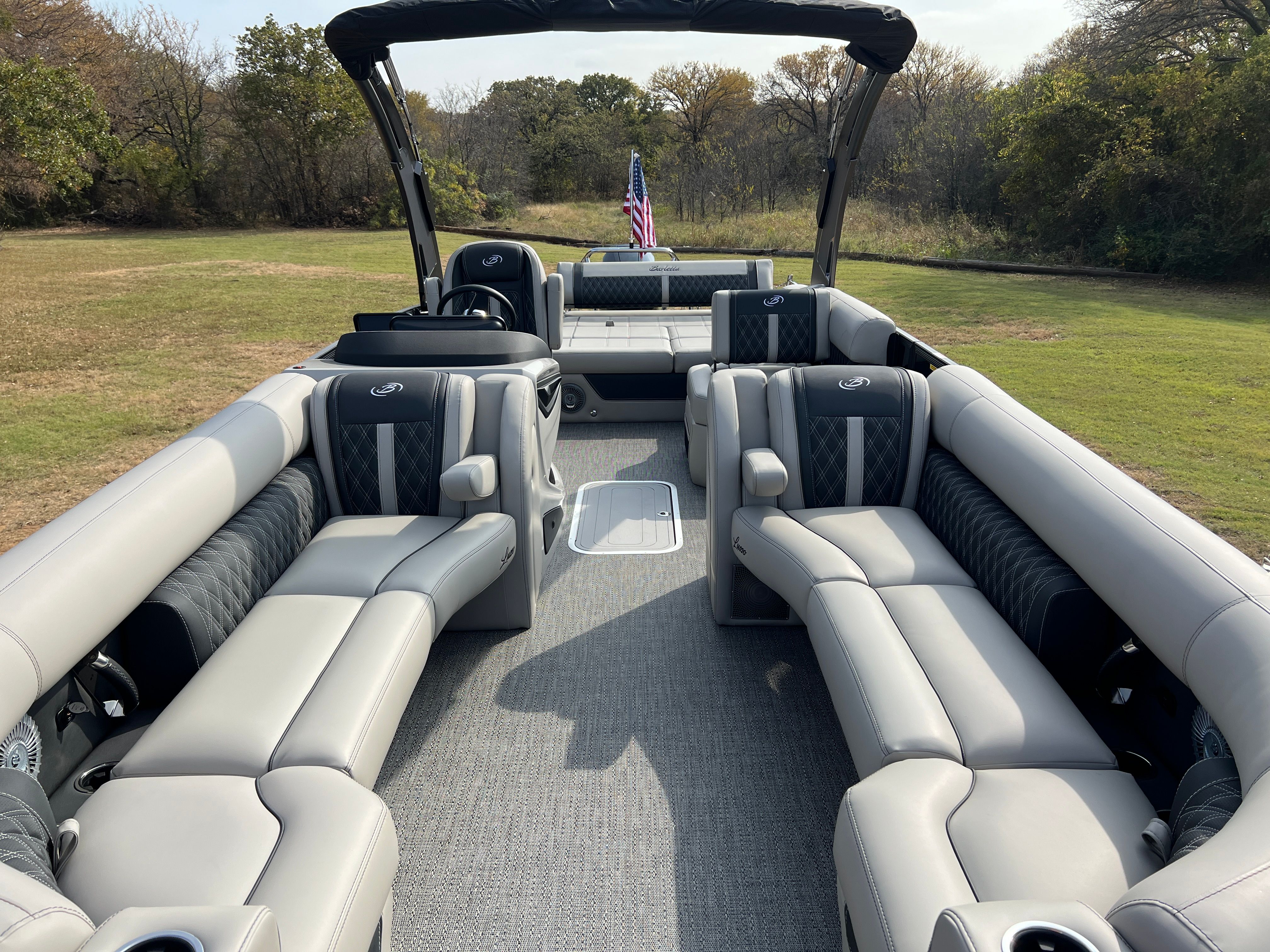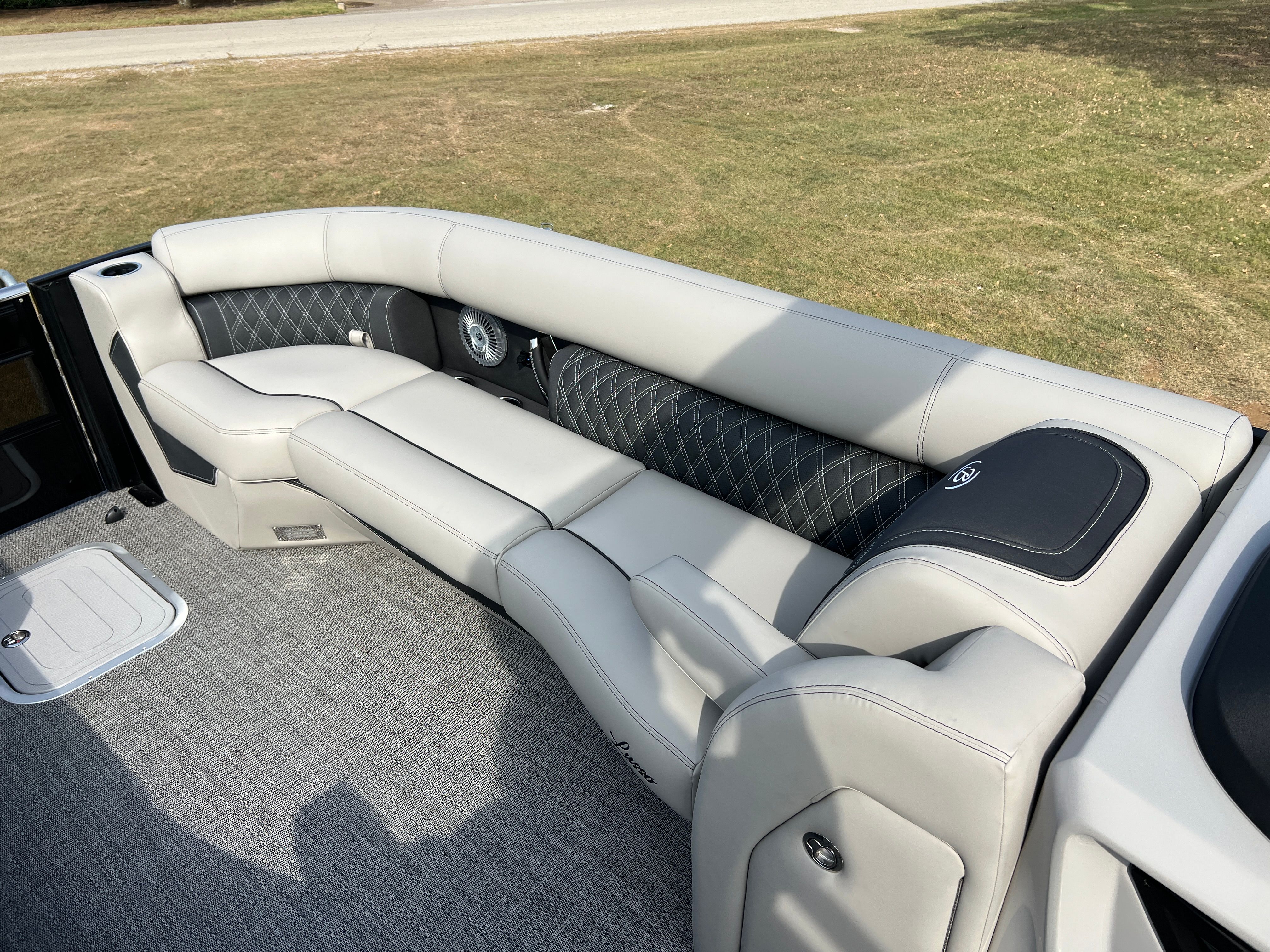 At the heart of the Barletta Lusso L25UA is the powerful Mercury (D) 400L V10 Verado engine, delivering an exhilarating 400 horsepower. This state-of-the-art engine is paired with Mercury Digital Pre-Rig for V10 and expertly rigged with a V10 prop, ensuring smooth, responsive handling and impressive acceleration. Whether you are cruising at a leisurely pace or powering across open water, the Lusso L25UA offers a dynamic and thrilling ride. The advanced engineering behind this pontoon boat guarantees both efficiency and reliability, making every outing a pleasure.