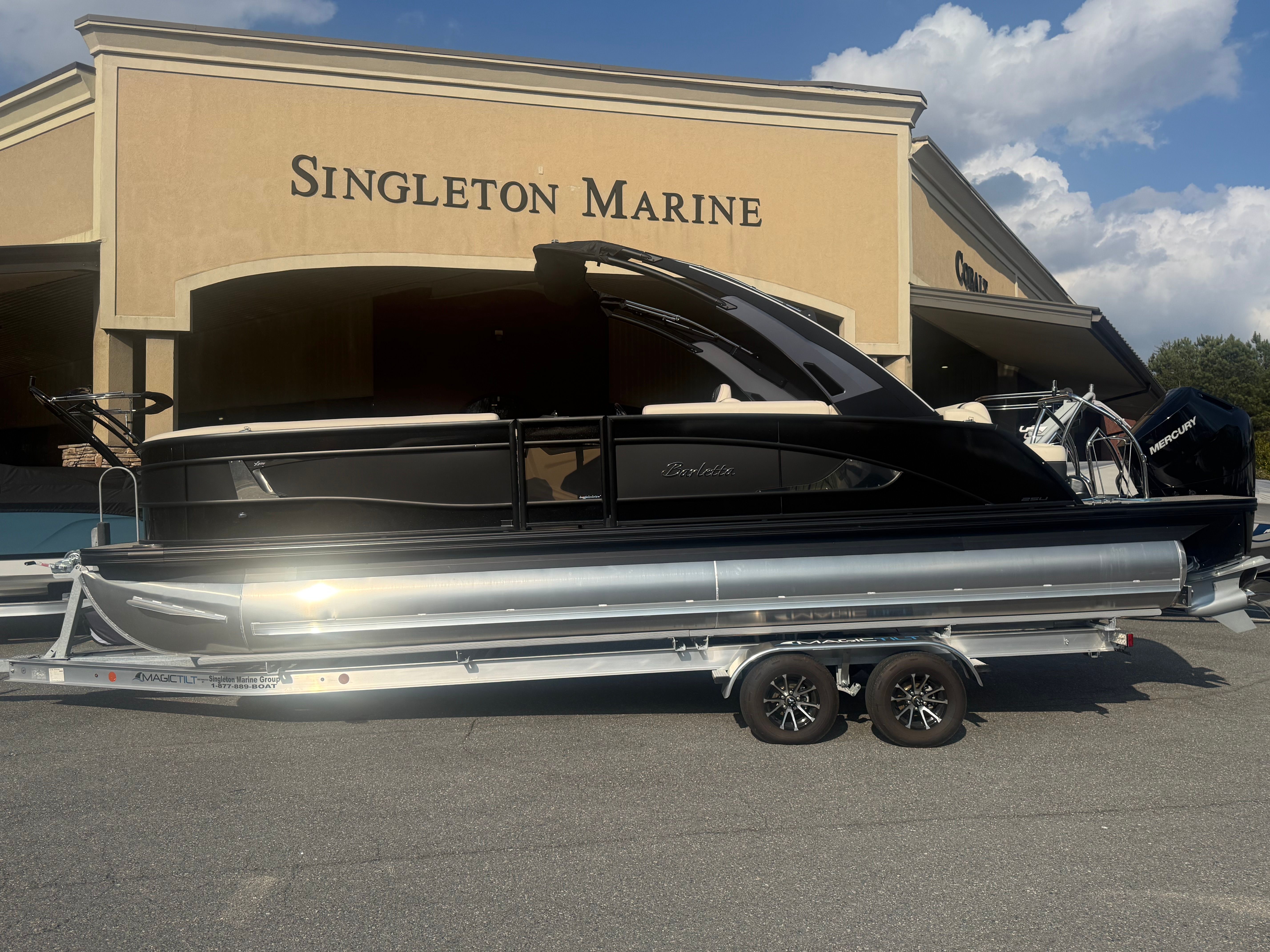 The 2026 Barletta Lusso L25UA stands out as a premier pontoon boat, offering a perfect balance of elegance and functionality. With its impressive 27.5-foot length, this Barletta boat for sale provides ample space for entertaining, relaxing, and making unforgettable memories with family and friends. The Lusso series is renowned for its attention to detail, and the L25UA model is no exception, featuring a sleek Black Diamond sweep color and a Matte Black accent that exudes modern sophistication. The Blackout Package Lusso railskin adds a bold, contemporary touch, ensuring this pontoon turns heads at every marina.