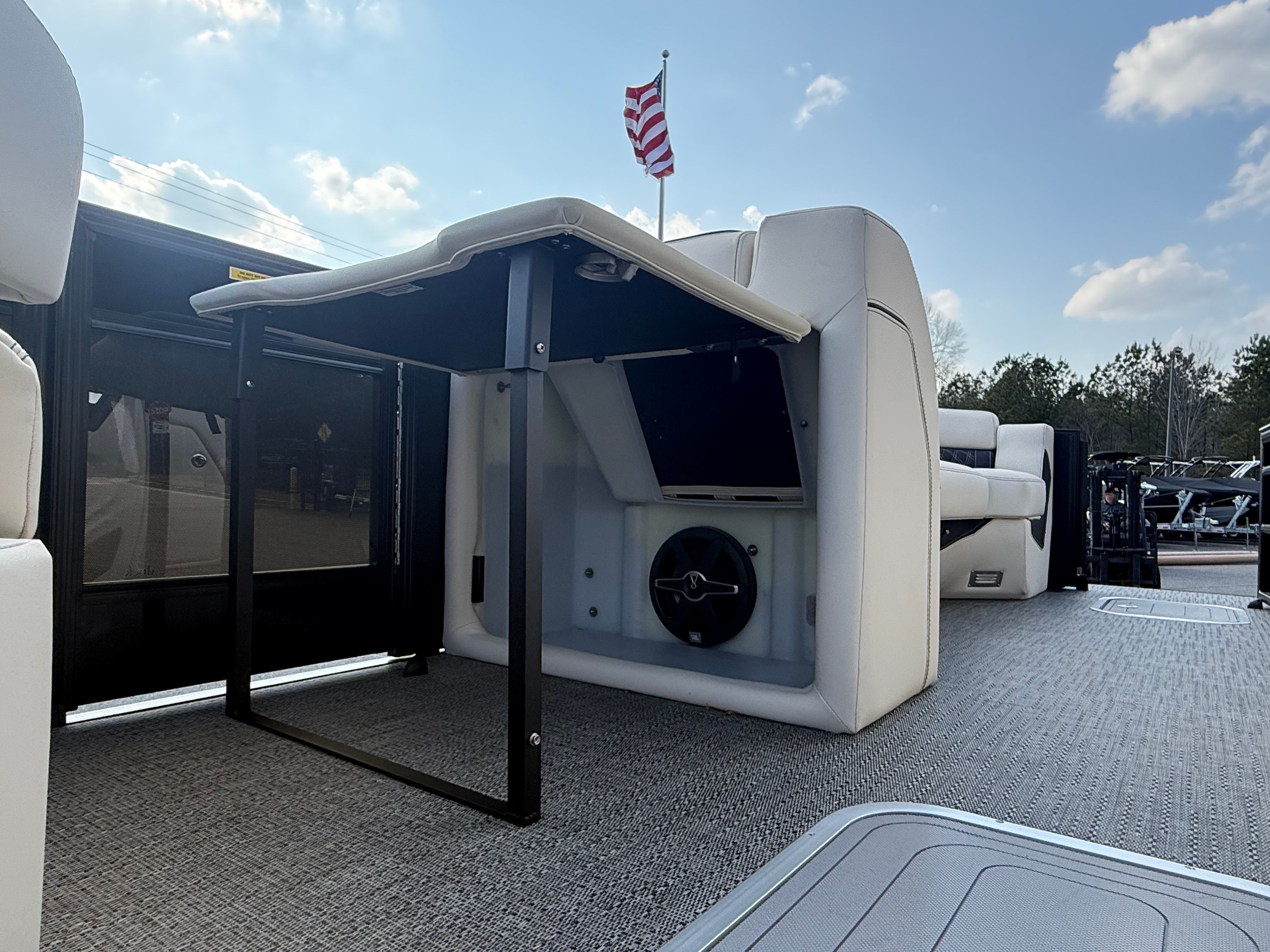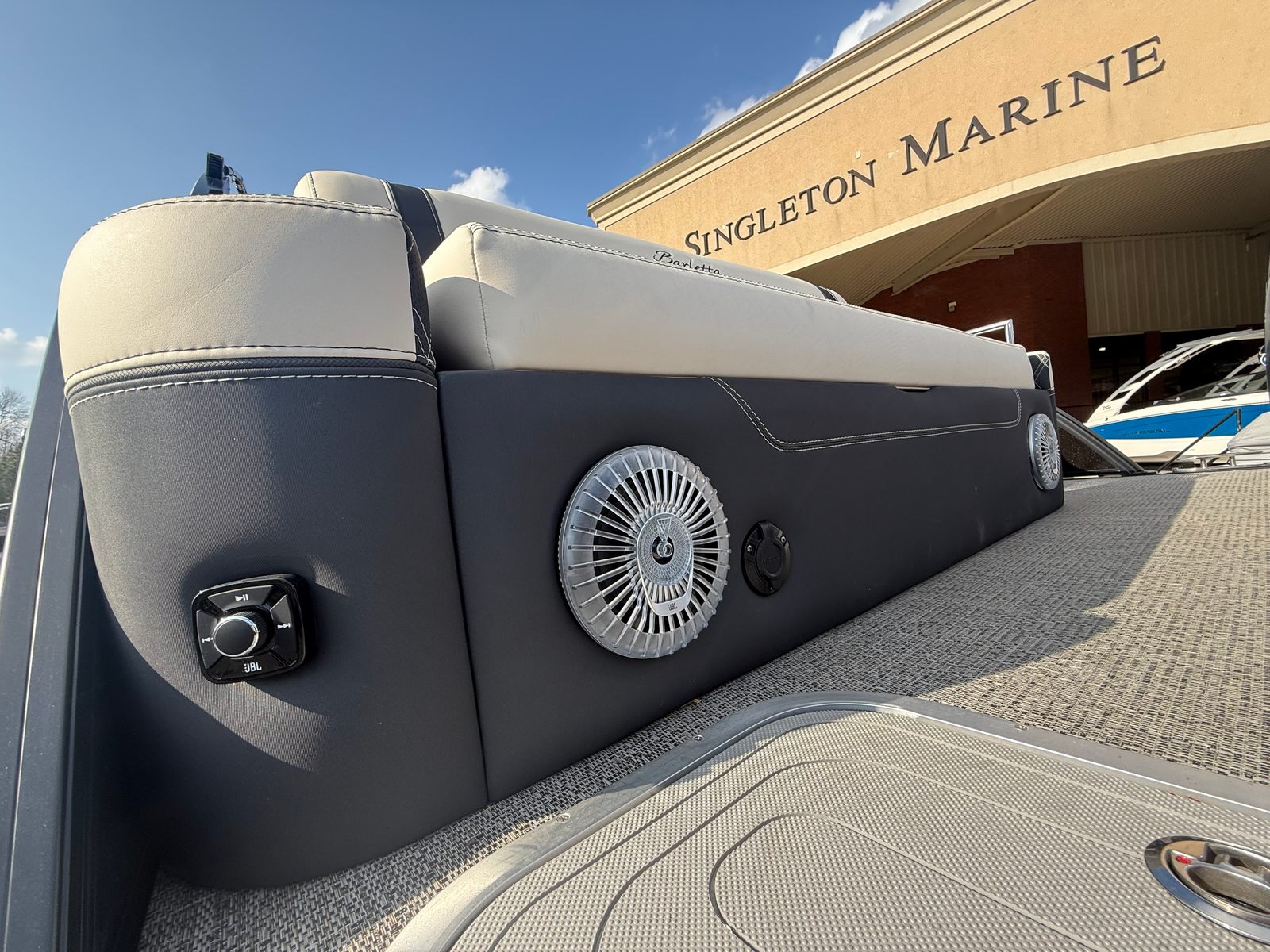 Power and precision are at the heart of the Barletta Lusso L25UA. Equipped with a single Mercury 350L V10 Verado engine, this pontoon delivers an exhilarating 350 horsepower, providing smooth acceleration and impressive top-end speed. The Mercury Digital Pre-Rig for V10 ensures seamless integration and optimal performance, while the expertly rigged engine with a V10 prop guarantees responsive handling and efficient cruising. Whether you are gliding across calm lakes or exploring expansive waterways, the Lusso L25UA offers a thrilling and reliable ride every time you hit the water.