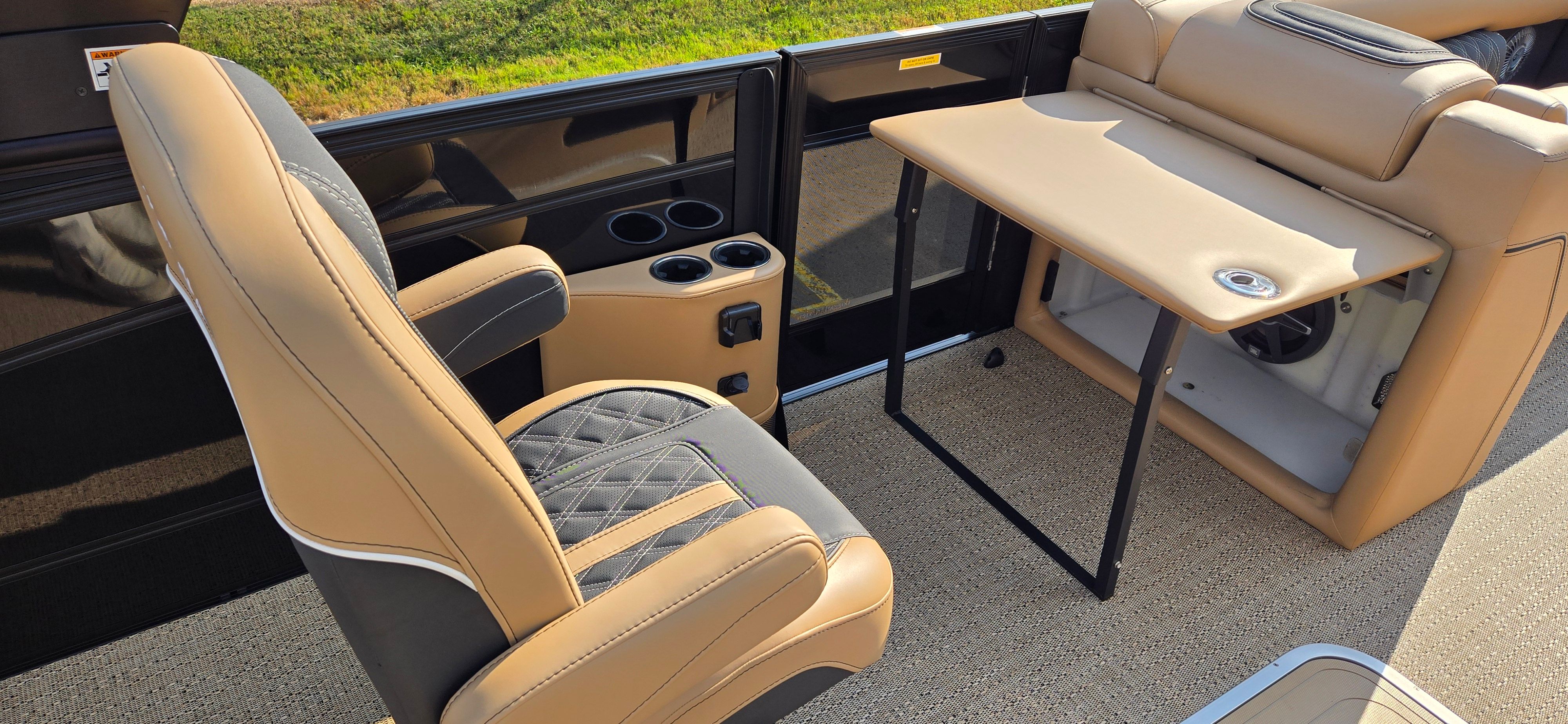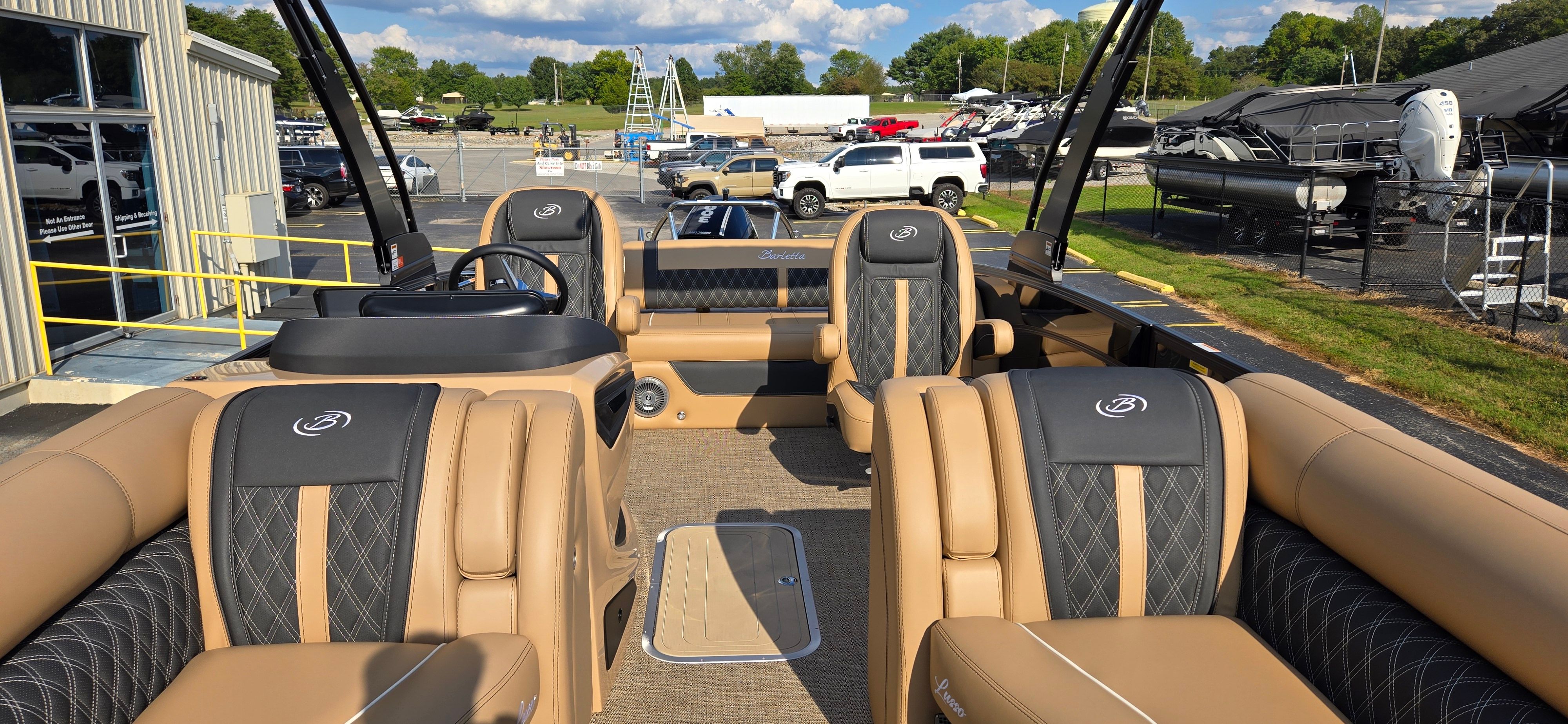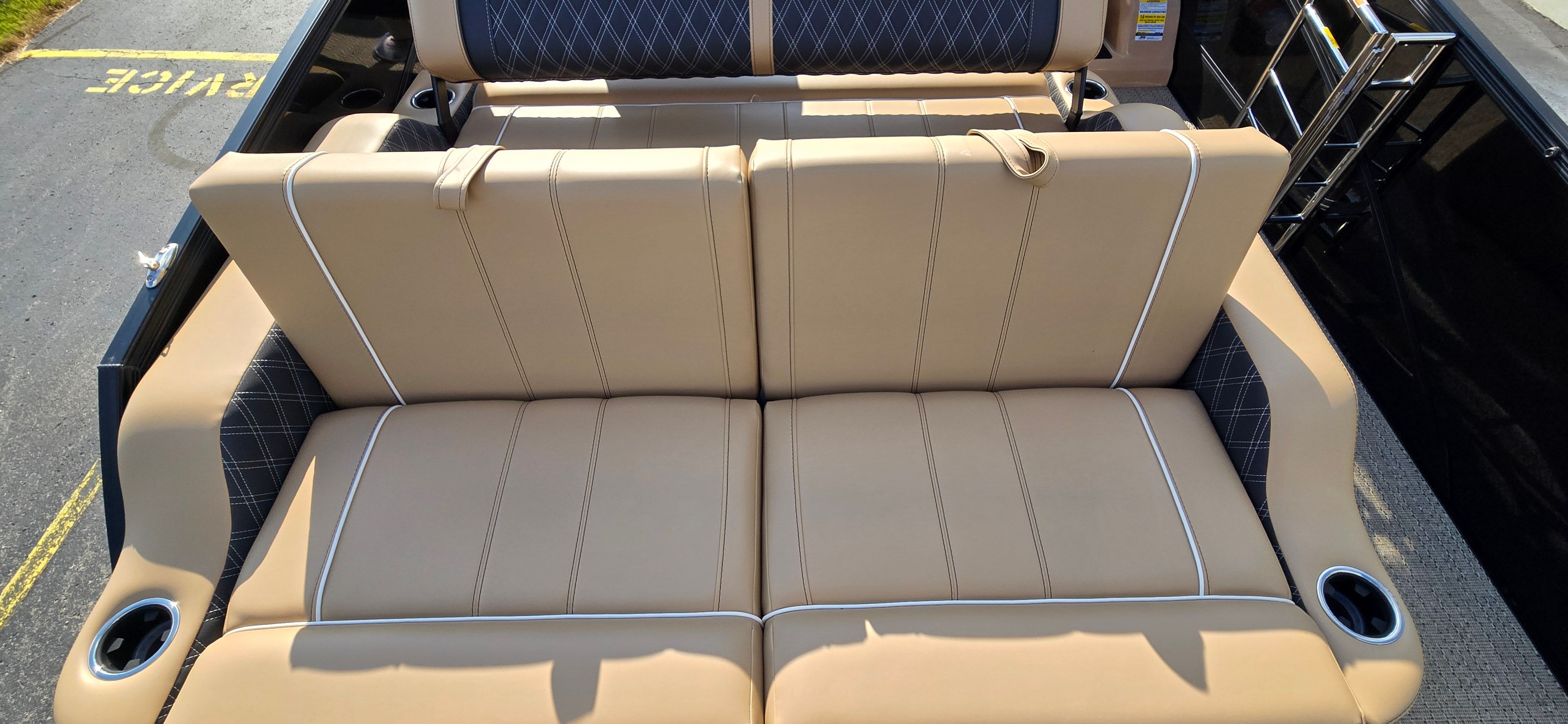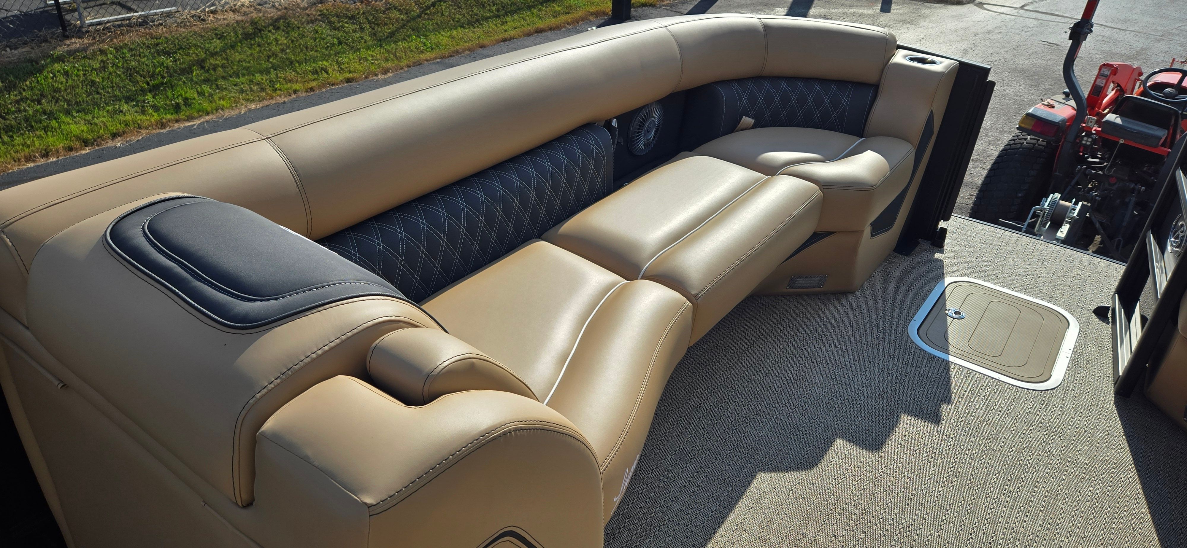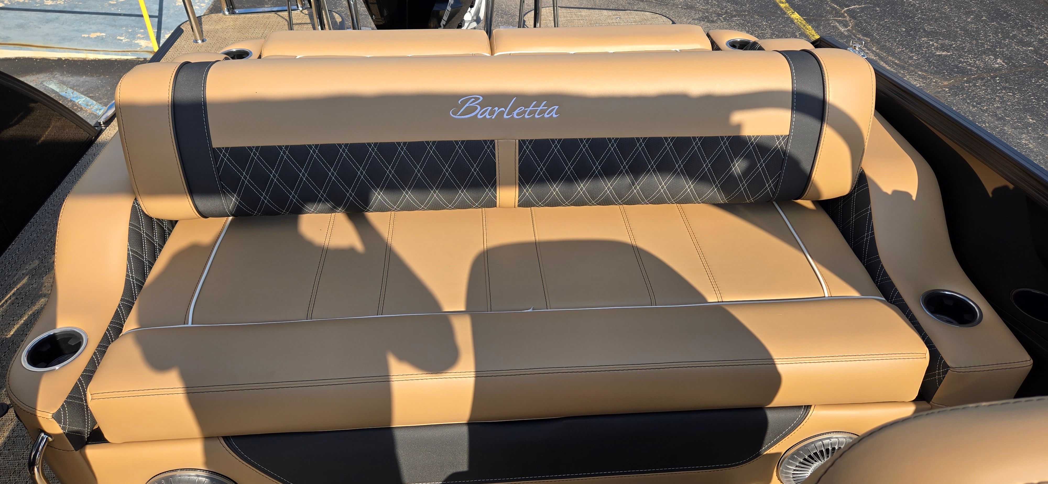 The 2026 Barletta Lusso L25UC is a showcase of premium features and sophisticated design. The exterior boasts a striking Black Diamond sweep color and accent color, complemented by the Blackout Package Lusso railskin, giving this pontoon a bold, modern look that turns heads at every marina. Step aboard and you’ll be greeted by Carmella Tan with Onyx furniture, offering plush comfort and a refined aesthetic. The Amore Tan flooring adds a touch of warmth and elegance, making every moment on deck feel like a luxury retreat.For those who love to entertain or relax in style, the Sport Bimini (installed in place of the standard bimini) provides ample shade and protection from the sun, allowing you to enjoy long days on the water in comfort. The white underdeck and underwater exterior lighting create a captivating ambiance for evening cruises, making every sunset and starlit night even more magical.