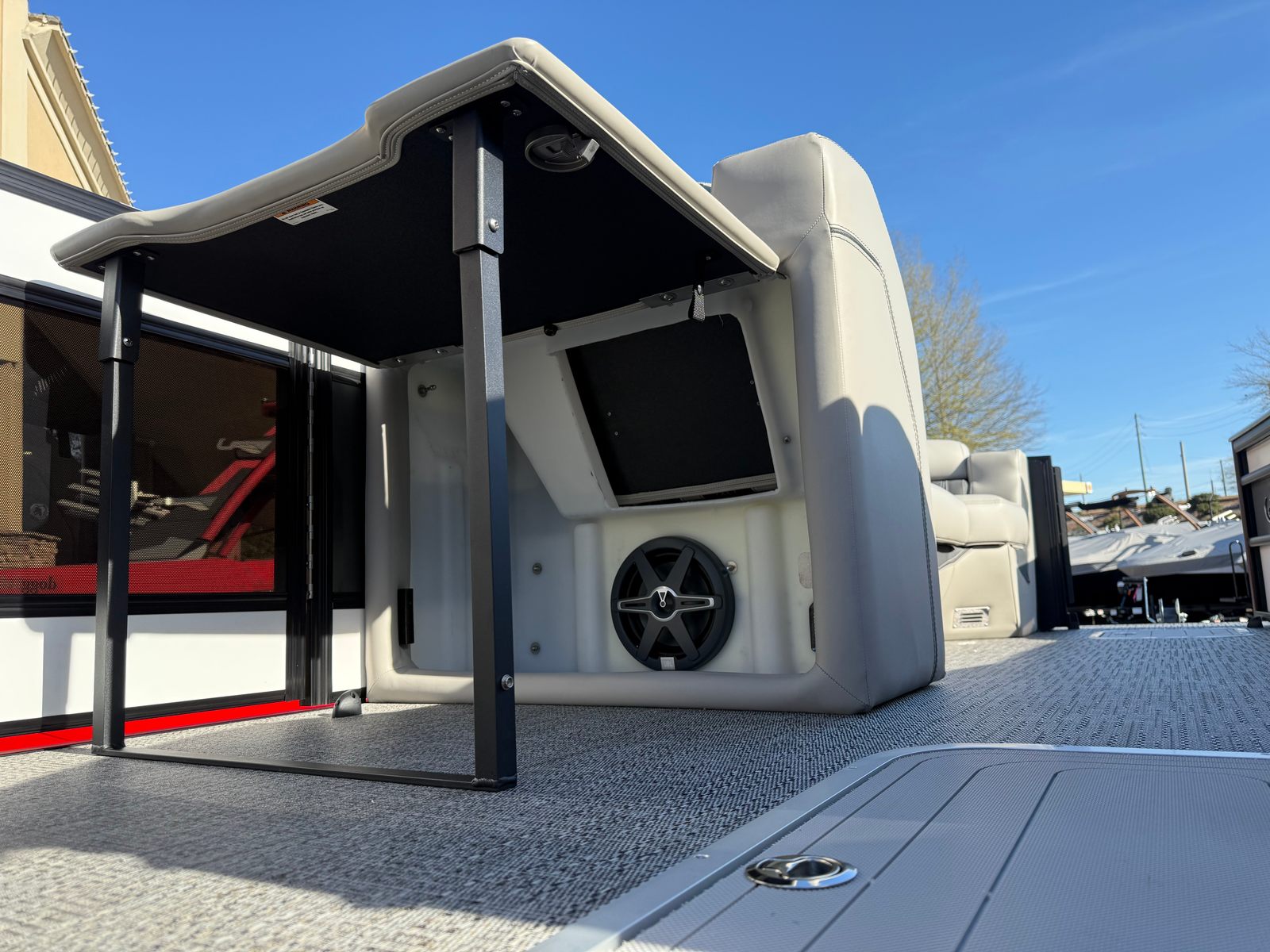 Powering the Barletta Lusso L25UC is a single Mercury 300L Verado V8 engine, delivering a robust 300 horsepower. This engine is renowned for its smooth, quiet operation and impressive acceleration, ensuring you have all the power you need for cruising, watersports, or simply enjoying a fast ride across the water. The Mercury Digital DTS Pre-Rig for VERADO engines with Vessel Link offers precise control and seamless integration, making driving this pontoon boat a pleasure. Hydraulic and power assist steering further enhance maneuverability, allowing you to navigate tight marinas or busy waterways with ease. With digital gauges and rigging that includes a stainless steel prop, you can trust in reliable performance and accurate monitoring of your boat’s vital systems.