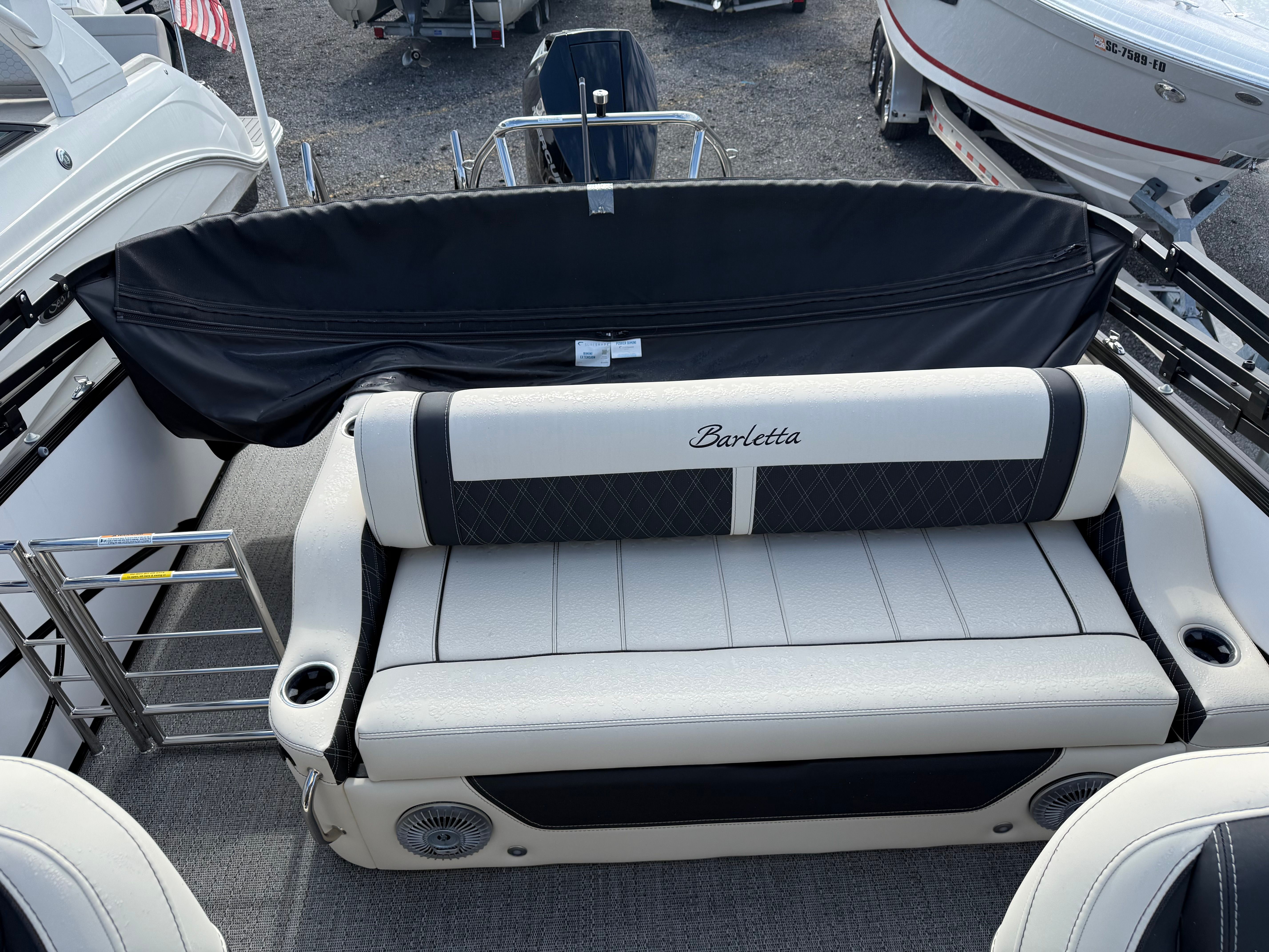 Owning the Barletta Lusso L25UC means embracing a lifestyle of fun, relaxation, and social connection. The spacious deck layout offers ample room for family and friends, making it perfect for gatherings, celebrations, or quiet moments enjoying the scenery. The comfortable seating and elegant finishes create an inviting environment where you can unwind and make lasting memories. The powerful Mercury 350L V10 Verado engine ensures you have the speed and agility to explore new destinations, while the advanced rigging and digital pre-rig make operation effortless and enjoyable.The Lusso L25UC’s thoughtful design also enhances comfort and convenience. The plush furniture provides support for long days on the water, while the durable flooring is easy to clean and maintain. The exterior lighting adds a touch of magic to evening outings, setting the perfect mood for relaxation or entertainment. With its combination of style, performance, and innovative features, this Barletta boat for sale is a true pleasure to own.