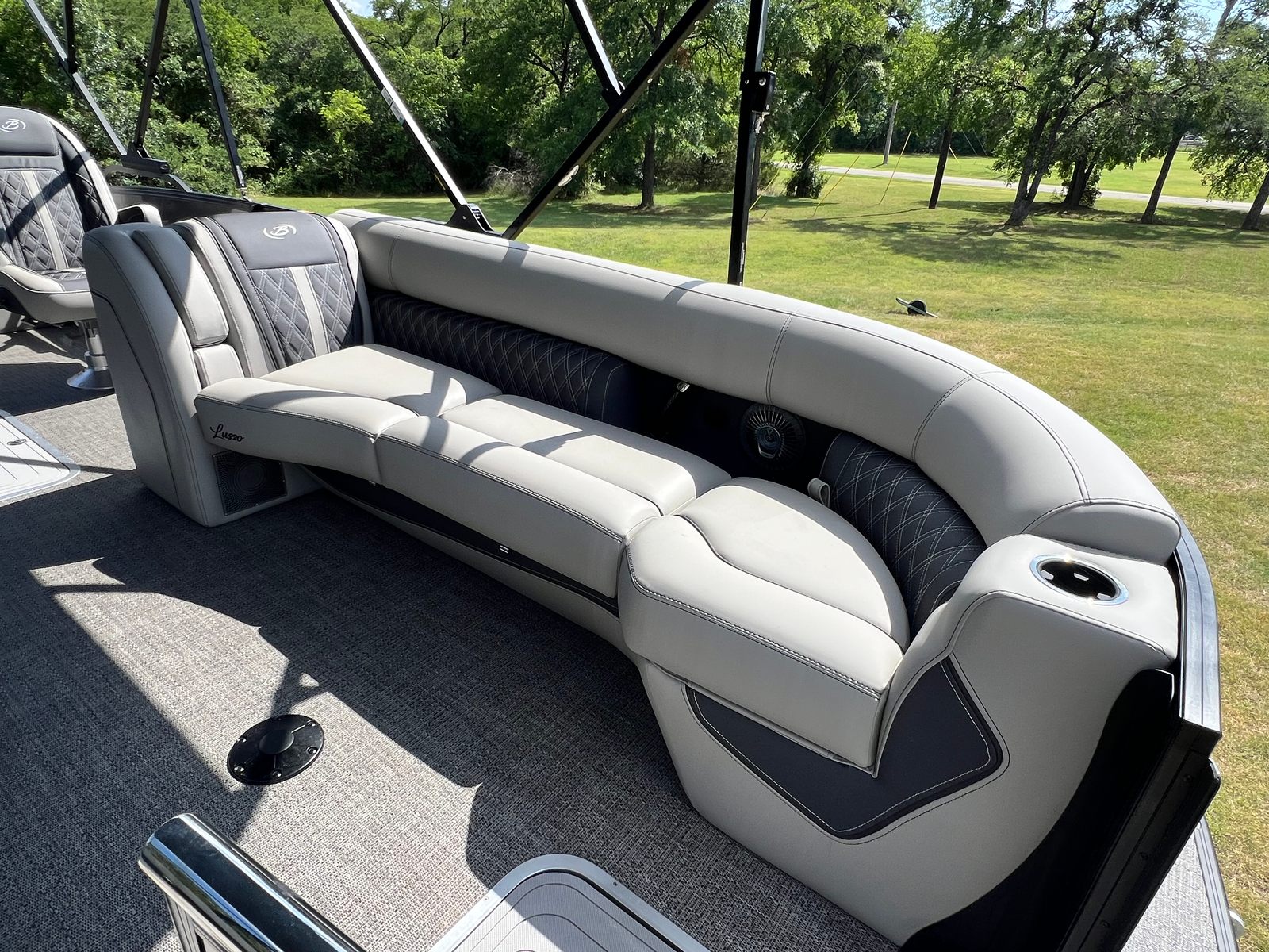 The 2025 Barletta Lusso L25UC shines in a variety of settings, making it the ideal choice for families, friends, and boating enthusiasts alike. Picture yourself embarking on a leisurely cruise with loved ones, the double bimini providing shade as you glide across the water. Host a lakeside picnic with the convenient table and cupholders, or enjoy a day of swimming and sunbathing on the spacious deck.For those who love water sports, the powerful engine delivers the speed and agility needed for tubing, wakeboarding, or simply zipping across the lake. The Lusso L25UC is equally at home during quiet mornings spent fishing or relaxing with a good book, offering a peaceful retreat from the hustle and bustle of everyday life. No matter how you choose to spend your time on the water, this pontoon boat is designed to elevate every experience.