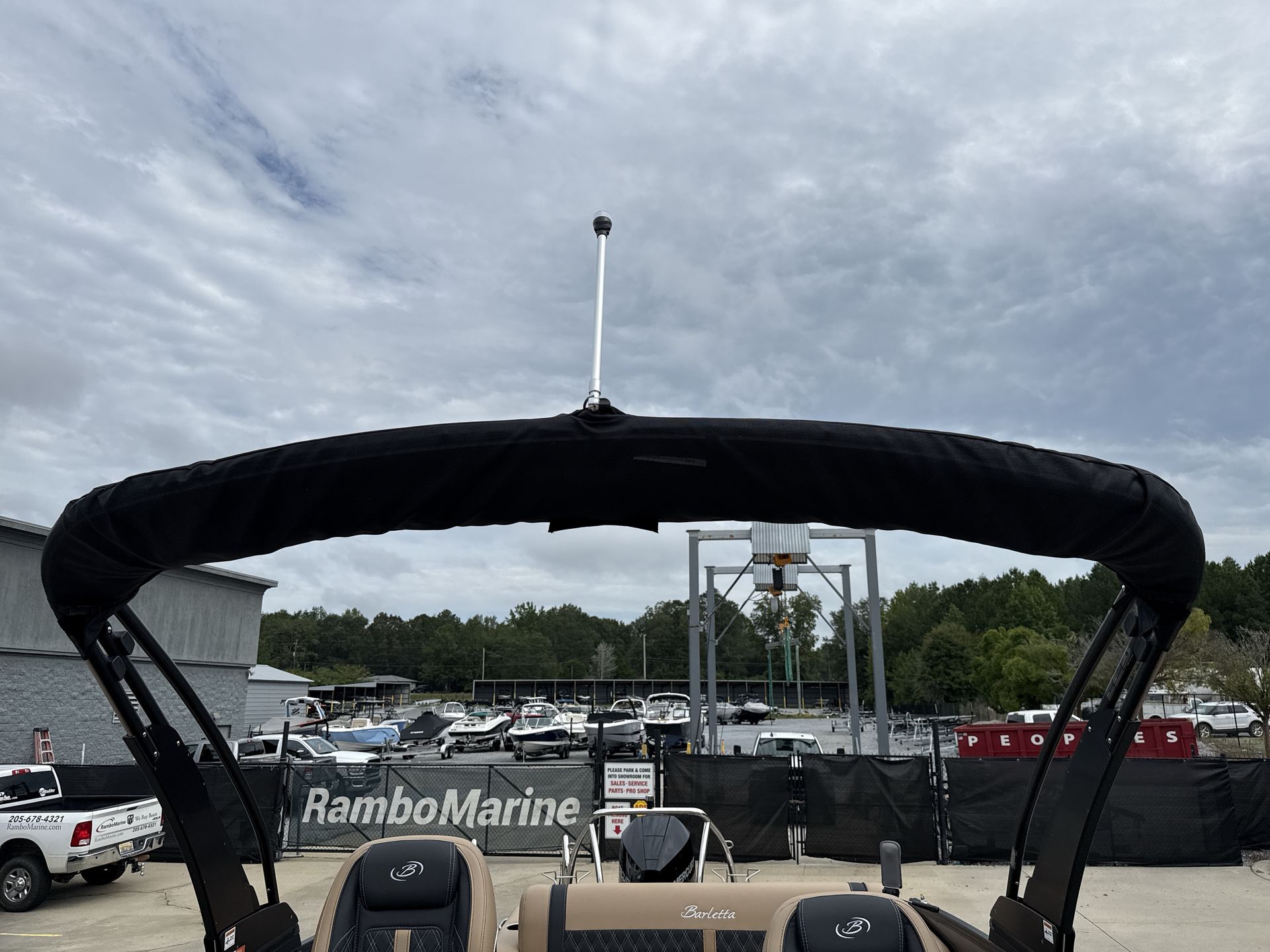 The Barletta Lusso L25UC is packed with premium features that set it apart from other pontoon boats for sale. The Blackout Package Lusso railskin not only elevates the boat’s visual appeal but also adds a layer of durability and protection. The Carmella Tan with Onyx furniture provides plush, ergonomic seating for all passengers, while the Amore Tan flooring is both stylish and easy to maintain. The Sport Bimini, installed in place of the standard bimini, offers superior sun protection and a sporty look, making it ideal for long days on the water. The Metal Jacket Protectant ensures your pontoon maintains its pristine appearance, guarding against the elements and preserving its value for years to come. Digital gauges keep you informed with real-time data, and the rigged engine with a stainless steel prop maximizes performance and efficiency.