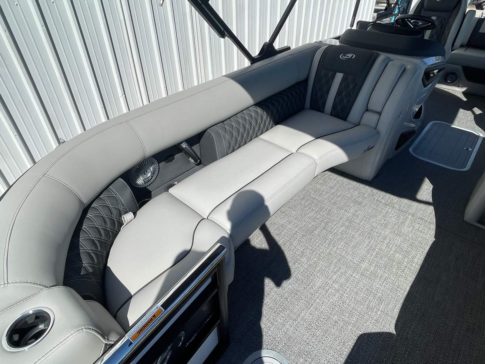 Owning the Barletta Lusso L25UC means embracing a world of fun, relaxation, and social connection. This pontoon boat for sale is perfect for hosting gatherings, enjoying sunset cruises, or simply unwinding in comfort. The spacious layout allows for easy movement and plenty of seating, making it ideal for family outings or entertaining friends. The luxurious furniture and stylish finishes create an inviting atmosphere, while the powerful engine ensures you can explore new destinations with ease.The Lusso L25UC’s advanced features, such as the double bimini and Metal Jacket Protectant, provide added convenience and peace of mind, allowing you to focus on making memories. Whether you’re soaking up the sun, enjoying a picnic on the water, or dancing to your favorite tunes, this Barletta boat for sale is your ticket to endless enjoyment.