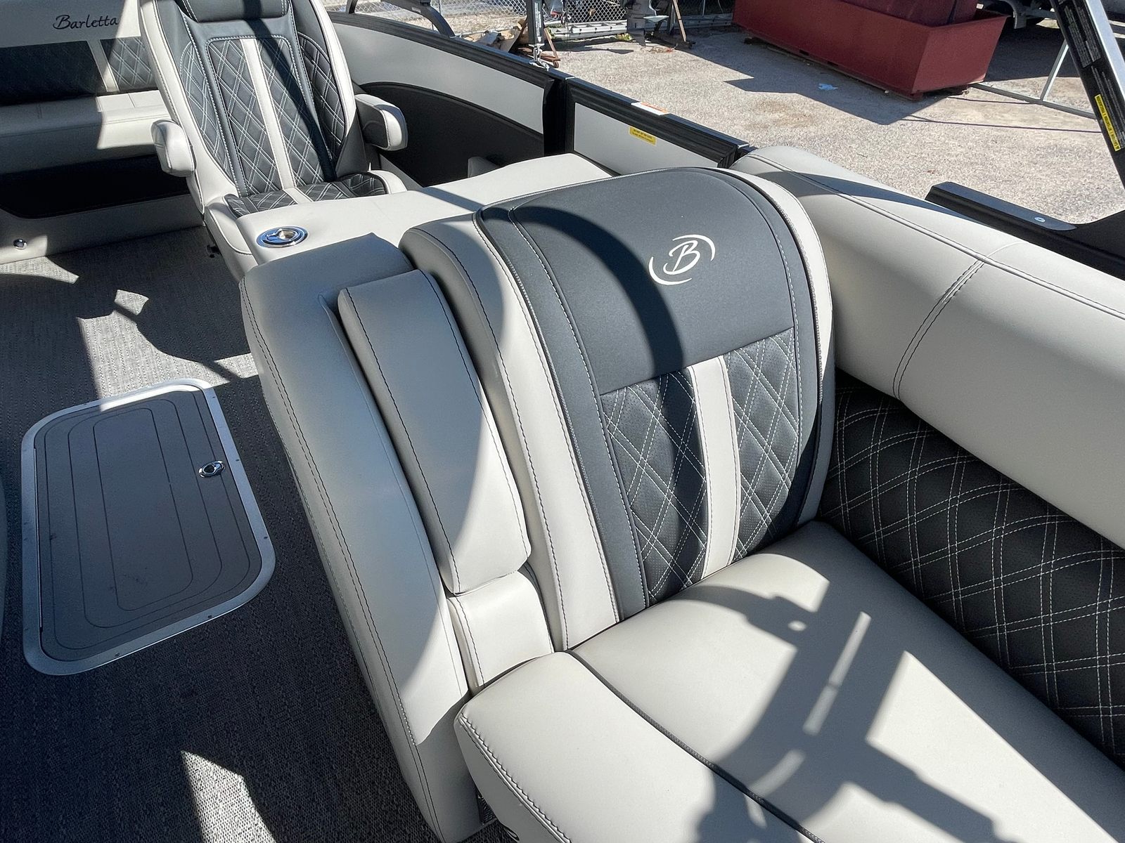 Beyond its recreational appeal, the Barletta Lusso L25UC offers practical benefits that make ownership a breeze. The spacious deck provides ample storage for gear, water toys, and essentials, keeping everything organized and within reach. The intuitive layout makes docking and maneuvering straightforward, even for those new to boating. The Mercury V10 engine is engineered for fuel efficiency, helping you maximize your time on the water without frequent refueling stops.The durable flooring and protective finishes ensure your pontoon remains in top condition, reducing maintenance and preserving its value over time. Whether you’re planning a weekend getaway or a quick afternoon escape, the Lusso L25UC is designed to make every outing effortless and enjoyable.