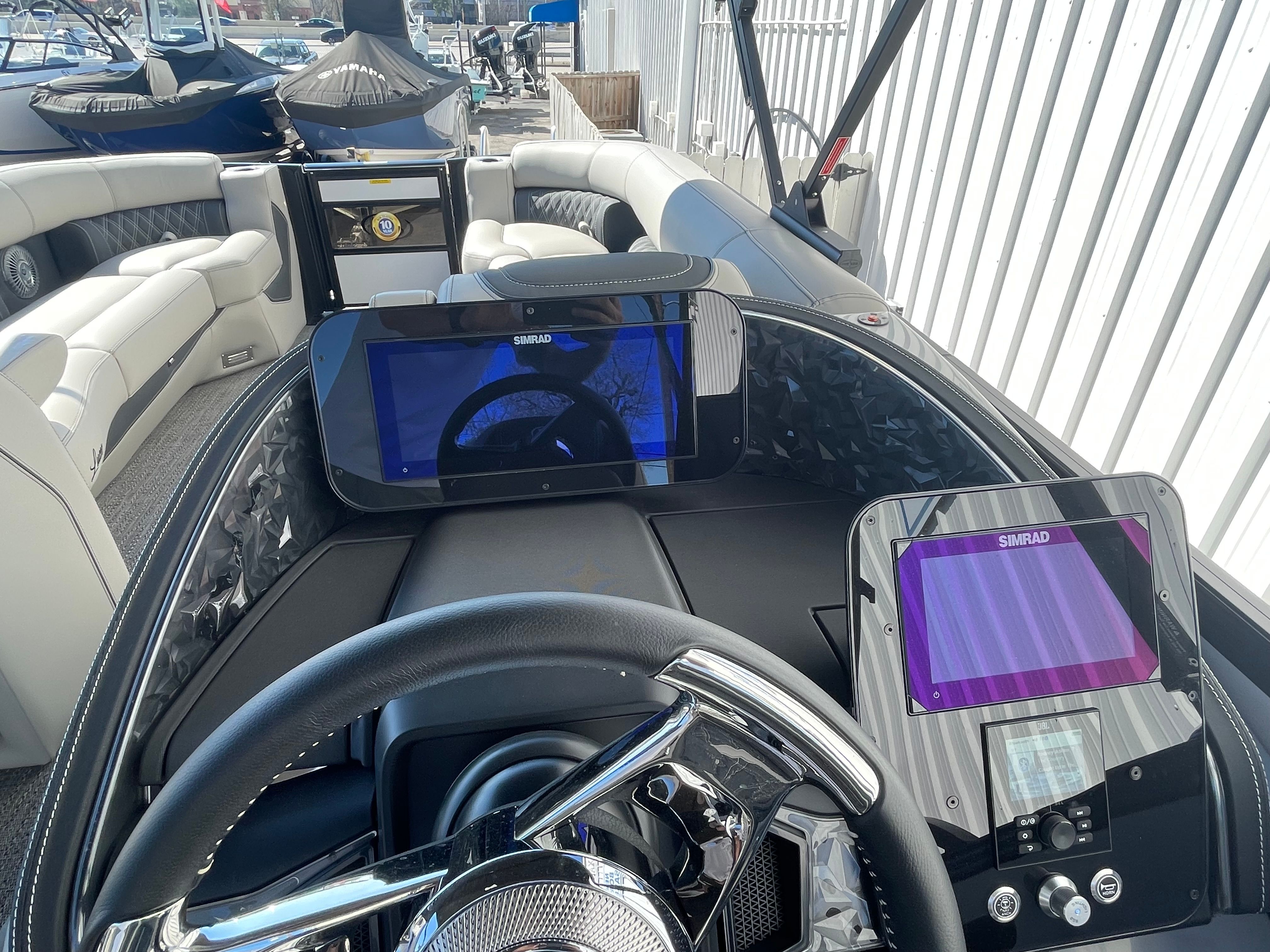 Step aboard the Barletta Lusso L25UC and you’ll immediately notice its striking aesthetics and thoughtful features. The sweep color in Winter White and accent color in Matte Black create a sophisticated, modern look, complemented by the Blackout Package Lusso for added visual impact. The furniture is finished in Marquesan Gray with Onyx, offering both comfort and elegance, while the Amore Gray flooring provides a durable and stylish foundation for every activity.Enjoy shade and protection from the elements with the double bimini, including an additional power bimini for effortless adjustment. The Metal Jacket Protectant ensures your pontoon boat stays looking its best, safeguarding against the rigors of sun, water, and weather. Every detail of the Lusso L25UC is designed to enhance your time on the water, from the premium materials to the innovative features that elevate your boating lifestyle.