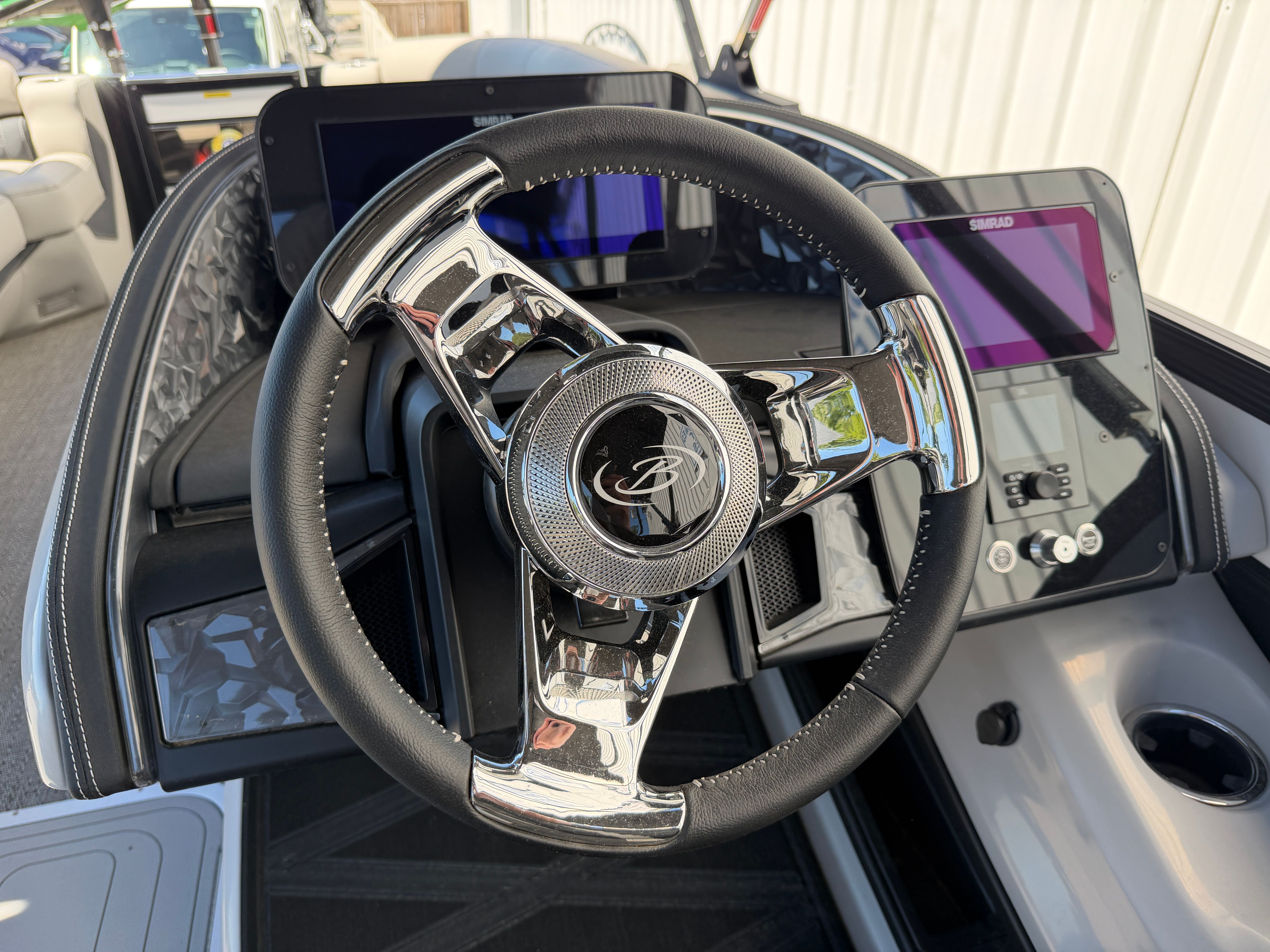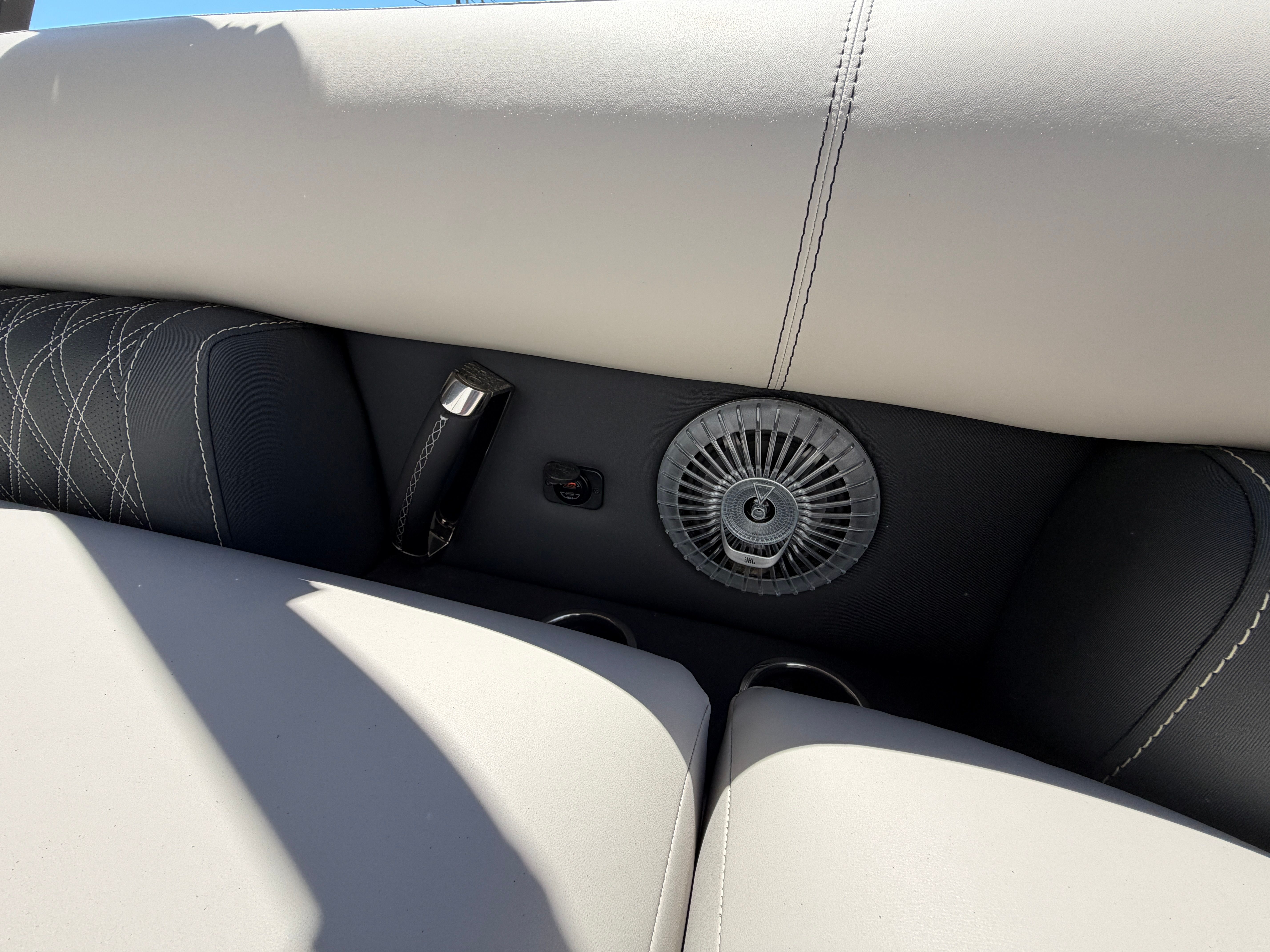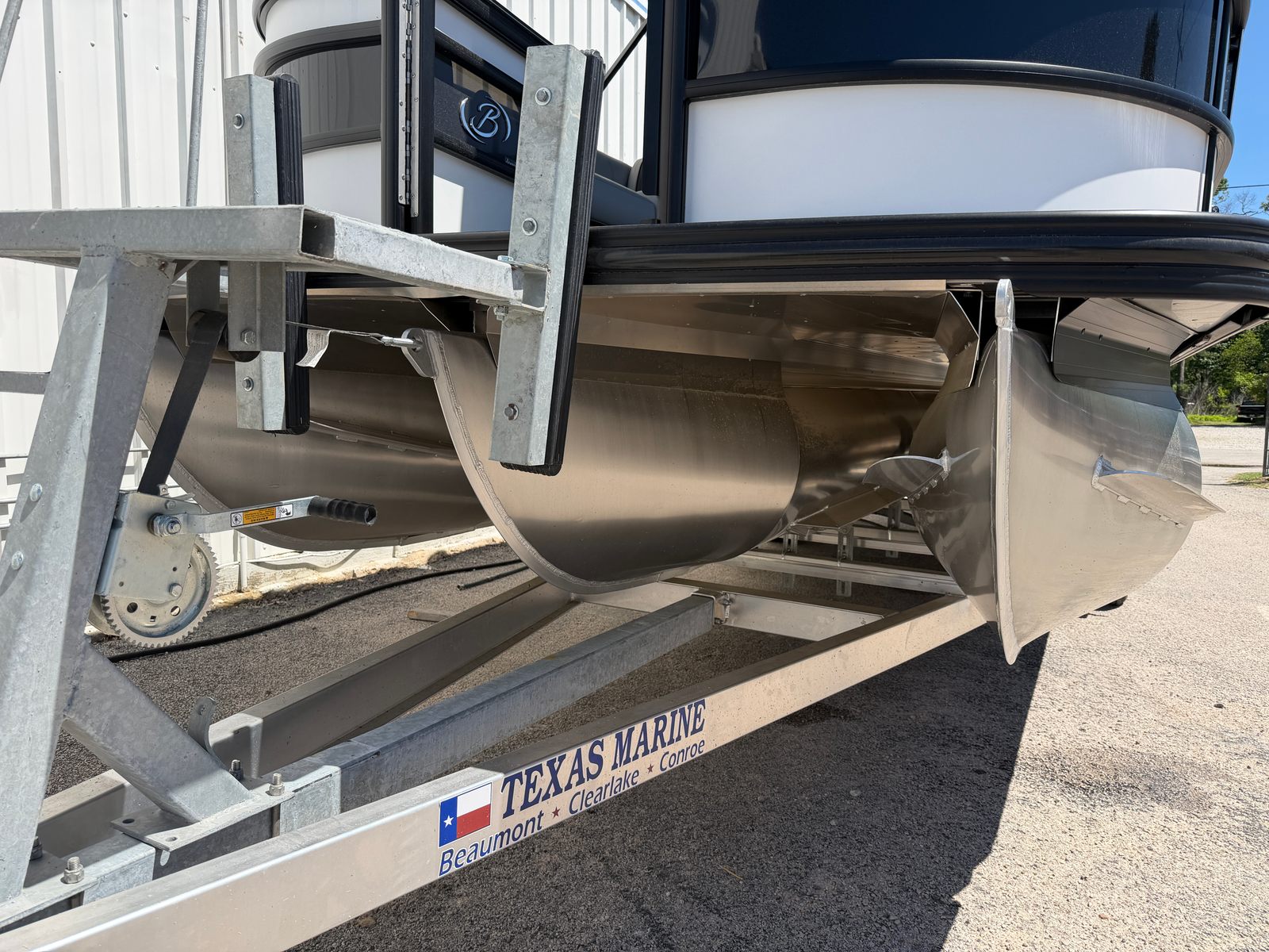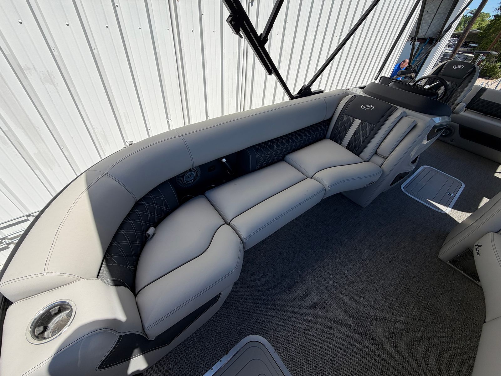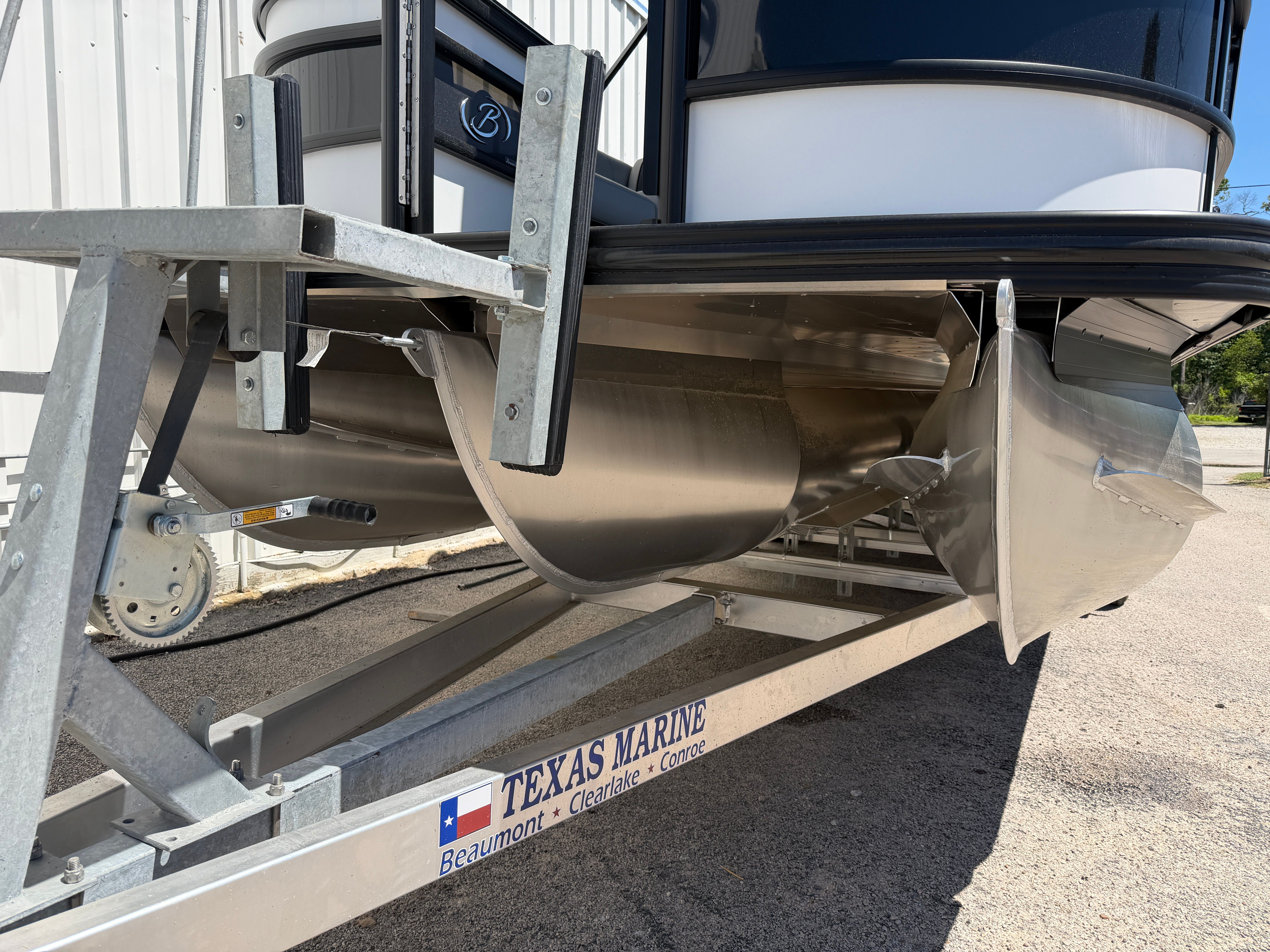 Powering the Barletta Lusso L25UC is a single Mercury (D) 300L Verado V8 engine, delivering a robust 300 horsepower. This engine is renowned for its smooth acceleration, quiet operation, and impressive fuel efficiency, making it ideal for both leisurely cruises and spirited rides across the lake. The Mercury Digital DTS Pre-Rig for VERADO engines with Vessel Link ensures seamless integration and precise control, while the hydraulic and power assist steering provides effortless maneuverability. Whether you’re navigating tight marinas or open waters, the Lusso L25UC offers a responsive and enjoyable driving experience that sets it apart from other pontoon boats for sale.