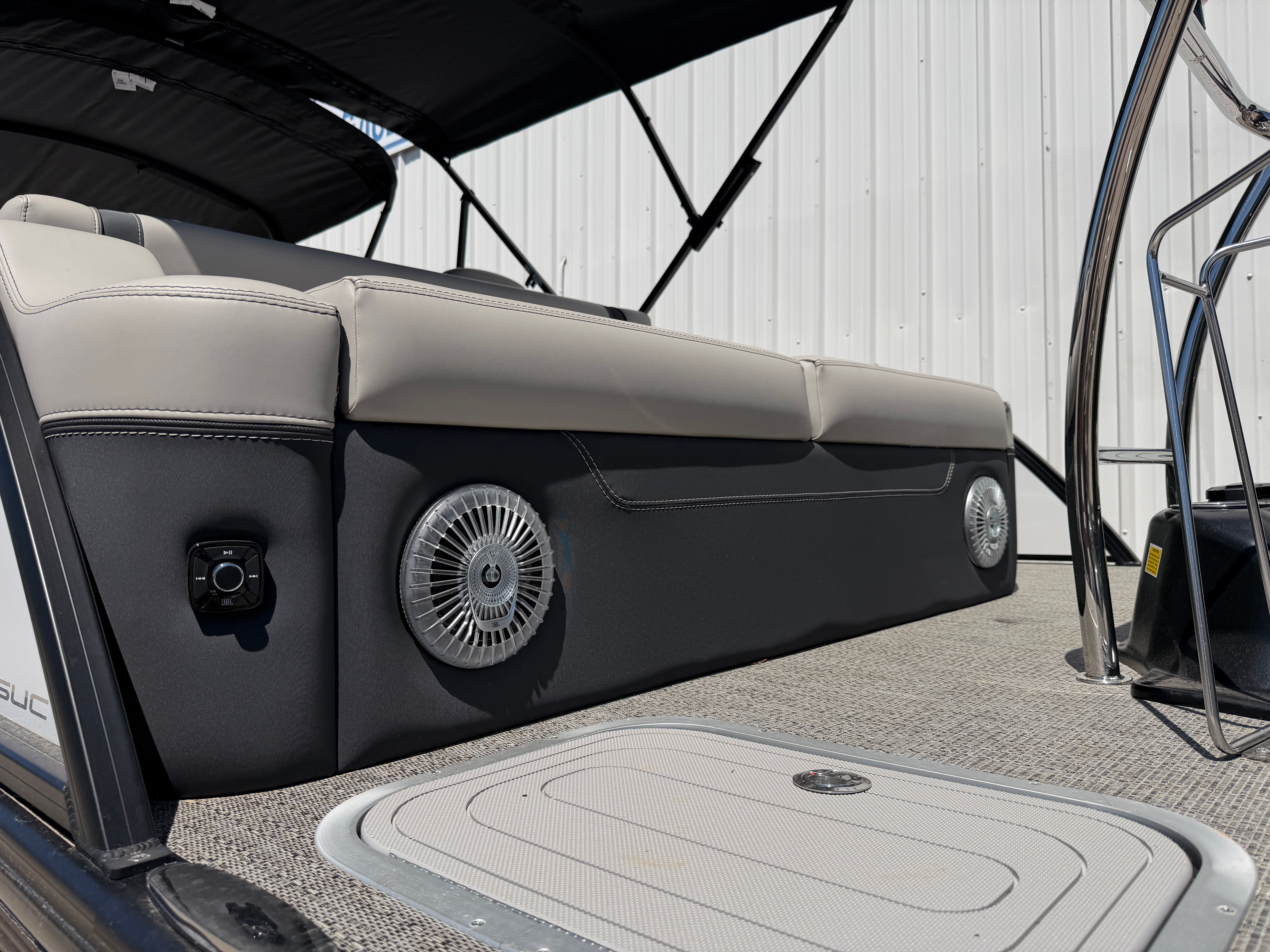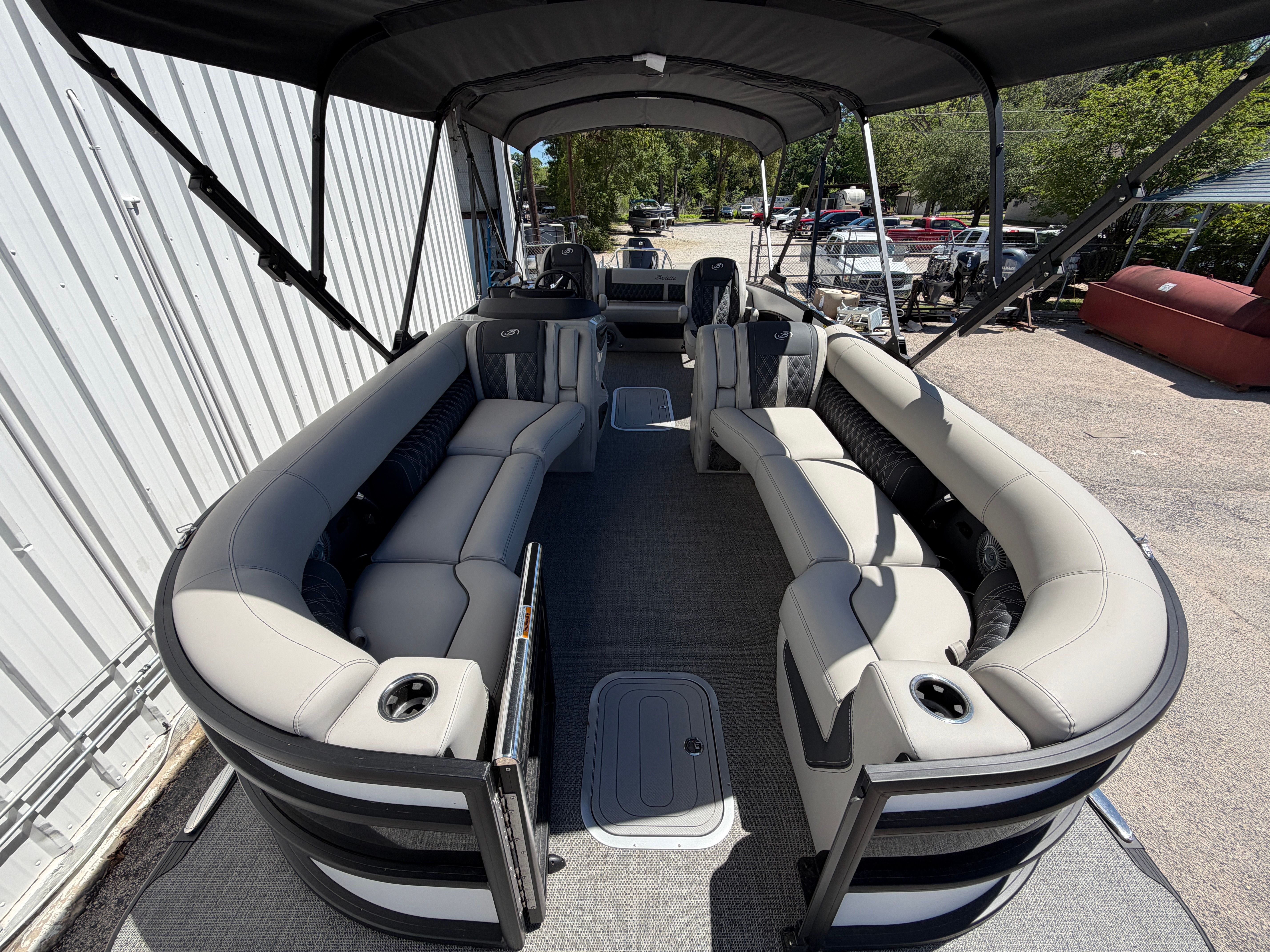 The Barletta Lusso L25UC is a 2026 model pontoon boat that measures an impressive 27.5 feet in length. This spacious vessel is crafted for those who appreciate the finer things in life and want a boat that stands out both in appearance and functionality. The Lusso series is known for its attention to detail, and the L25UC is no exception, boasting a new condition that ensures you’ll be the first to enjoy its many features. With its generous size, this pontoon offers ample room for relaxation, socializing, and creating unforgettable memories on the water.