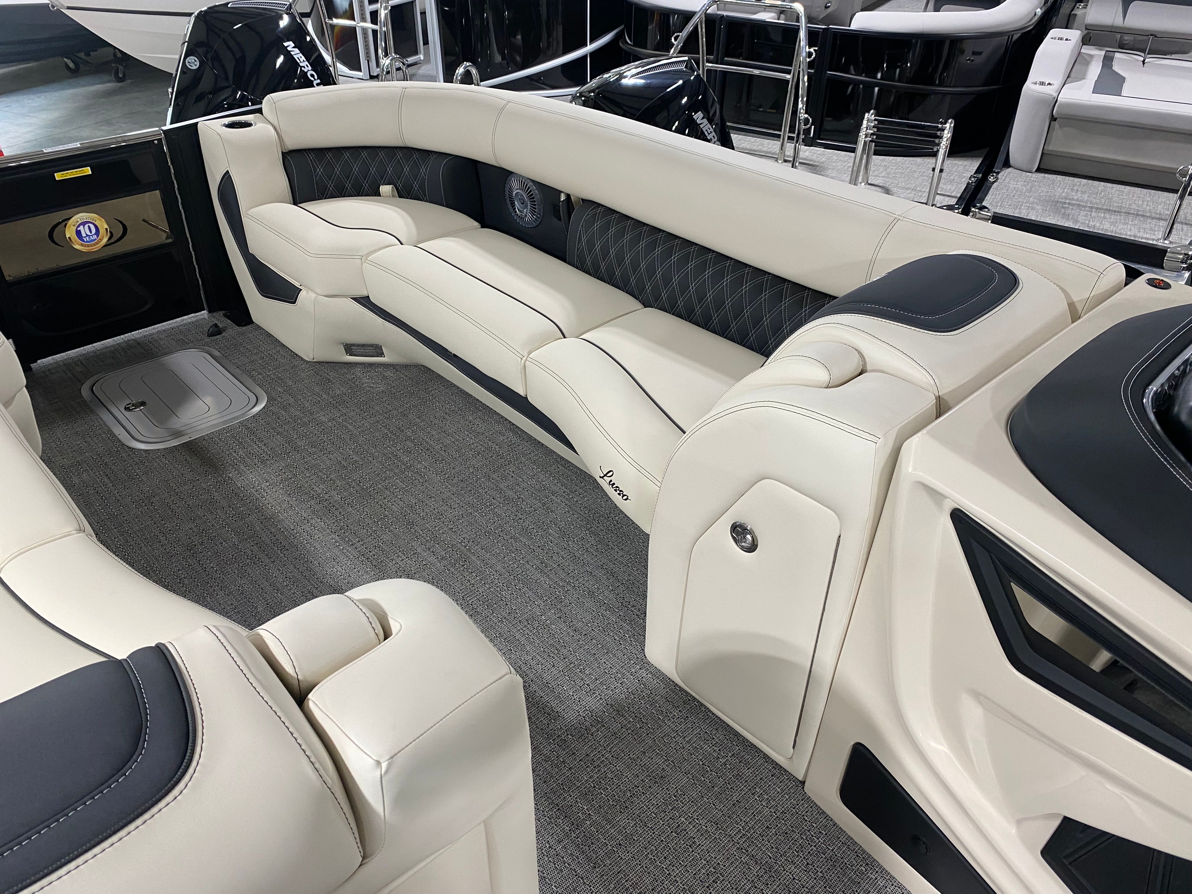 Beyond its beauty and performance, the Barletta Lusso L25UCA offers practical advantages that make ownership a breeze. The spacious deck provides plenty of room for gear, coolers, and water toys, making it easy to prepare for a day of fun. The pontoon’s design facilitates easy docking, so you can pull up to your favorite waterfront restaurant or marina with confidence. The efficient Mercury V10 Verado engine helps keep fuel costs manageable, allowing you to spend more time on the water and less time at the pump.Maintenance is straightforward thanks to the high-quality flooring and durable furniture, which are designed to withstand the rigors of regular use. The advanced lighting system not only enhances safety but also makes nighttime docking and storage simpler. Whether you’re a seasoned boater or new to the lifestyle, the Lusso L25UCA is engineered to make every aspect of ownership enjoyable and stress-free.
