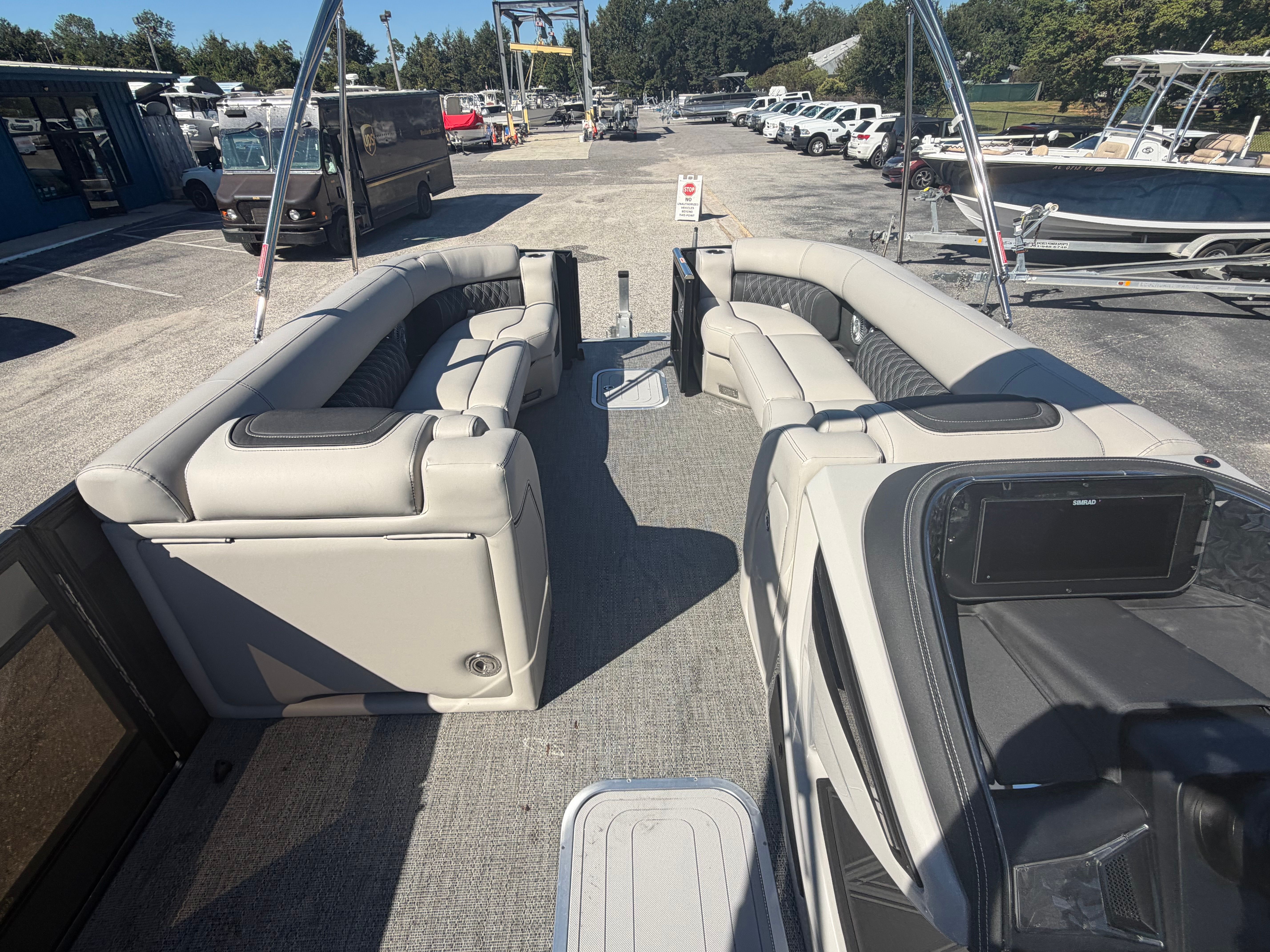 Owning the Barletta Lusso L25UCA pontoon boat means embracing a lifestyle of fun, relaxation, and adventure. The spacious deck is perfect for hosting gatherings, enjoying meals, or simply soaking up the sun. With its luxurious seating and open layout, you’ll have plenty of room for family and friends to join in the fun. The powerful Mercury 300L Verado V8 engine ensures you can explore new destinations with confidence, while the advanced steering and digital controls make every trip smooth and enjoyable. Whether you’re cruising at sunset, anchoring for a swim, or celebrating a special occasion, this pontoon boat offers the perfect setting for creating lasting memories.