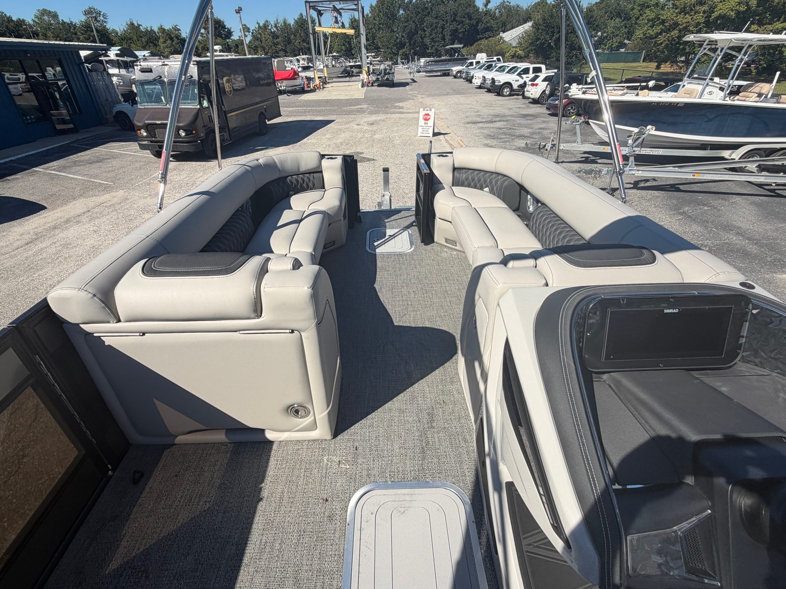 The Barletta Lusso L25UCA is designed with practicality in mind, making ownership easy and enjoyable. Its generous length provides ample storage for gear, water toys, and supplies, so you’re always prepared for a day on the water. The hydraulic and power assist steering make docking and maneuvering a breeze, even for those new to boating. The durable flooring and high-quality furniture are built to withstand the elements, ensuring your boat stays looking great season after season. Fuel efficiency is enhanced by the advanced Mercury engine and stainless steel prop, allowing you to spend more time enjoying the water and less time refueling. The Double Bimini Arch Models offer flexible shade options, making it easy to adapt to changing weather conditions and keep everyone comfortable.