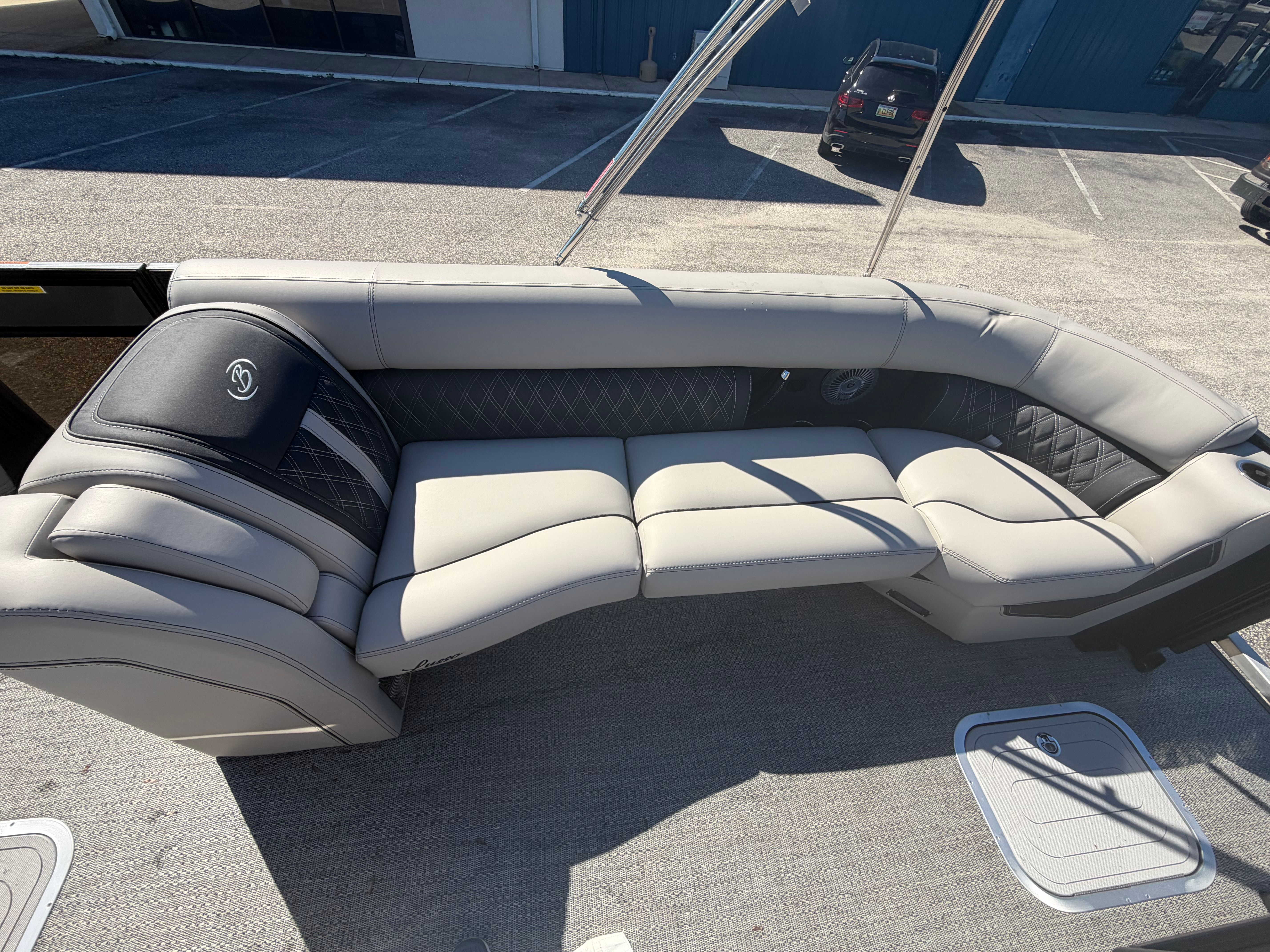 Step aboard the 2026 Barletta Lusso L25UCA and experience the next level of pontoon boating. Measuring an impressive 27.5 feet in length, this pontoon offers ample space for guests, gear, and activities. The Lusso series is renowned for its attention to detail, and the L25UCA model is no exception. Its contemporary styling, highlighted by the Gray Moonstone sweep color and Black Diamond accent, ensures you’ll turn heads at every marina and on every lake. The Blackout Package Lusso adds a touch of elegance and modern flair, while the Marquesan Gray with Onyx furniture and Amore Gray flooring create a comfortable and inviting atmosphere for all aboard.