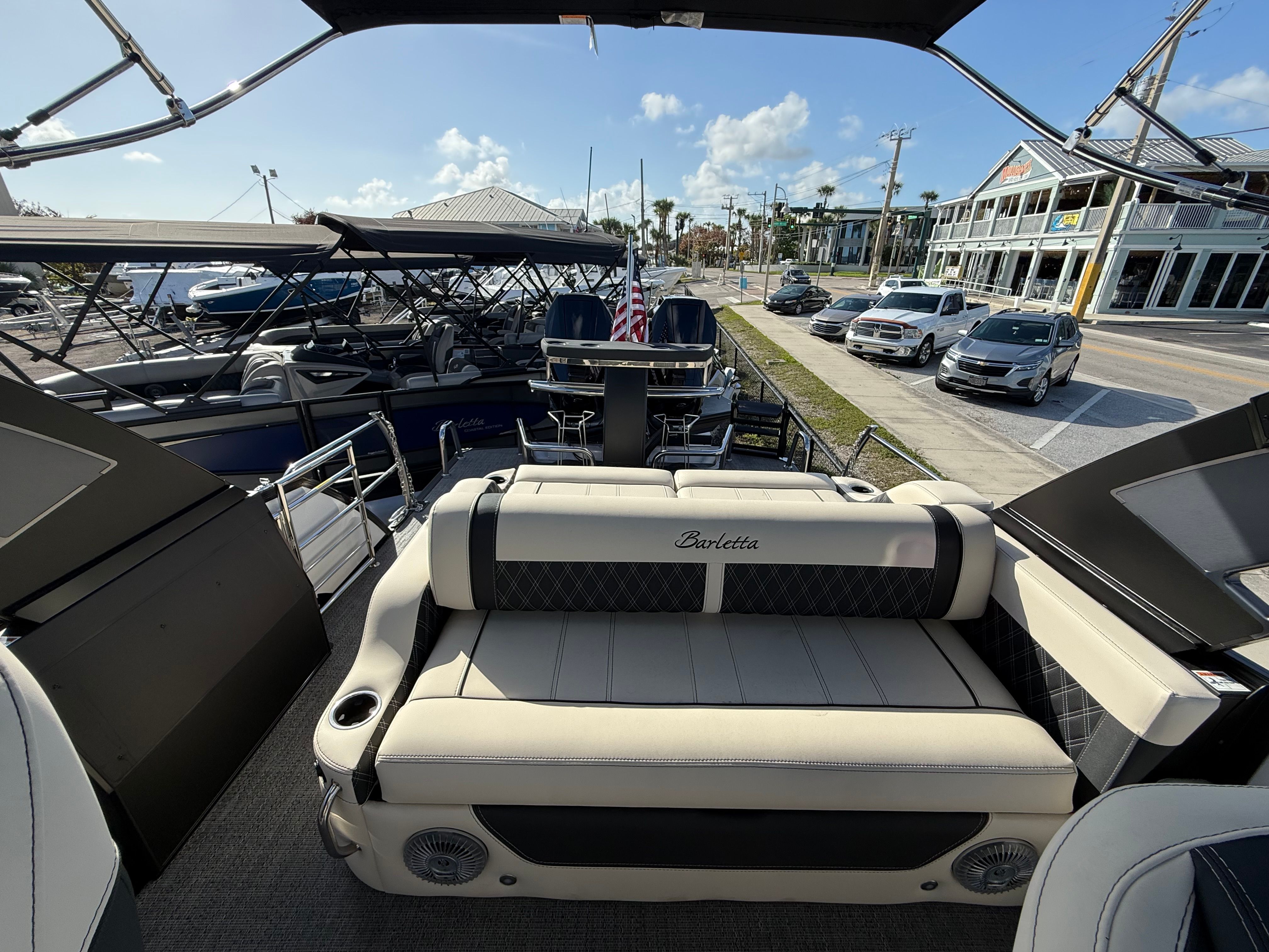The 2026 Barletta Lusso L25UCAT stands out as a premier pontoon, boasting a generous length of 28.25 feet. Its sleek profile, accentuated by the sophisticated Winter White sweep and accent colors, ensures you’ll turn heads wherever you cruise. The new condition of this pontoon guarantees that you’ll be the first to experience its pristine features and innovative design. Every inch of this Barletta boat for sale is engineered for both elegance and durability, making it a top contender in the luxury pontoon market.