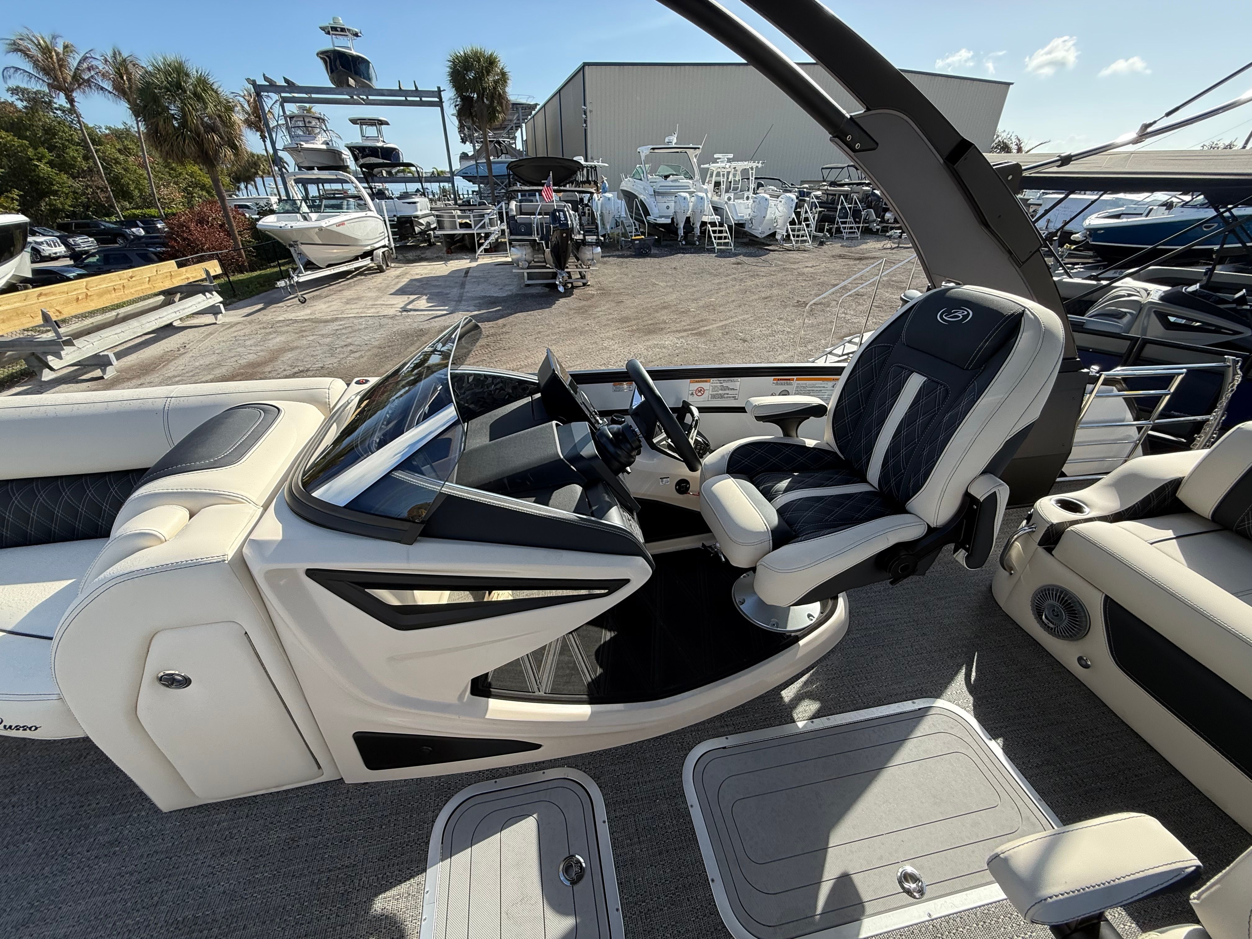Power and precision are at the heart of the Lusso L25UCAT. Equipped with twin Mercury (D) 400L V10 Verado CR JPO engines, this pontoon delivers a combined 800 horsepower, offering exhilarating speed and smooth handling. The advanced Pre-Rig V10 (350/400) Twin JPO system and Rig Twin Engine with Prop ensure seamless operation and responsive control, whether you’re cruising at a leisurely pace or powering across open water. The twin-engine setup not only provides impressive acceleration but also enhances maneuverability, making docking and navigating tight spaces a breeze.
