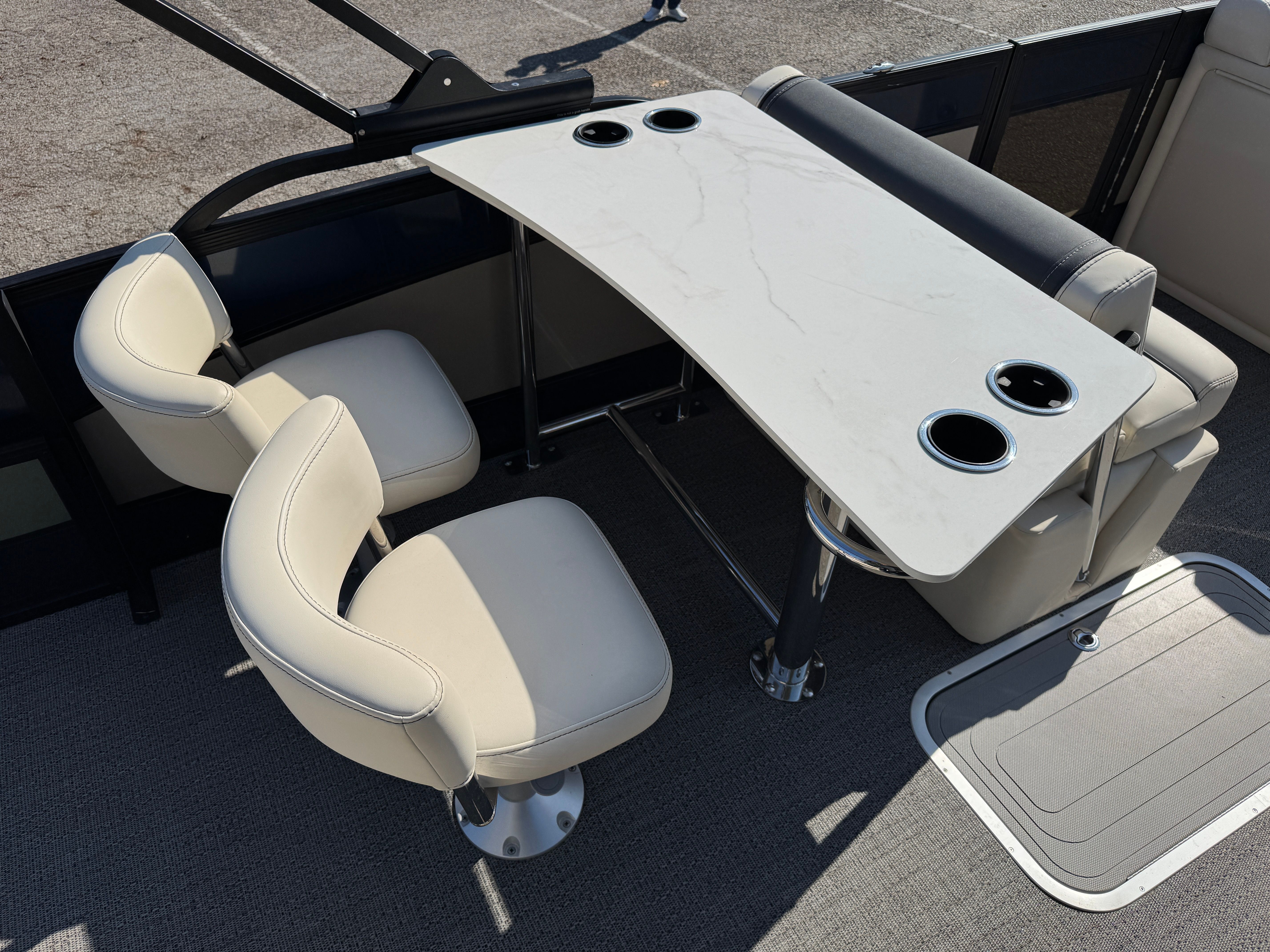 Beyond its luxurious appeal, the Barletta Lusso L25UE is designed with practicality in mind. The spacious deck provides plenty of storage options for gear, water toys, and personal items, keeping the area clutter-free and organized. The boat’s size and layout make docking and maneuvering straightforward, even for those new to pontoon boating.Fuel efficiency is another key advantage of this model. The combination of a single, high-performance engine and the pontoon’s hydrodynamic design helps maximize fuel economy, allowing you to spend more time on the water and less time refueling. Maintenance is simplified thanks to Barletta’s reputation for quality engineering and durable construction, giving you peace of mind with every outing.