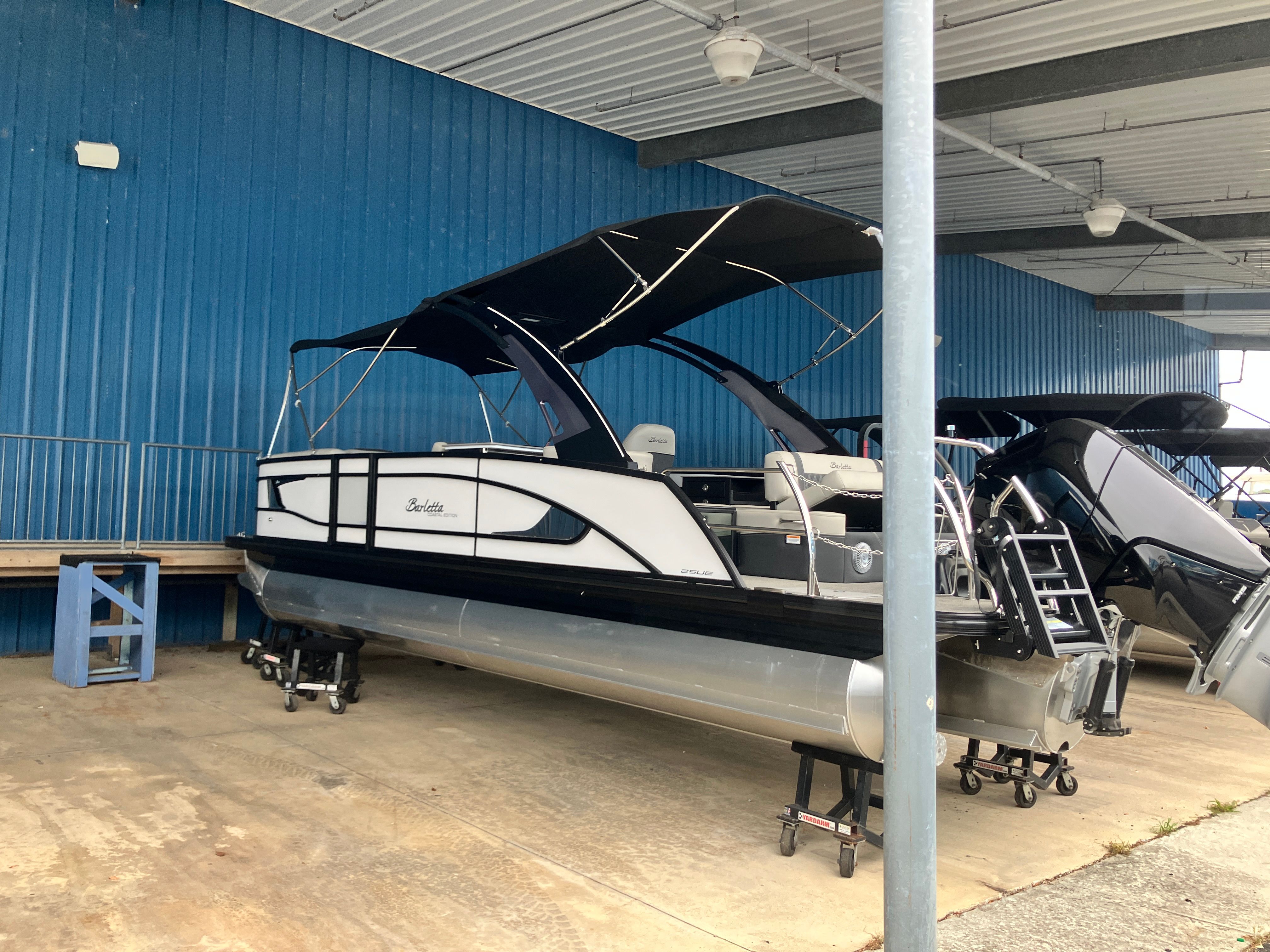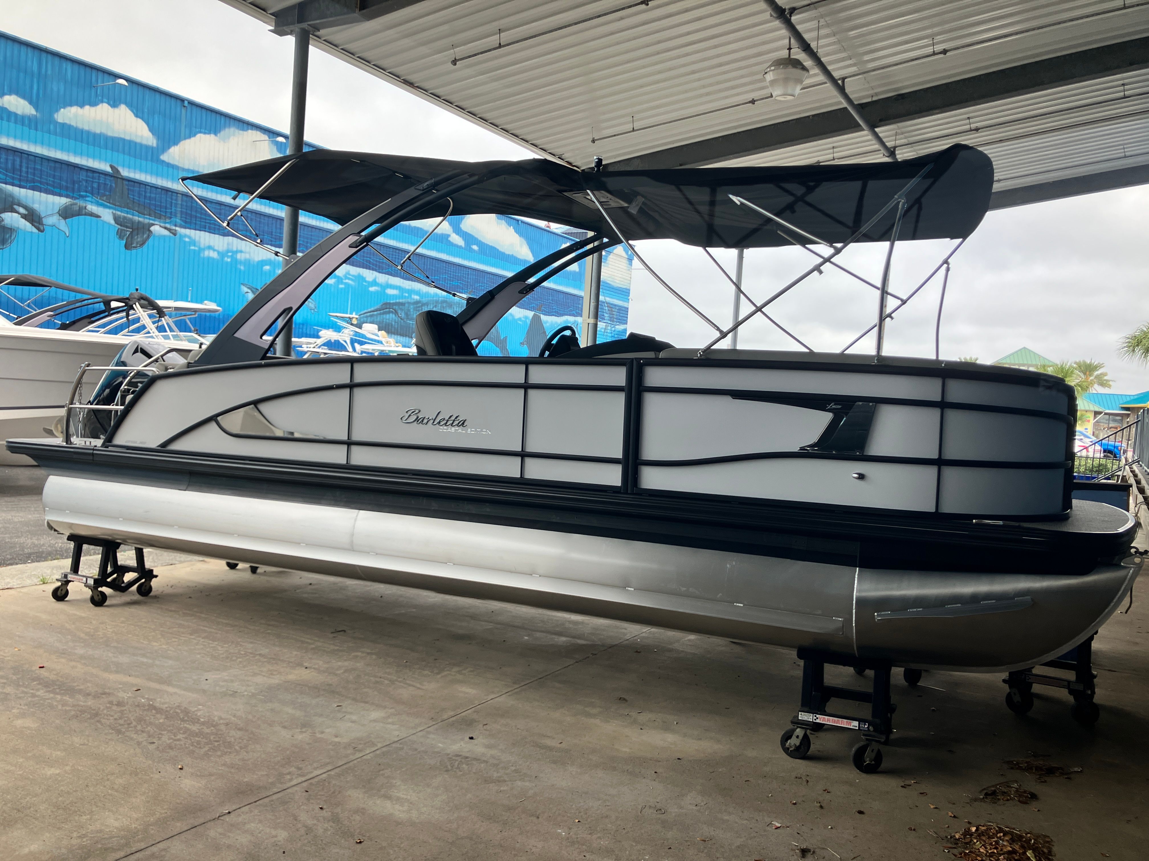 Step aboard the Barletta Lusso L25UEA and you’ll immediately notice its striking Winter White sweep and accent colors, which create a clean, sophisticated aesthetic. The Blackout Package Lusso railskin adds a bold, modern touch, while the Marquesan Gray with Onyx furniture provides plush seating and refined style. The flooring, finished in Amore Gray, is both durable and visually appealing, complementing the overall design.This pontoon boat is part of the Coastal Edition Lusso, offering enhanced features for those who love to explore a variety of waterways. The Double Bimini Arch Models provide generous shade and protection from the sun, allowing you to enjoy long days on the water in comfort. Every detail, from the premium upholstery to the thoughtful layout, is designed to maximize relaxation and enjoyment.