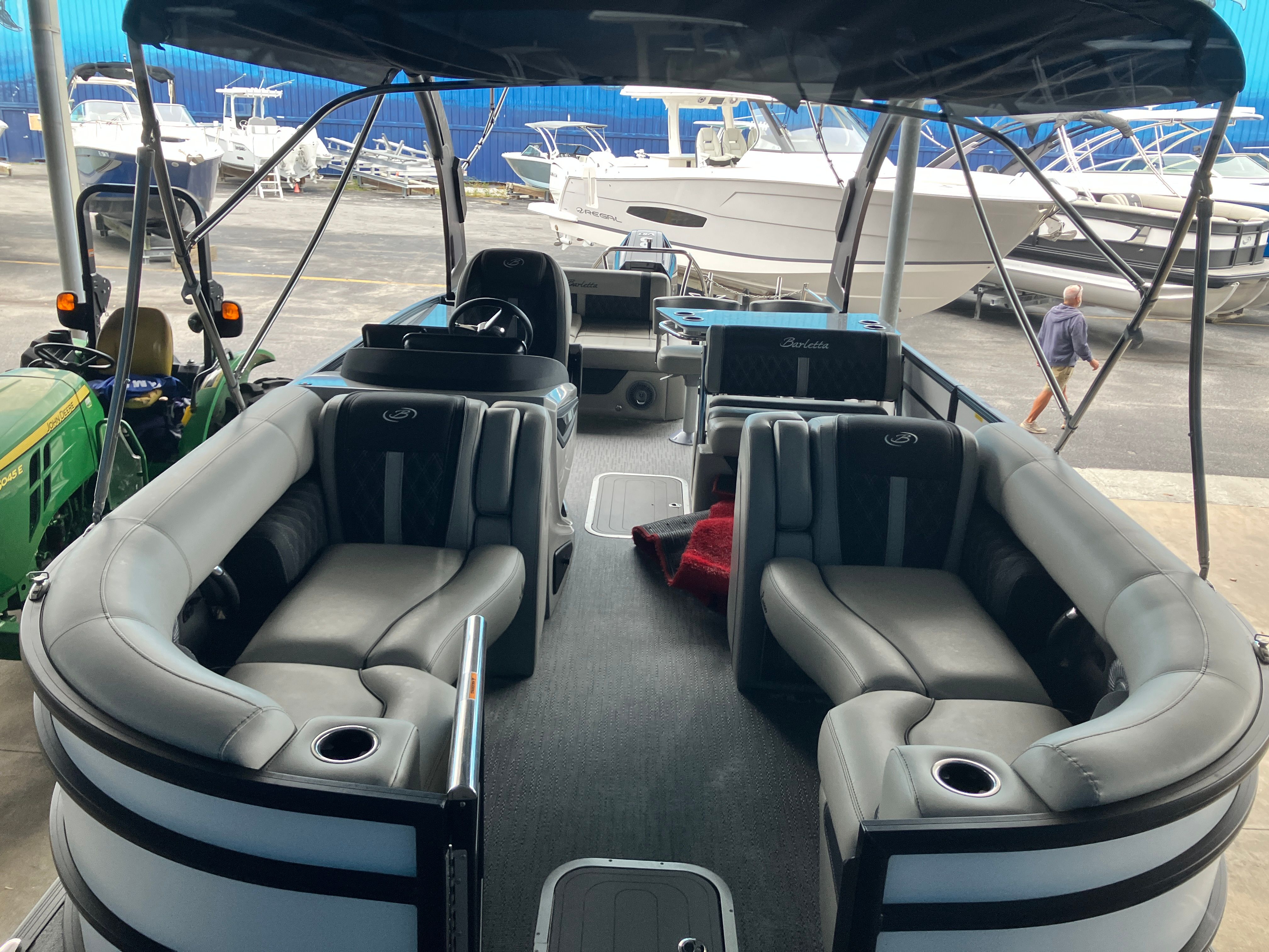 Owning the Barletta Lusso L25UEA means embracing a lifestyle of leisure, luxury, and fun. The spacious deck layout is perfect for hosting gatherings, whether you’re celebrating a special occasion or enjoying a casual day with loved ones. The plush seating invites you to unwind, while the ample space ensures everyone has room to stretch out and enjoy the ride.The Lusso L25UEA’s advanced engine and rigging deliver a smooth, quiet ride, making it easy to converse, listen to music, or simply soak in the natural beauty around you. The double bimini arches offer flexible shade options, so you can stay cool and comfortable even during the hottest summer days. With its elegant color scheme and high-end finishes, this pontoon boat is sure to turn heads wherever you go.