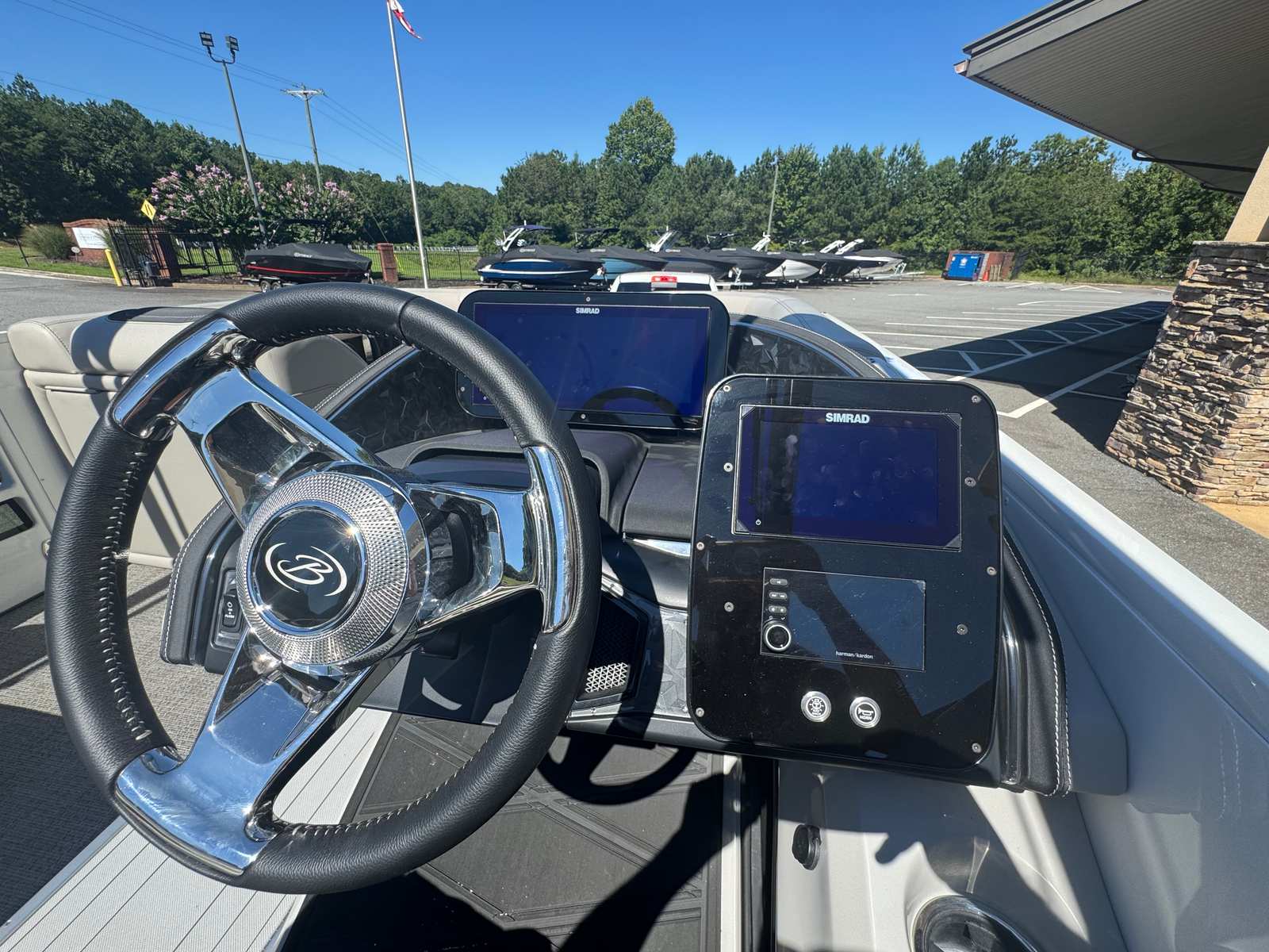 Step aboard and experience the thoughtfully curated features that set this pontoon boat apart. The Marquesan Gray/Onyx furniture creates a sophisticated and comfortable atmosphere, perfect for lounging or entertaining. The Amore Gray flooring adds a touch of elegance while offering durability and easy maintenance, ensuring your boat stays looking pristine season after season.The AccuThruster System enhances maneuverability, making docking and tight turns effortless. With the Railskin Color in All White, the exterior exudes a clean, modern aesthetic that’s sure to turn heads wherever you go. Every detail of the Barletta Reserve Leggera R23MA has been designed to maximize comfort, style, and convenience, making it a standout option among pontoon boats for sale.