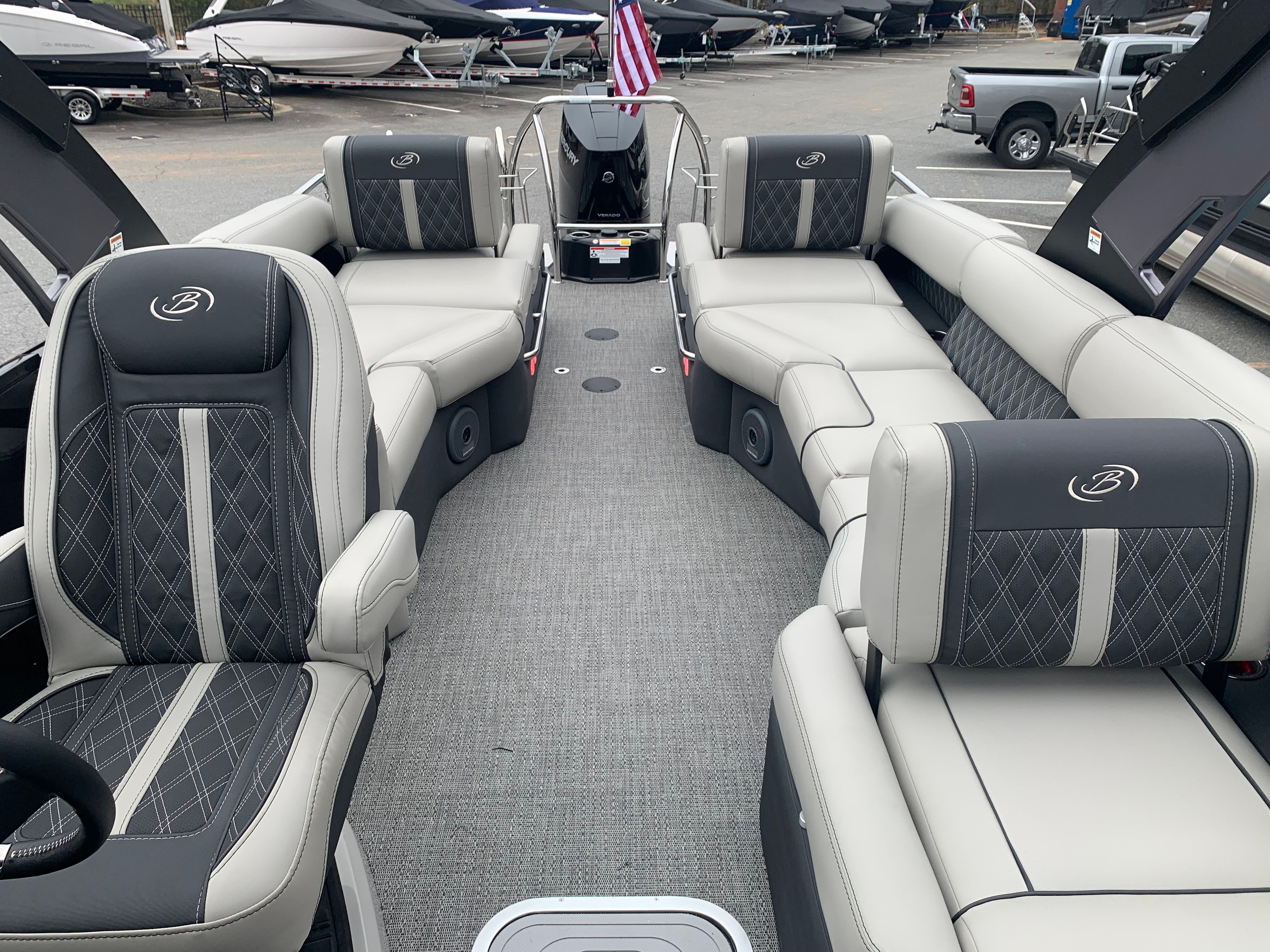 In summary, the 2026 Barletta Reserve Leggera R26MA is a standout pontoon boat for sale that combines luxury, performance, and versatility in one exceptional package. With its powerful Mercury 400L V10 Verado engine, sophisticated all-black exterior, elegant Marquesan Gray with Onyx furniture, and innovative features like the AccuThruster System, this Barletta boat for sale is designed to impress even the most discerning boating enthusiasts.If you are ready to elevate your time on the water and enjoy the ultimate in comfort, style, and performance, the Barletta Reserve Leggera R26MA is the perfect choice. Contact your local dealer today to learn more about this incredible pontoon boat and start your next adventure in style.