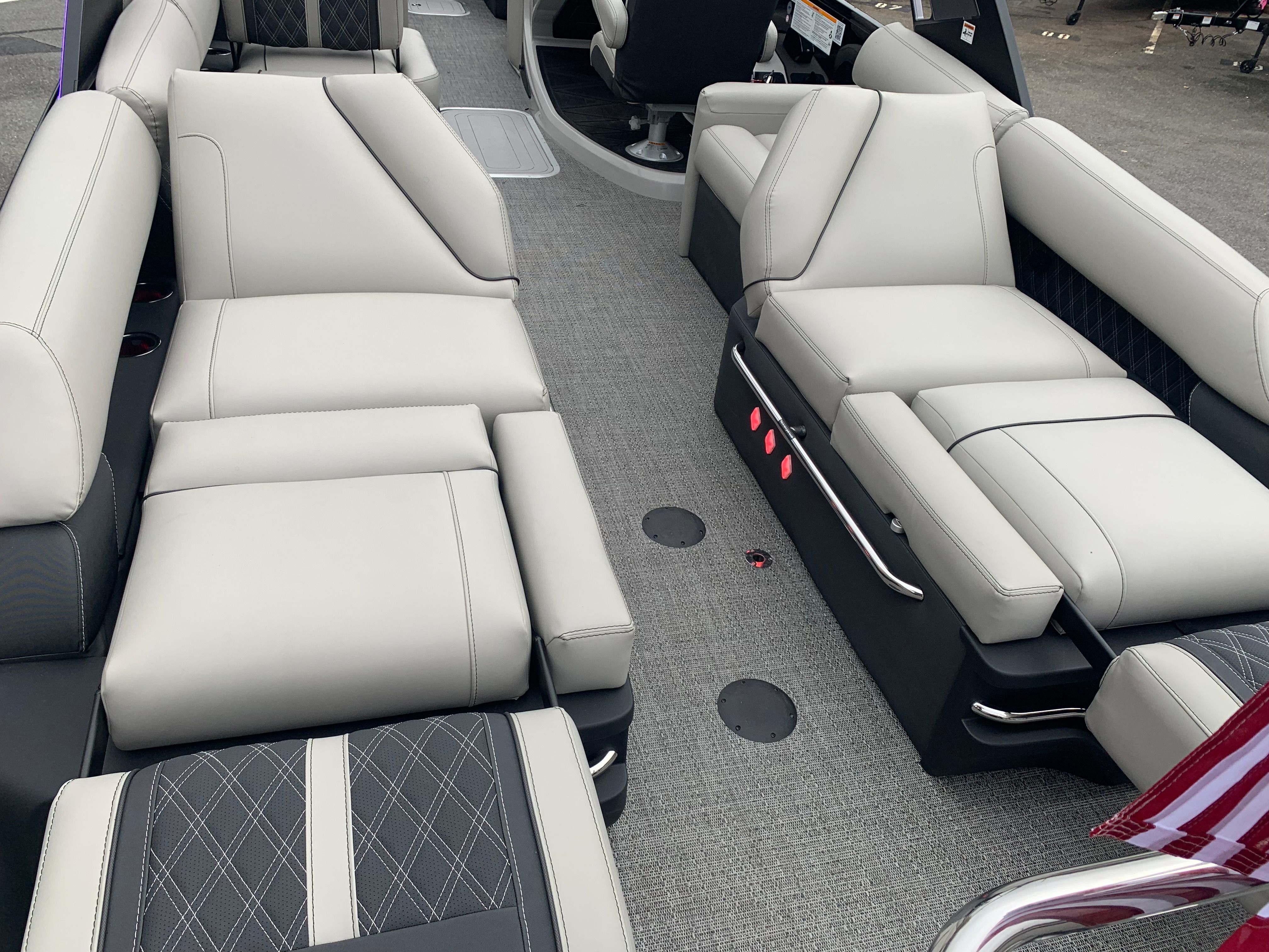 Beyond its stunning appearance and impressive performance, the Barletta Reserve Leggera R26MA is engineered for practicality and ease of ownership. The spacious deck layout provides ample storage options for gear and personal items, ensuring that everything you need for a day on the water is within easy reach. The advanced AccuThruster System simplifies docking and maneuvering, reducing stress and making it easier to enjoy your time on the water.The durable Amore Gray flooring is designed to withstand the rigors of frequent use, making cleaning and maintenance a simple task. The thoughtfully designed interior with an aft divider allows for flexible seating arrangements and added privacy, catering to a variety of activities and group sizes. Whether you are hosting a lively gathering or seeking a peaceful retreat, this pontoon boat adapts to your needs with ease.