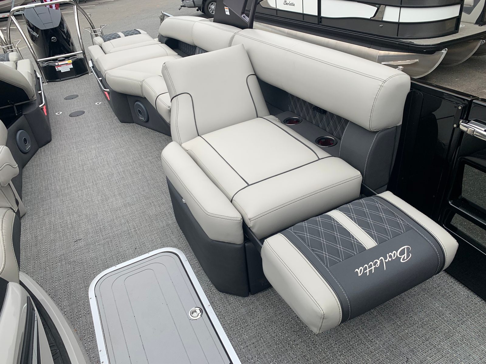 At the heart of the Barletta Reserve Leggera R26MA is the powerful Mercury 400L V10 Verado engine, delivering an impressive 400 horsepower. This state-of-the-art engine ensures smooth acceleration, responsive handling, and reliable performance, making every journey on the water both thrilling and effortless. The Mercury Digital Pre-Rig for V10 and the expertly rigged engine with a V10 prop further enhance the boat’s performance, providing optimal power delivery and efficiency. Whether you are cruising at a leisurely pace or seeking high-speed excitement, this pontoon boat is engineered to exceed your expectations.