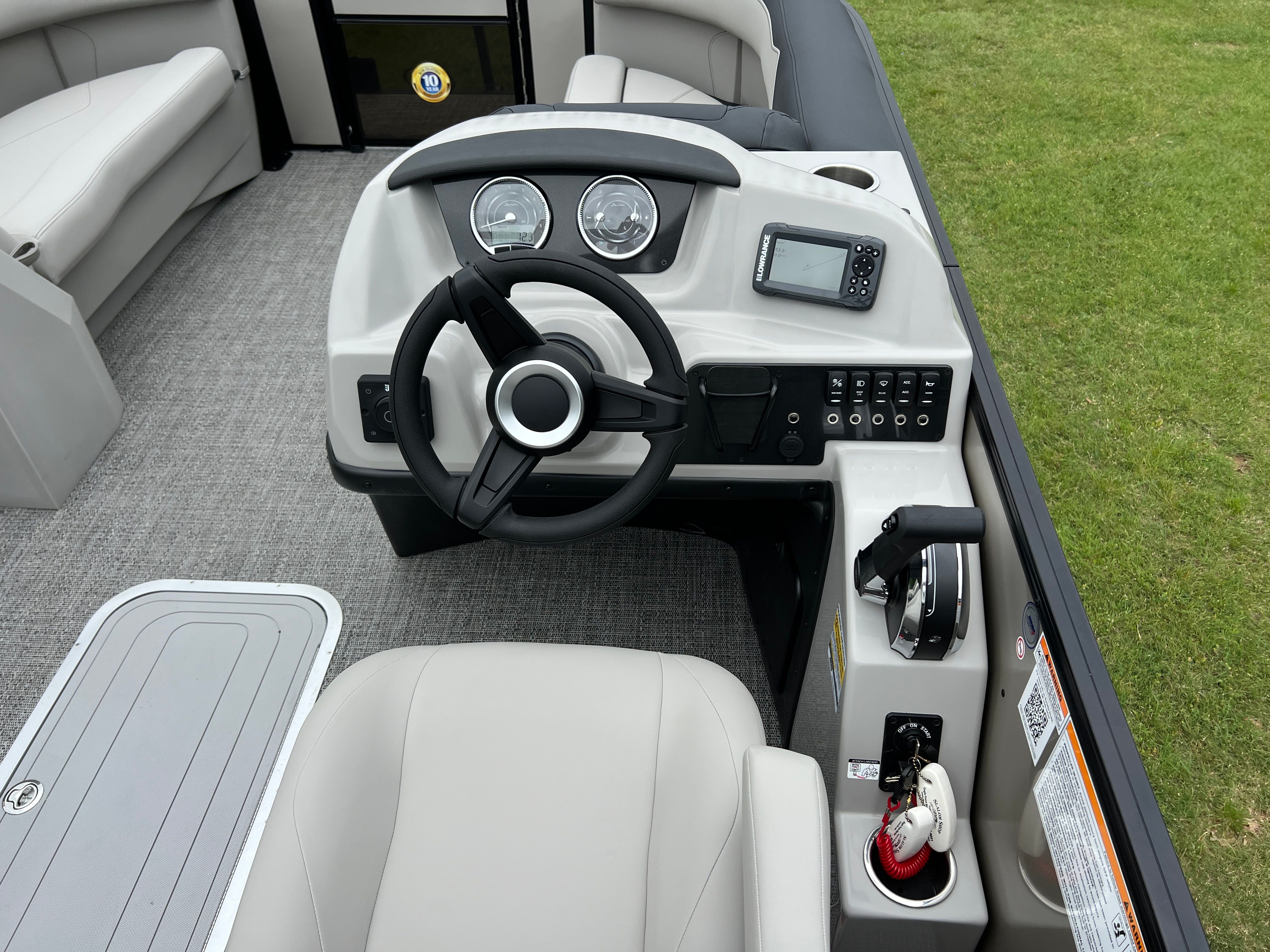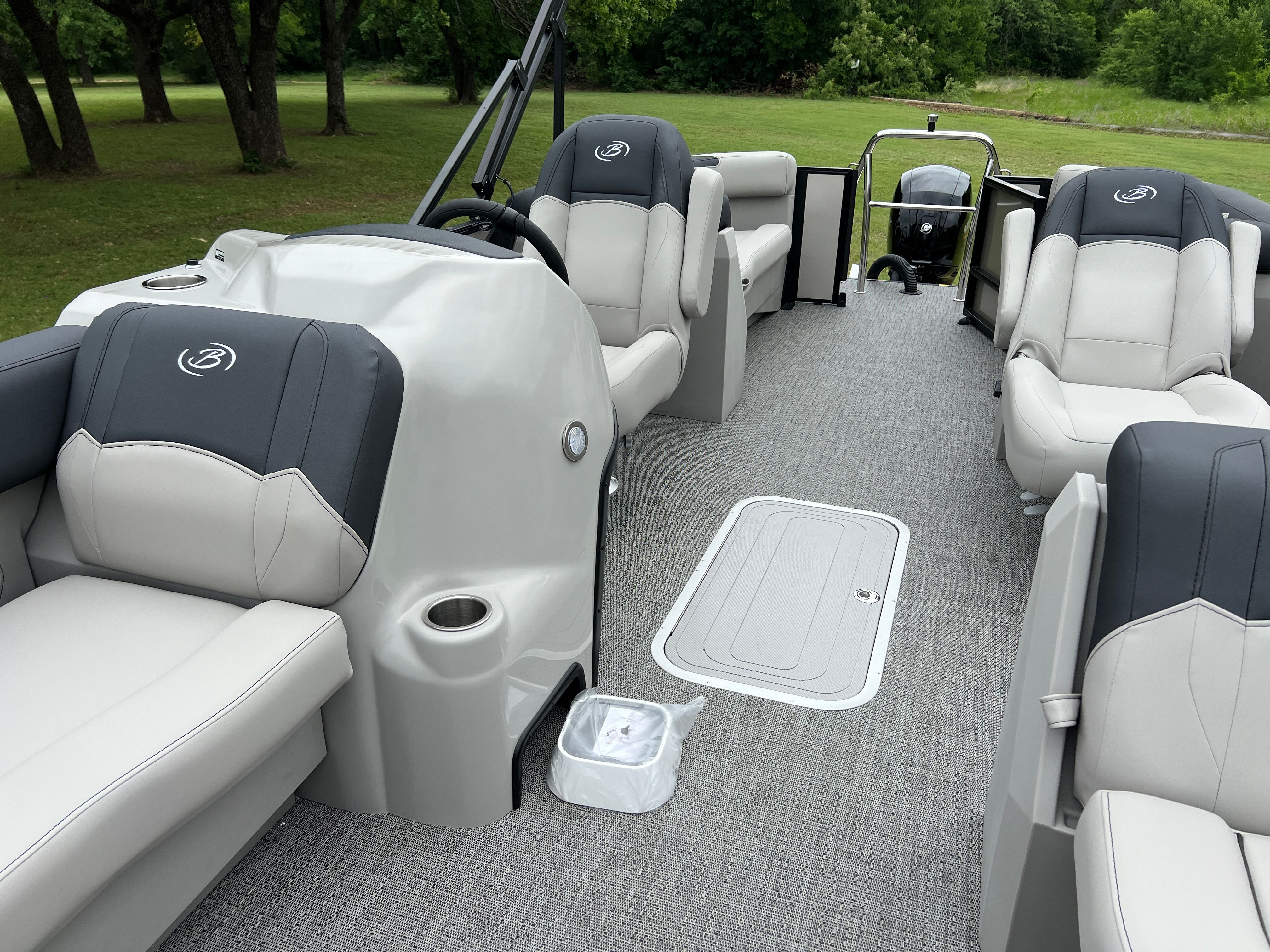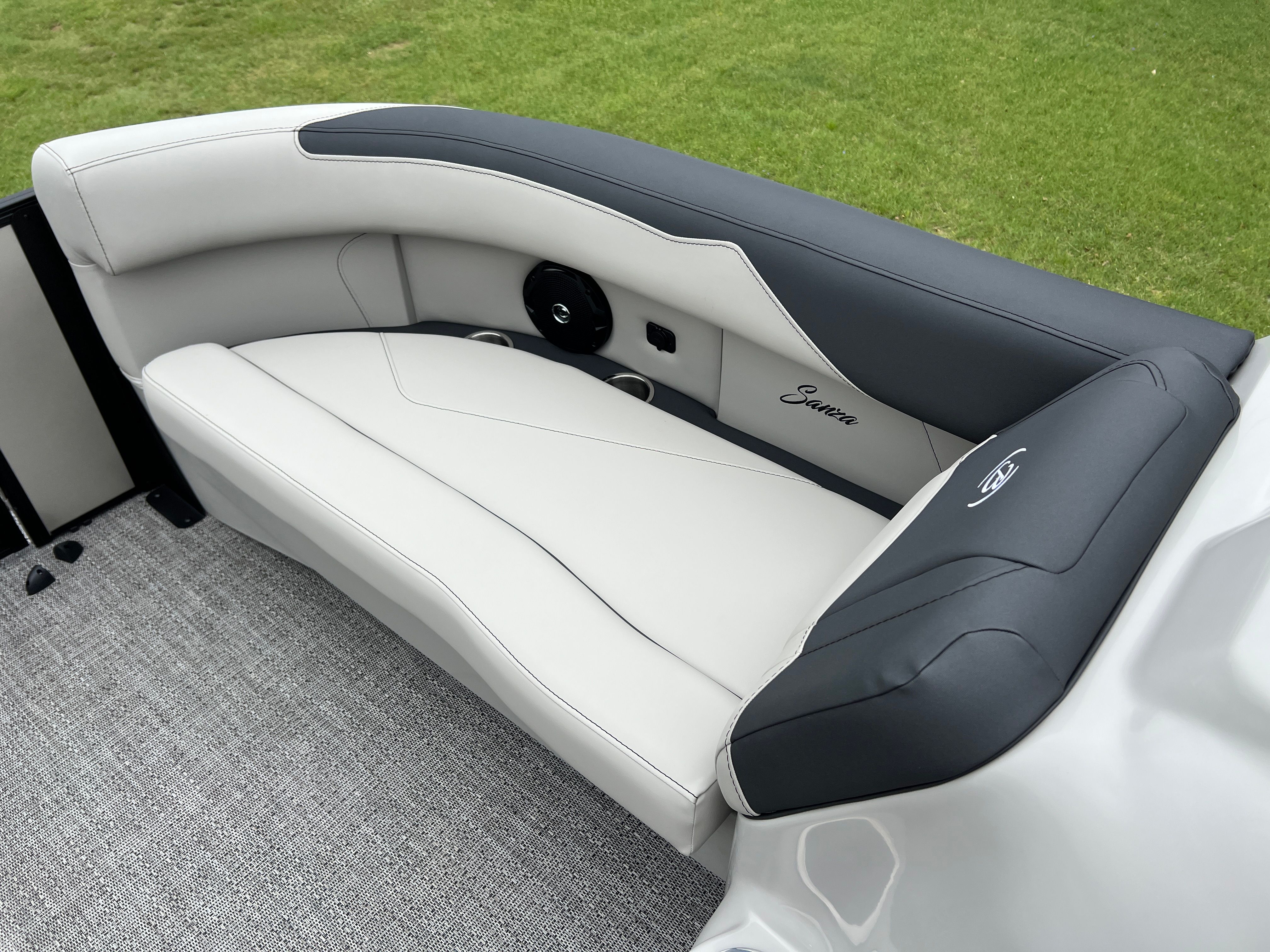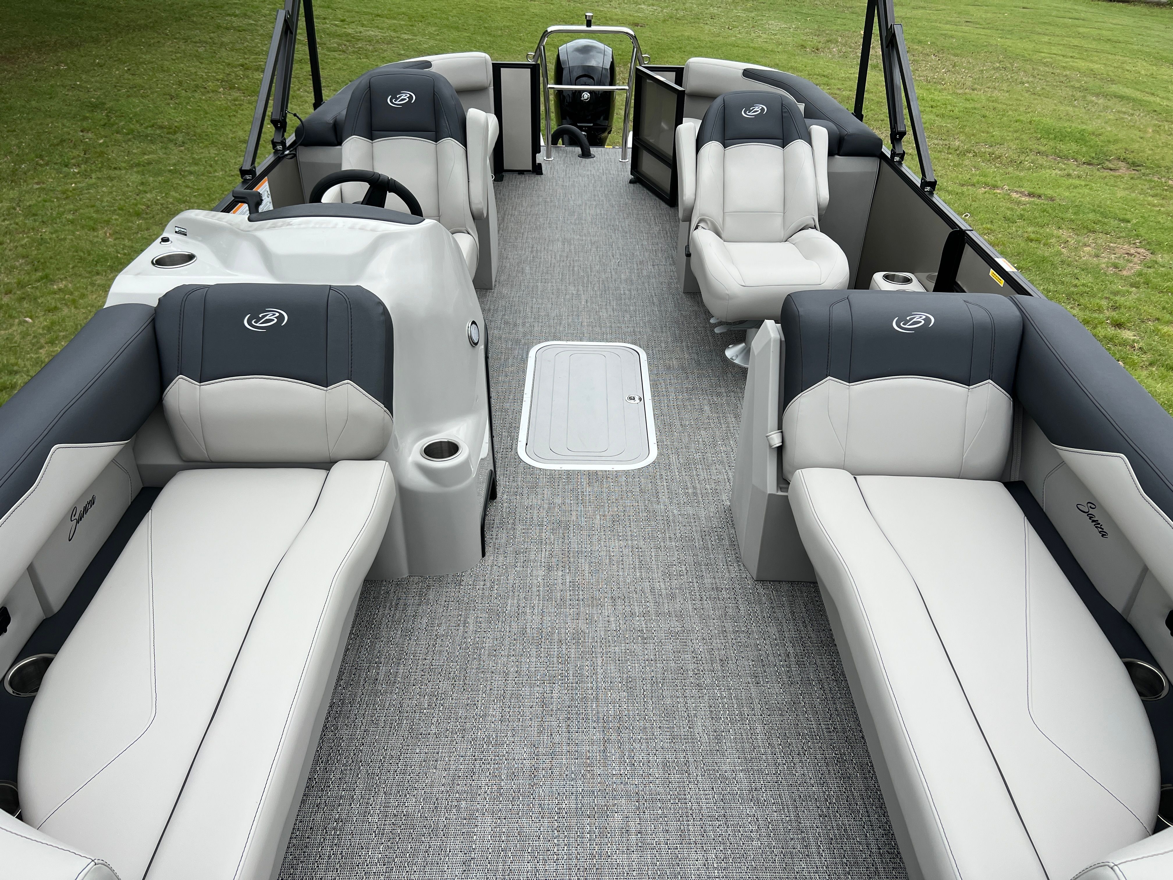 Step aboard the Barletta Sanza S22QC and discover a world of comfort and convenience. The Marquesan Gray with Onyx furniture creates a sophisticated and inviting atmosphere, perfectly complemented by the Amore Gray flooring that is both stylish and easy to maintain. The Sanza Triple Toon Package enhances stability and ride quality, making this pontoon boat ideal for a variety of water conditions.One of the standout features is the in-floor midship storage, providing ample space to stow away gear, water toys, and personal items. This thoughtful addition helps keep the deck clutter-free and organized, so you can focus on enjoying your time on the water. Every detail, from the premium upholstery to the innovative storage solutions, is designed to maximize your comfort and convenience.