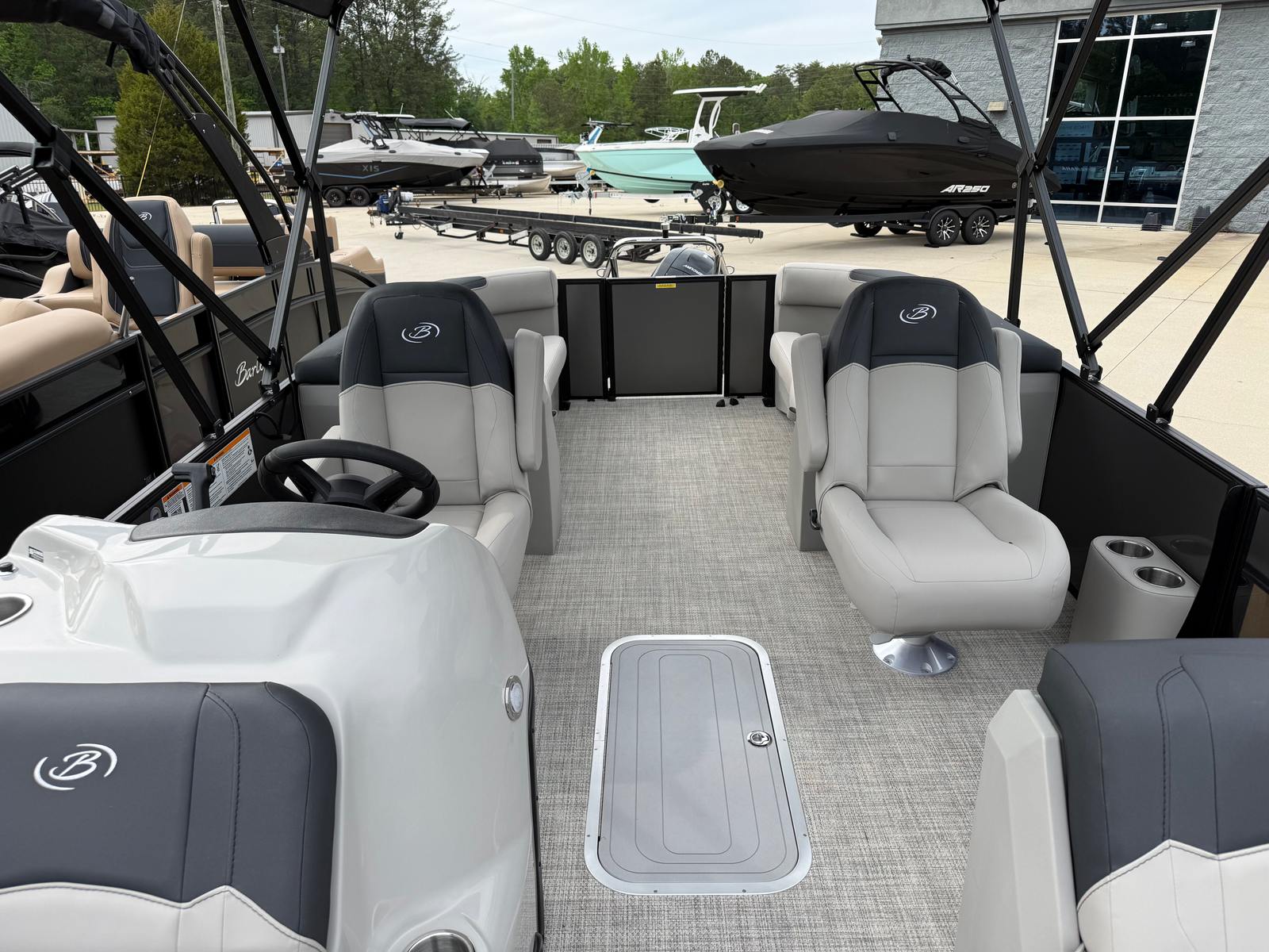The 2026 Barletta Sanza S22QC is a standout pontoon boat for sale that combines cutting-edge design, powerful performance, and luxurious comfort. With its striking Gray Moonstone Railskin, Sanza Blackout Package, Marquesan Gray with Onyx furniture, Alpine Gray flooring, Sanza Triple Toon Package, Mercury 150L Four Stroke engine, and in-floor midship storage, this Barletta boat for sale is ready to elevate your time on the water. If you are looking for a new pontoon that offers style, versatility, and lasting value, the Sanza S22QC is an outstanding choice. Discover the joys of pontoon boating and make every outing unforgettable—contact your local dealer today for more information on this exceptional Barletta pontoon boat.