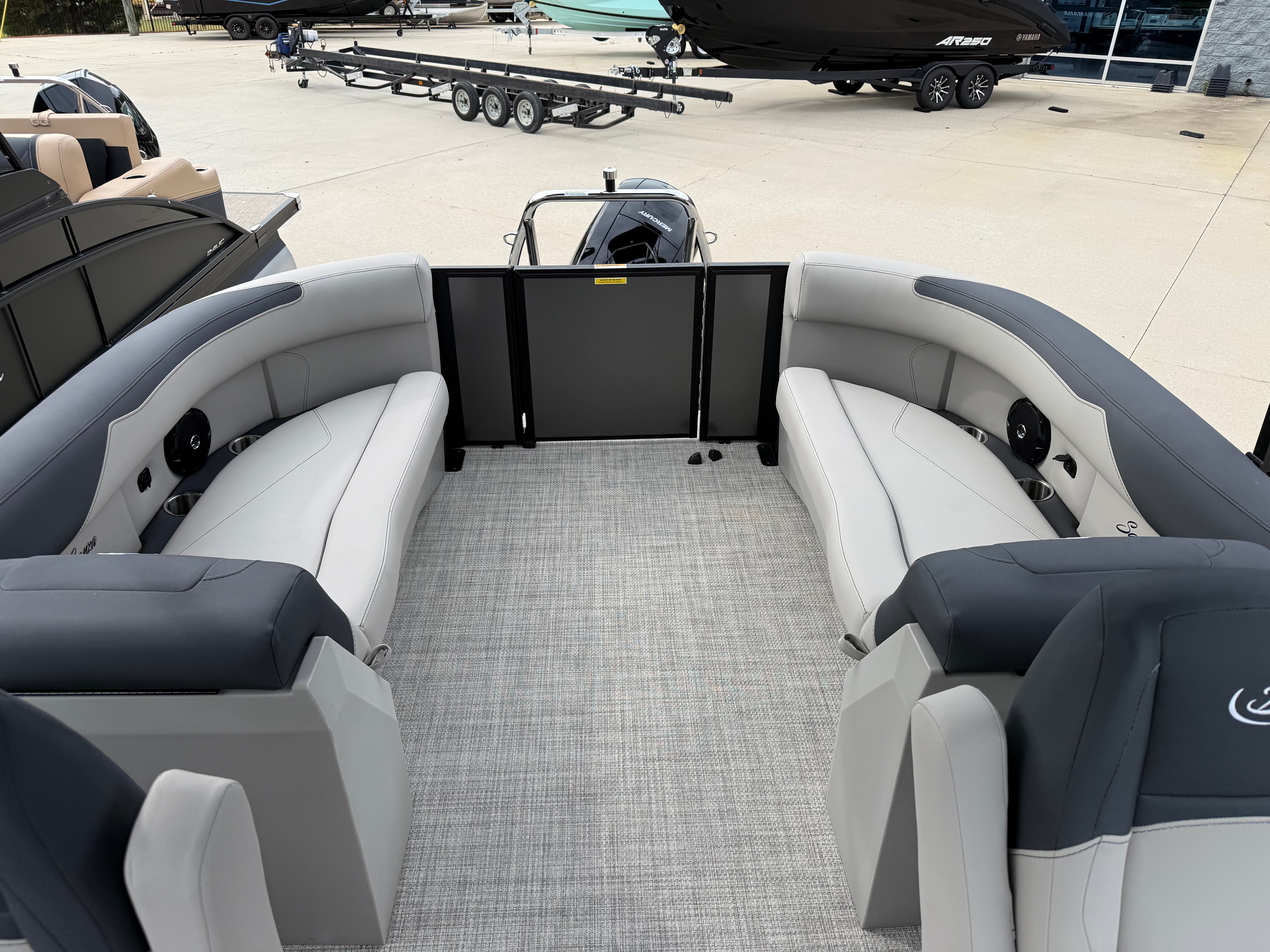 The Barletta Sanza S22QC is as practical as it is stylish. Its 21.5-foot length strikes the perfect balance between spaciousness and maneuverability, making docking and trailering a breeze. The in-floor midship storage is ideal for keeping life jackets, water toys, and other essentials out of the way but easily accessible. The durable flooring and high-quality upholstery are designed to withstand the rigors of frequent use, so you can spend more time enjoying the water and less time on maintenance. With its efficient Mercury engine, you can look forward to more time on the water and fewer stops at the fuel dock.