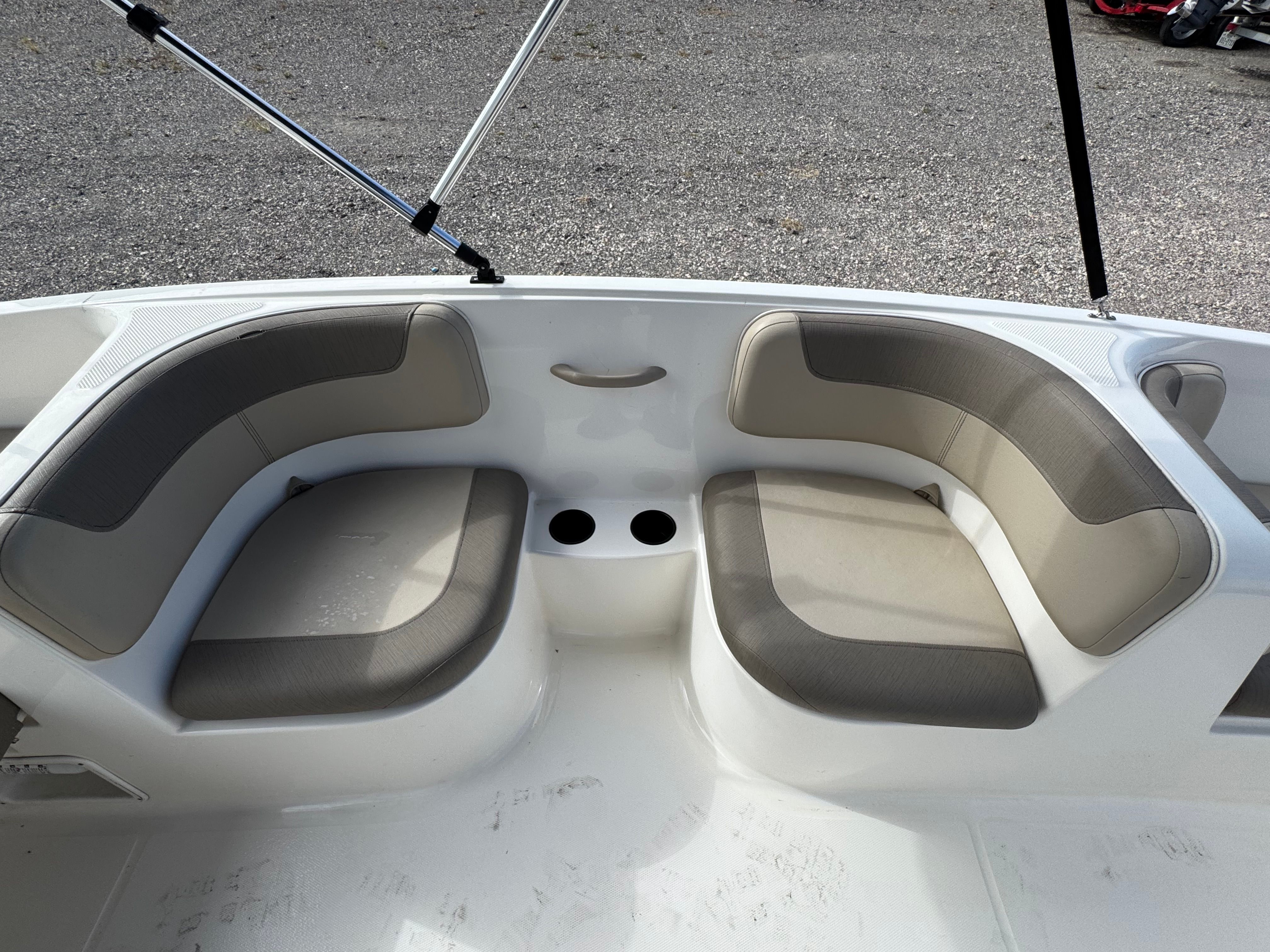 The Bayliner Element E16 deckboat is designed with comfort and convenience in mind. Its open deck layout provides plenty of seating for friends and family, allowing everyone to stretch out and enjoy the ride. The boat’s 16-foot length strikes the perfect balance between spaciousness and easy handling, making it suitable for both novice and experienced boaters. The Element E16’s hull design enhances stability and safety, ensuring a smooth ride even in choppy conditions. With its practical features and thoughtful engineering, this deckboat is ready to deliver unforgettable days on the water.