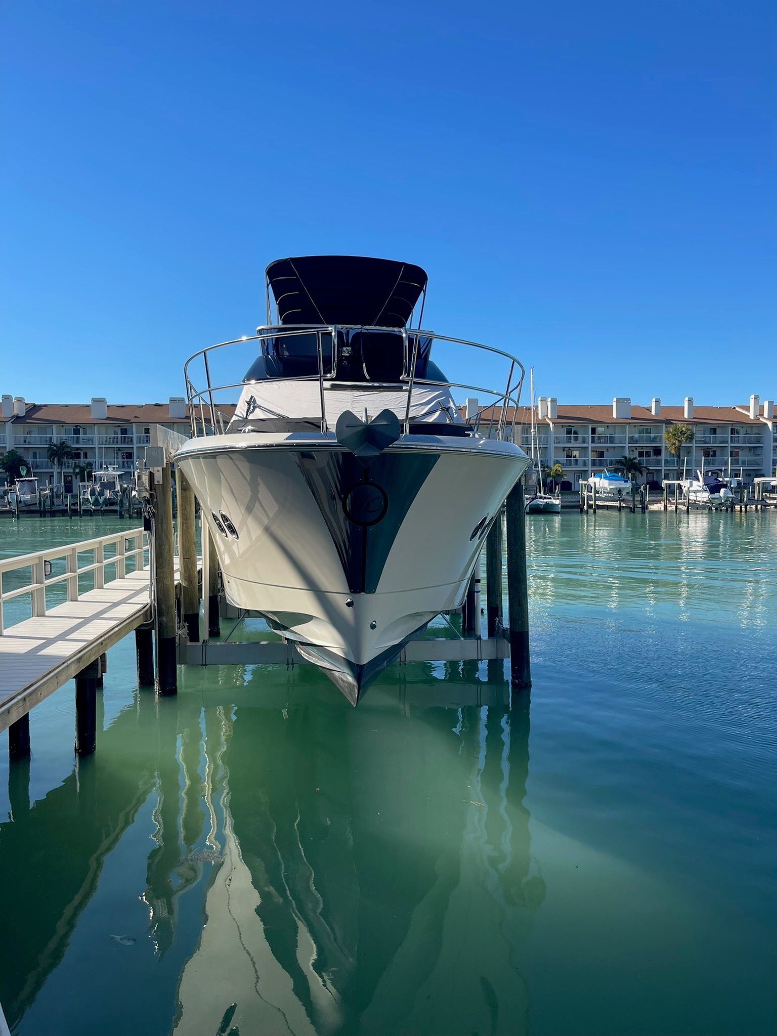 Lift-kept in Tierra Verde, FL on a 40,000-lb lift, this yacht has lived a fundamentally different life than water-kept boats. By staying out of the water, it has avoided the hull wear, bottom growth, staining, and long-term exposure that inevitably affect virtually every comparable water-kept vessel. Combine that advantage with an owner who follows an uncompromising, open-checkbook approach to preventative maintenance, and the result is a yacht that immediately stands apart to any knowledgeable buyer.