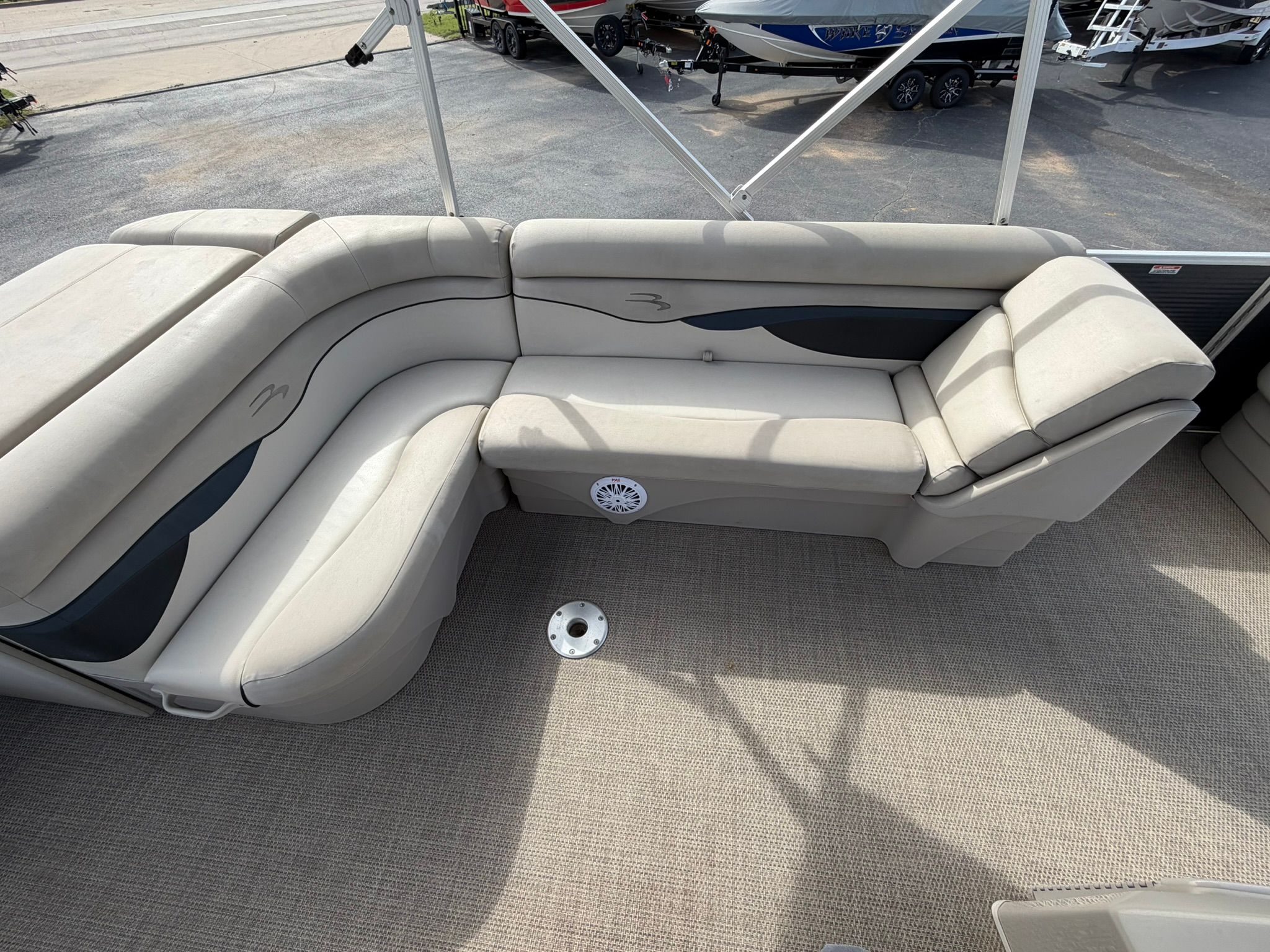 Powered by a single engine with 115 horsepower and 744 engine hours, the Bennington 22 SL ESP delivers a smooth and responsive ride. The engine is engineered for reliability and efficiency, making it ideal for both leisurely cruises and more spirited adventures. Whether you’re gliding across calm waters or picking up speed for a bit of excitement, this pontoon boat for sale offers the performance you need for a variety of on-water activities. The balance of power and fuel efficiency ensures you can spend more time enjoying the water and less time at the fuel dock.