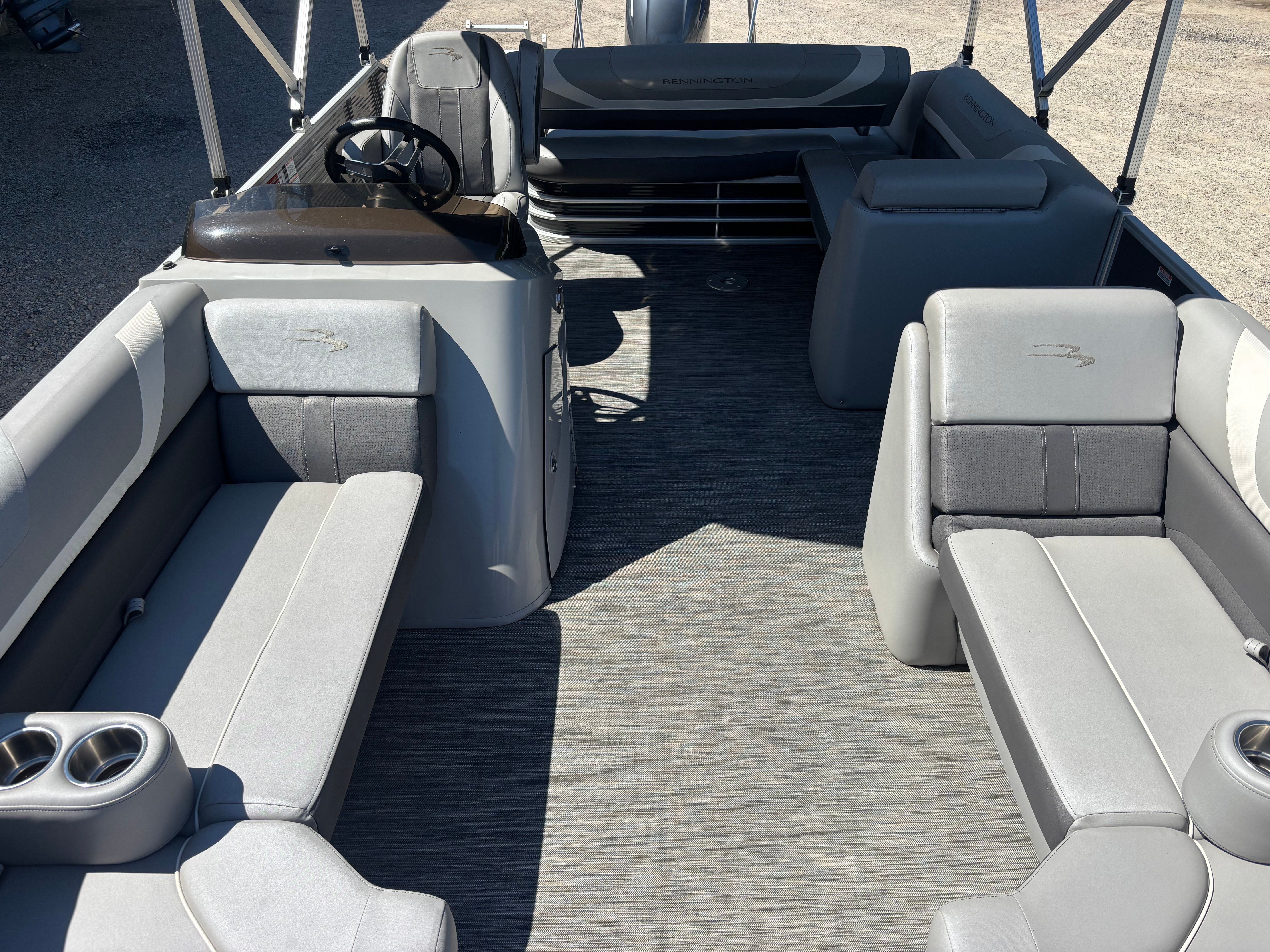 The Bennington 22 Ssbx is packed with features that enhance both comfort and convenience. The spacious deck layout allows for easy movement and plenty of seating, making it perfect for social gatherings or family adventures. The high-quality construction and attention to detail are evident throughout, from the plush seating to the stylish railings and durable flooring. The pontoon’s nearly 23-foot length provides ample room for passengers, gear, and recreational activities, ensuring that everyone on board has a comfortable and enjoyable experience.This Bennington boat for sale is designed with user-friendly controls and a well-organized helm, making it easy for both new and experienced boaters to operate. The pontoon’s layout is optimized for relaxation and fun, with plenty of space for lounging, dining, or sunbathing. The sturdy construction and reliable engine ensure that you can enjoy your time on the water with confidence, knowing that your boat is built to last.