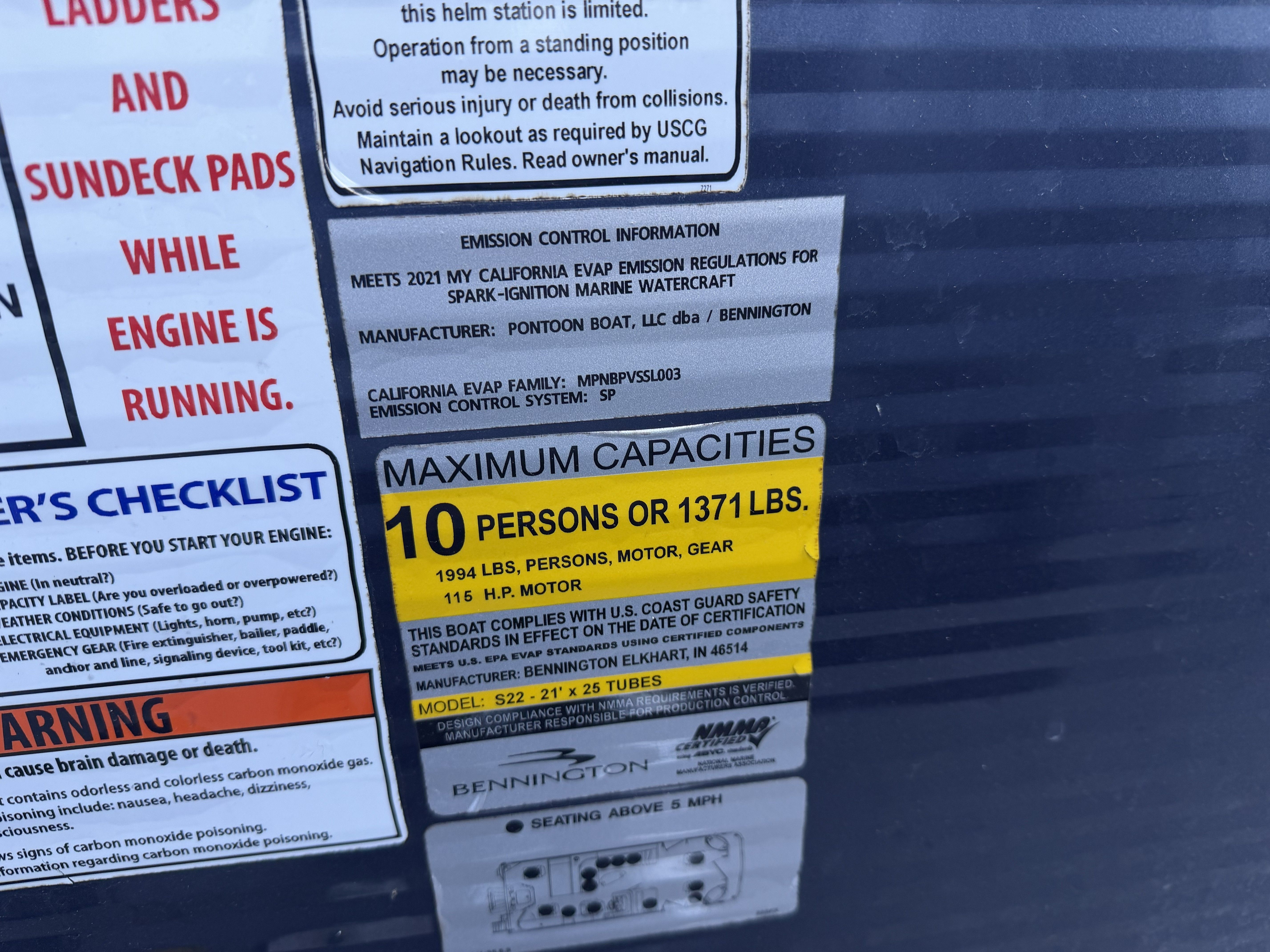 At the heart of the Bennington 22 SXF is a single, robust engine delivering 90 horsepower. This setup strikes the perfect balance between fuel efficiency and spirited performance, allowing you to cruise comfortably across lakes, rivers, or coastal waters. The 90 HP engine provides smooth acceleration and responsive handling, making it easy to navigate tight marinas or open stretches of water. Whether you are towing a tube, heading to your favorite fishing spot, or simply enjoying a leisurely cruise, the Bennington 22 SXF offers the power and reliability you need for a wide range of activities.