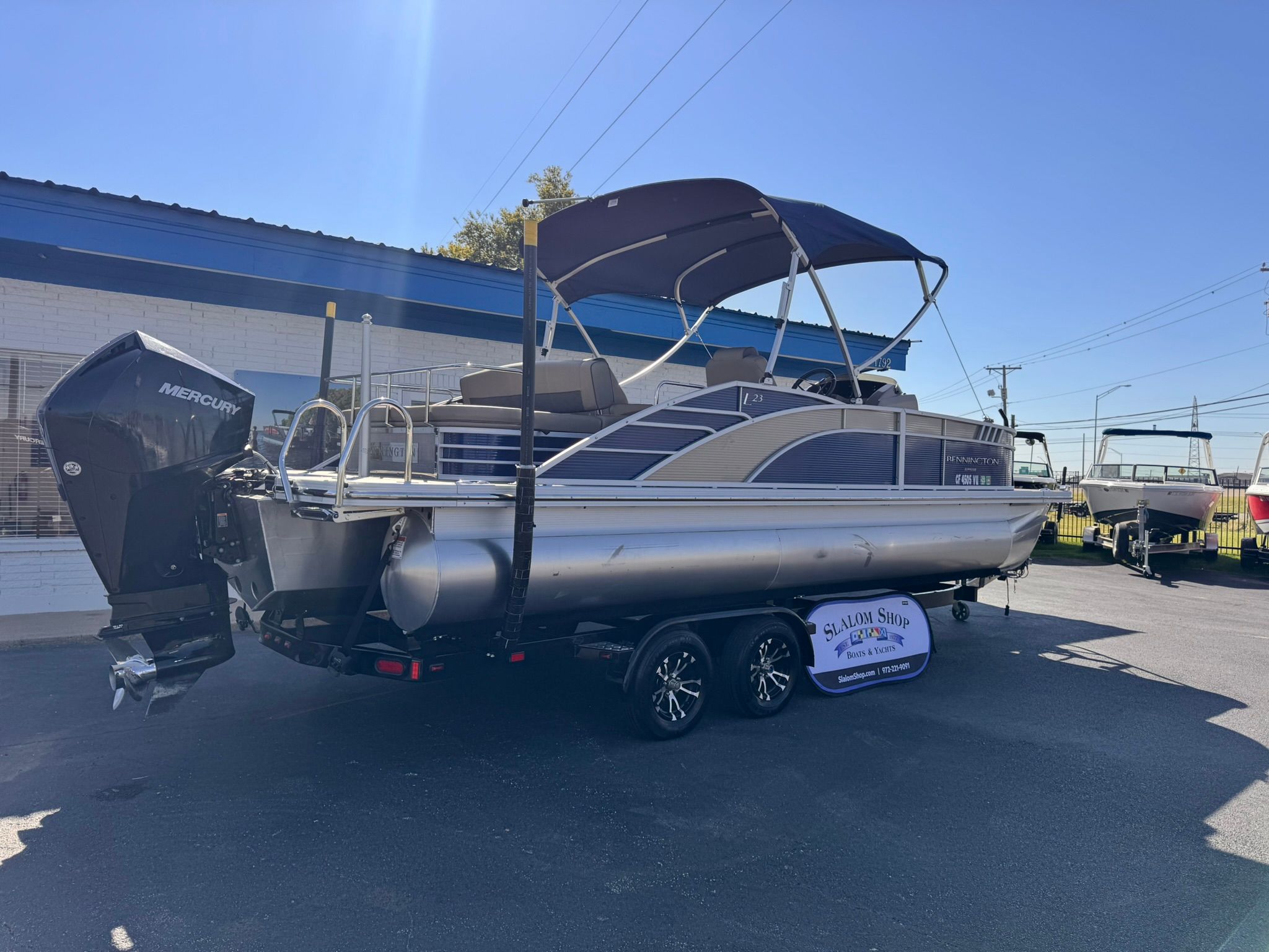 Now available on consignment at our New Used Boat Super Center in Lewisville, this 2021 Bennington 23 LTSB Tritoon offers a smooth, powerful ride with plush comfort and a premium floorplan. Powered by a Mercury 200 HP 4-Stroke Engine with only 66 hours, this tri-tube pontoon is ideal for cruising, entertaining, and towing water toys.