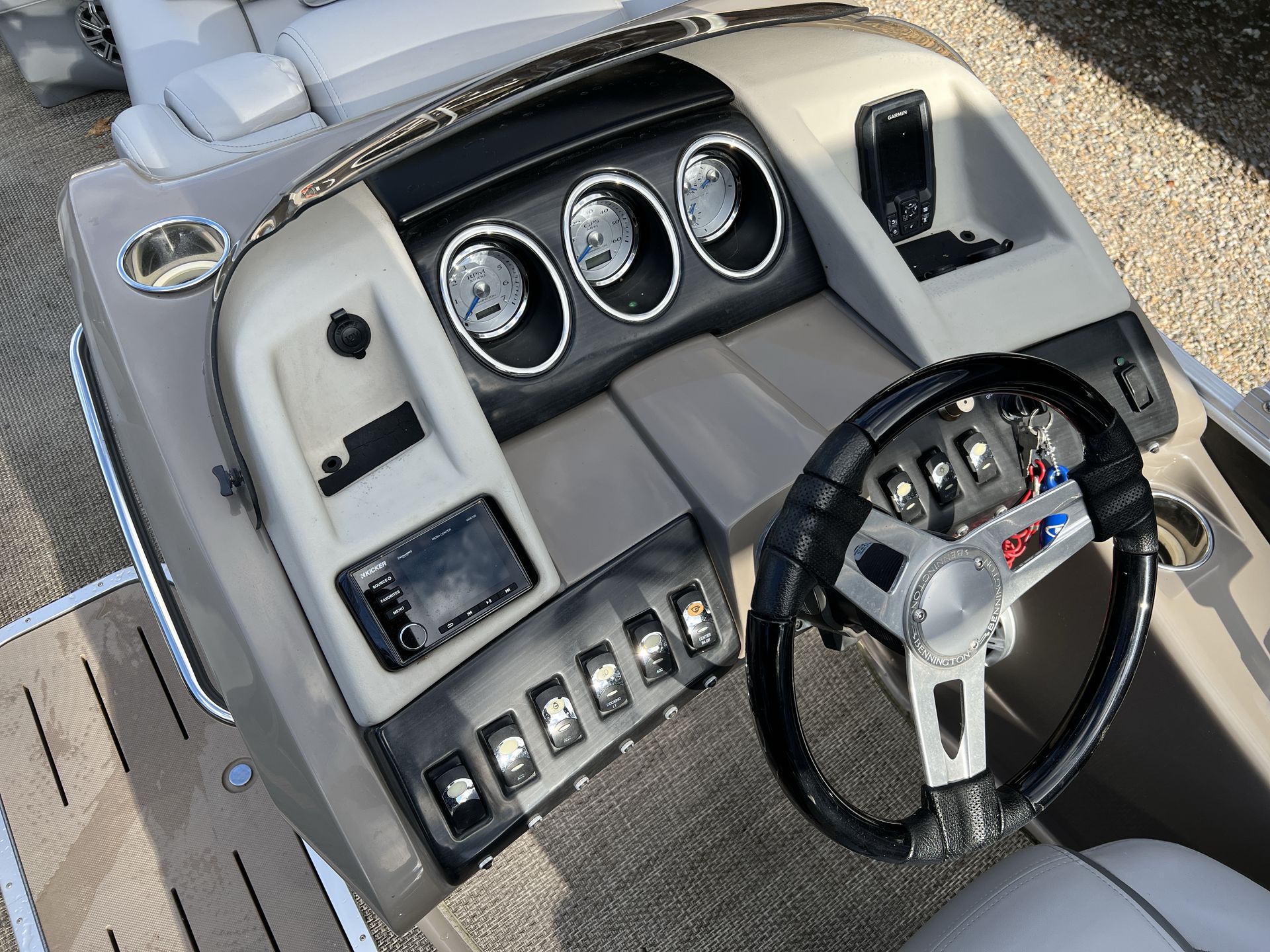 Powered by a single engine boasting 175 horsepower, the Bennington 23 RFB delivers impressive performance for a pontoon of its class. The engine’s robust power ensures smooth acceleration and responsive handling, making it easy to navigate through various water conditions. Whether you are cruising at a leisurely pace or picking up speed for watersports, the 175 HP engine provides the versatility and reliability you need. With just 80 hours on the engine, you can trust in its longevity and continued performance for seasons to come.