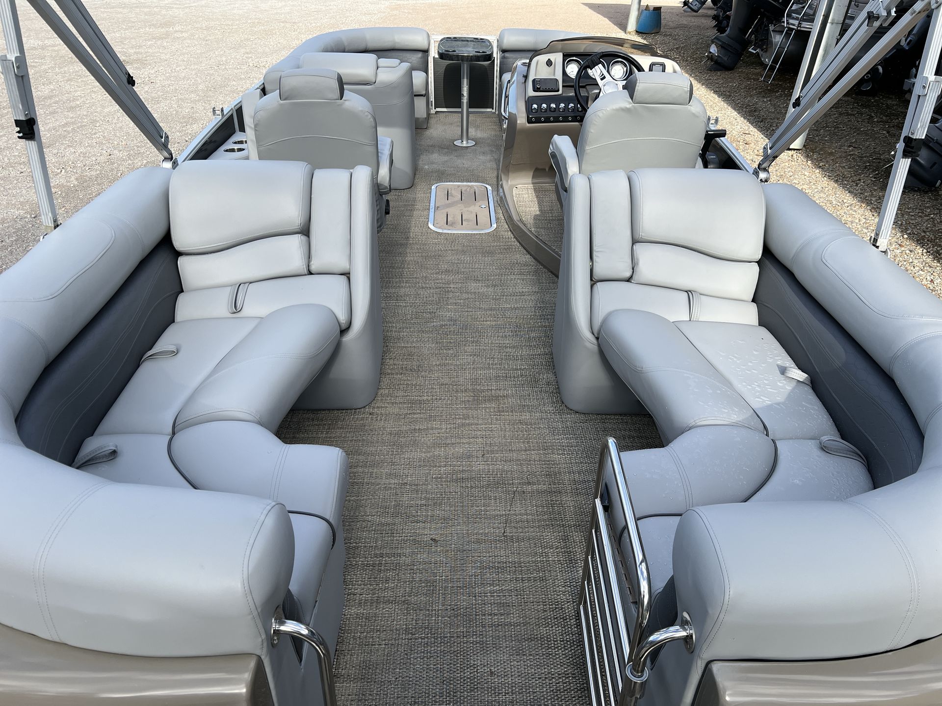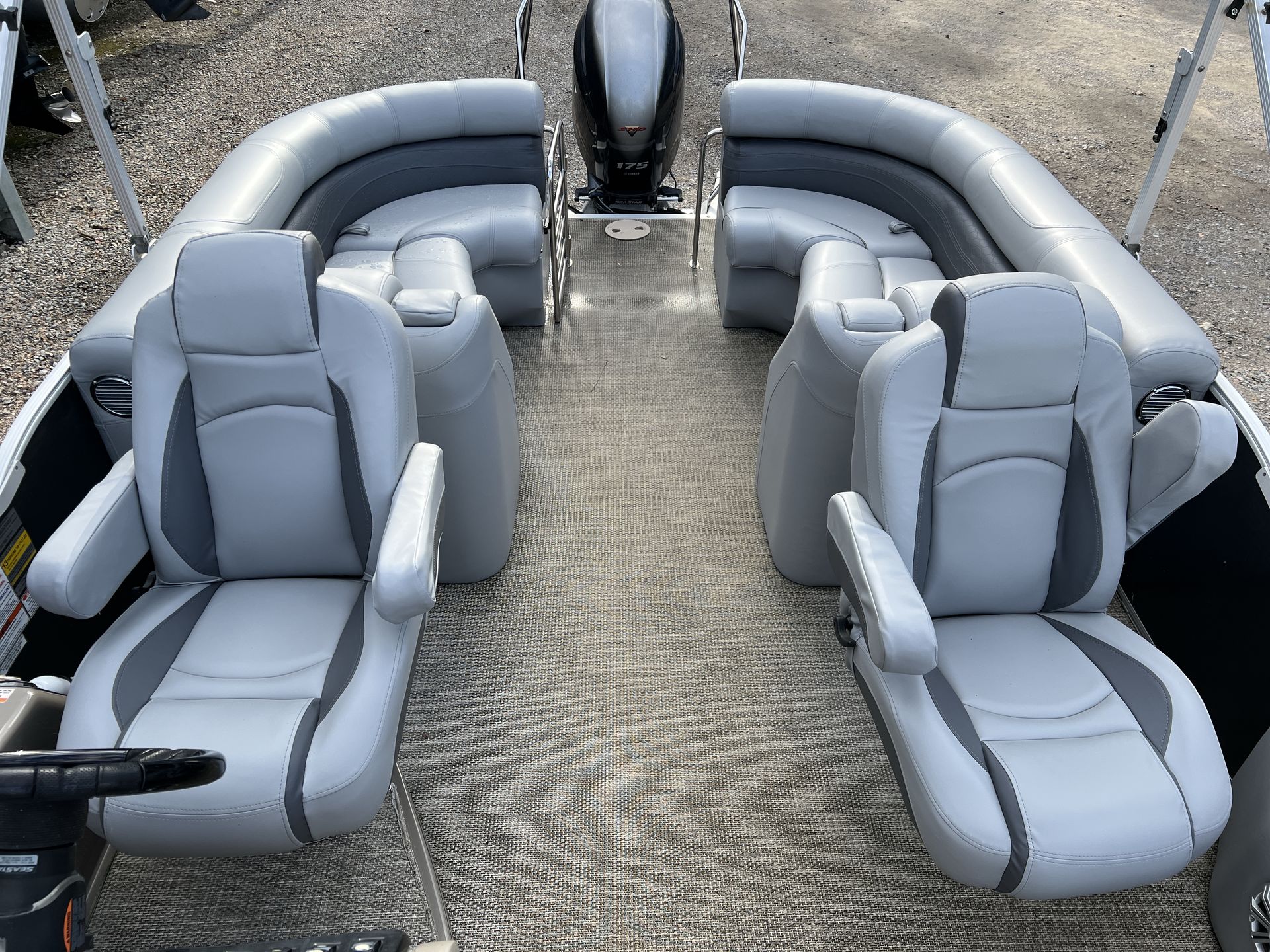 This Bennington pontoon boat for sale is as practical as it is enjoyable. The generous storage compartments allow you to bring along everything you need for a day on the water, from coolers and snacks to fishing gear and water toys. The boat’s design makes docking and launching straightforward, so you can spend less time preparing and more time enjoying your adventure.Fuel efficiency is another key benefit of the Bennington 23 RFB. The 175 HP engine is engineered for optimal performance without excessive fuel consumption, allowing you to maximize your time on the water while minimizing trips to the fuel dock. The sturdy construction and reliable engine also mean lower maintenance requirements, giving you peace of mind and more time to focus on making memories.