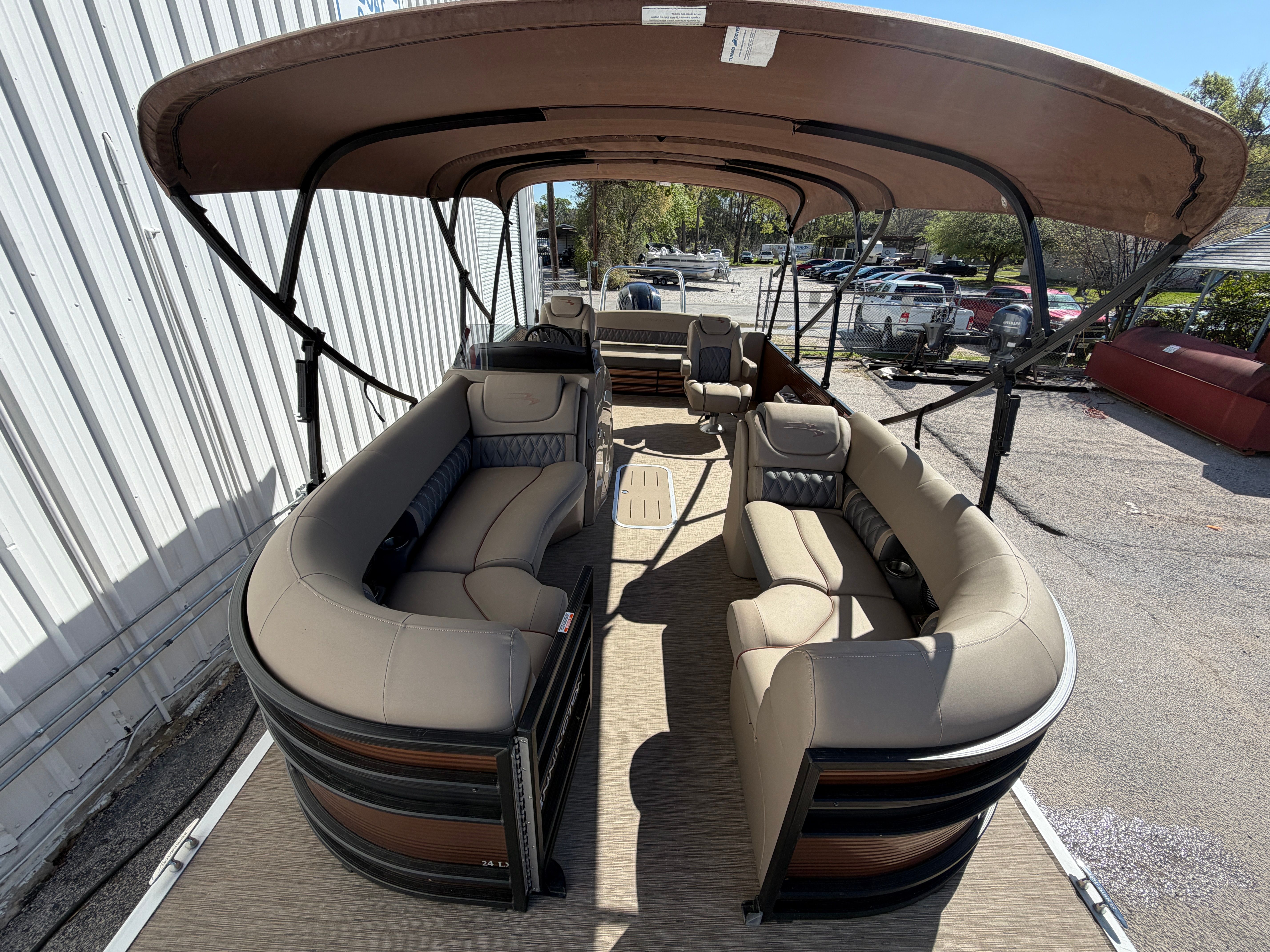 The 2023 Bennington 24 Lxsb pontoon boat is designed with both comfort and convenience in mind. Its spacious 24-foot deck offers plenty of room for entertaining, lounging, and making memories with loved ones. The open layout allows for easy movement throughout the boat, while plush seating ensures everyone can relax in style. The pontoon’s sturdy construction and high-quality materials reflect Bennington’s dedication to excellence, providing peace of mind and lasting value.This used pontoon boat for sale also features a modern helm with intuitive controls, making navigation a breeze for both seasoned boaters and newcomers alike. The thoughtful design extends to every detail, from the ample storage compartments for your gear and supplies to the stylish accents that set this Bennington boat apart from the competition.