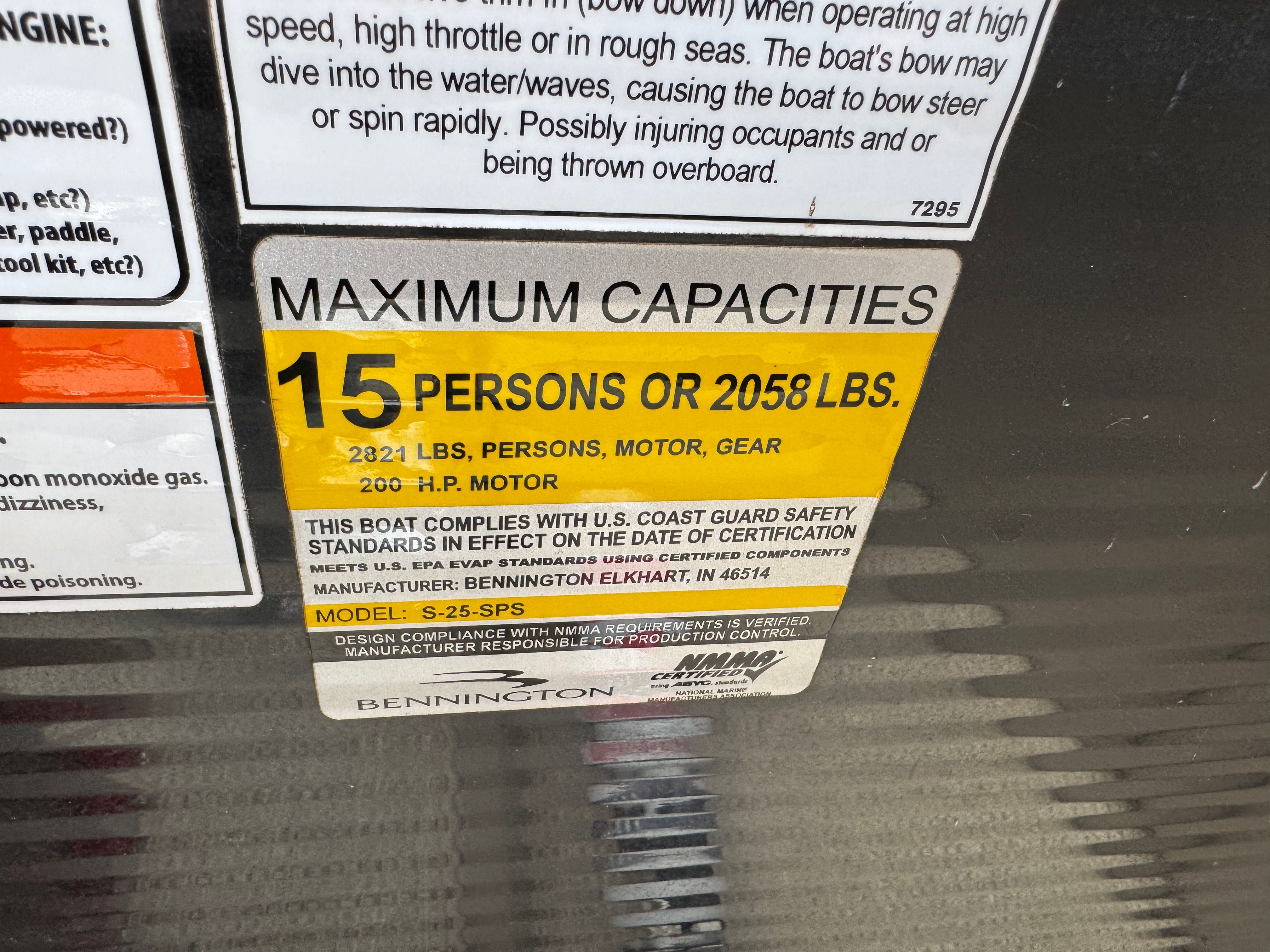 Practicality is at the heart of the Bennington 25 Ssrxp’s design. The generous storage options make it easy to stow away life jackets, water toys, and picnic supplies, keeping the deck clutter-free and organized. The pontoon’s user-friendly controls and responsive handling make docking and maneuvering a breeze, even for those new to boating.Fuel efficiency is another key advantage, allowing you to enjoy longer trips without frequent stops at the marina. The sturdy construction and reliable engine ensure low maintenance and peace of mind, so you can focus on making the most of your time on the water. Whether you are planning a quick afternoon escape or an all-day adventure, this Bennington boat for sale is equipped to handle it all.